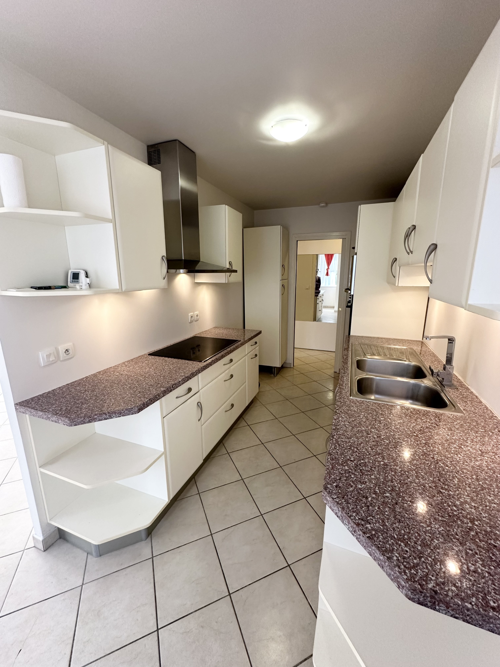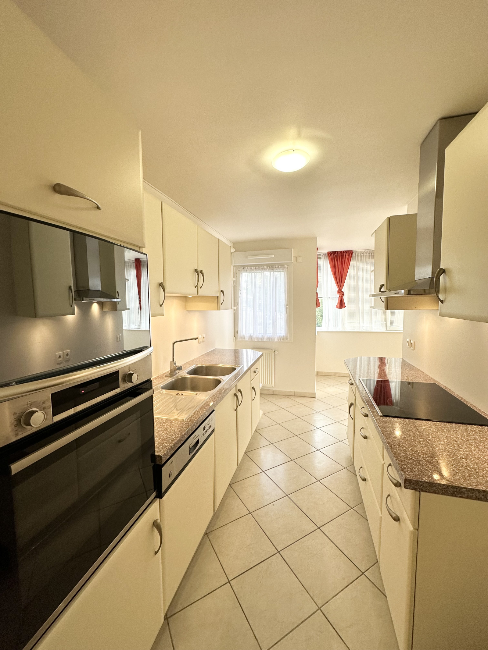 A LOUER, FERNEY-VOLTAIRE 01210, dans une résidence de standing clôturée et sécurisée, bel appartement type T4 traversant de 93m² habitables situé au 1er étage avec ascenseur. Il est composé : d’une entrée avec un rangement, une cuisine entièrement équipée ouverte sur le grand espace de vie donnant accès à la terrasse de 23m², un dégagement, 3 chambres dont une suite parentale avec une salle d’eau attenante avec baignoire et douche ainsi ainsi qu’un wc séparé, une salle de douche avec un wc. En annexe : un garage fermé en sous sol, une cave et une place de stationnement extérieure privative. Disponible immédiatement ! Le centre ville, le bus pour Genève, les écoles et commerces sont très proches. Prix : 2650 € charges comprises. A visiter rapidement !