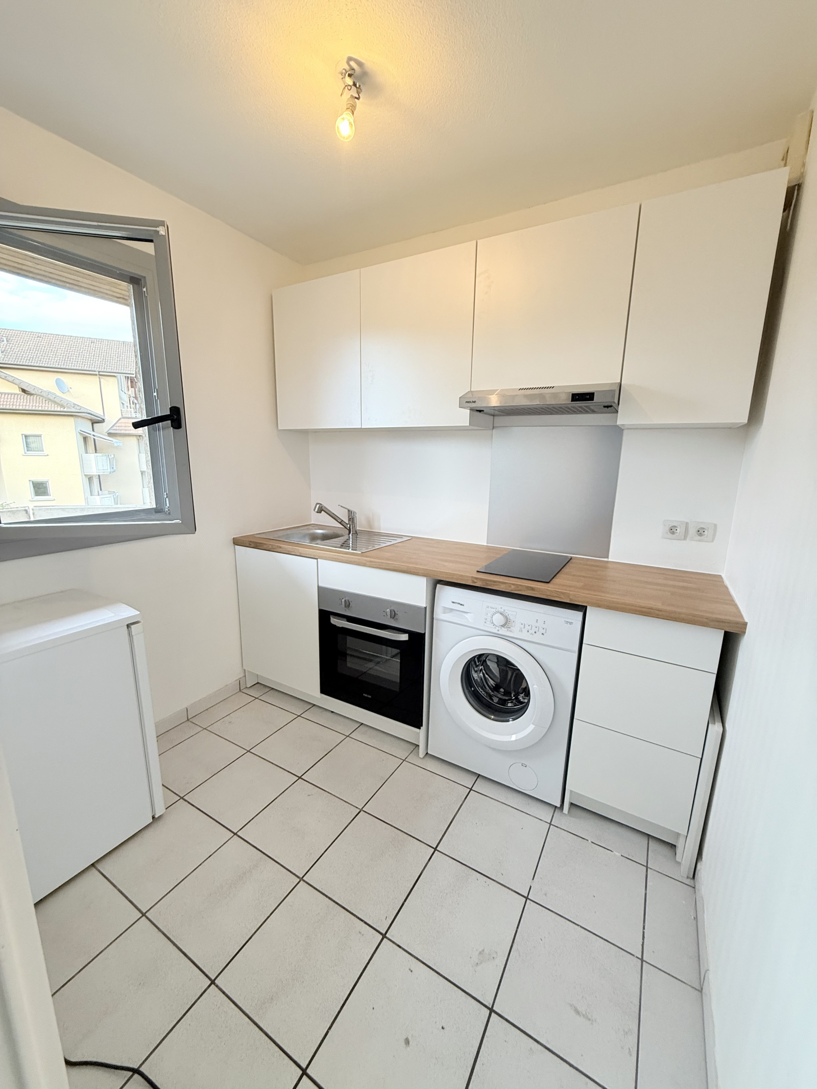 A LOUER 01210 - Ferney-Voltaire proche lycée, Votre agence Matesa Immobilier vous propose de découvrir ce studio lumineux récemment rénové situé à proximité des arrêts de bus, il bénéficie d’un emplacement à la fois pratique et calme. Il se compose d’une grande entrée avec placard, d’une pièce à vivre avec placard et balcon, d’une cuisine équipée refait à neuf, ainsi que d’une salle de bain avec WC. En annexe, vous trouverez une place de stationnement privative en sous-sol. Ce logement dispose d’un bon diagnostic énergétique avec un classement en D. Disponible de suite. À visiter sans tarder !