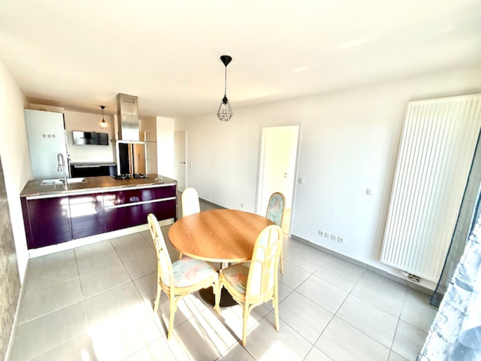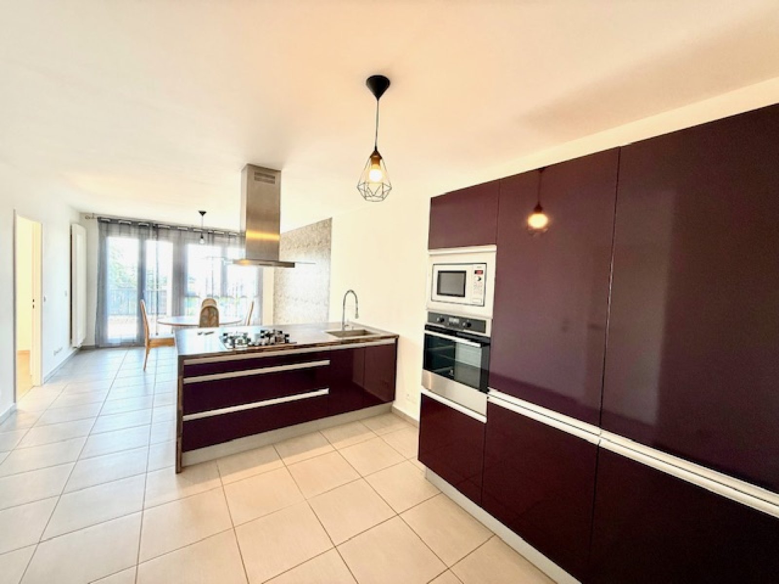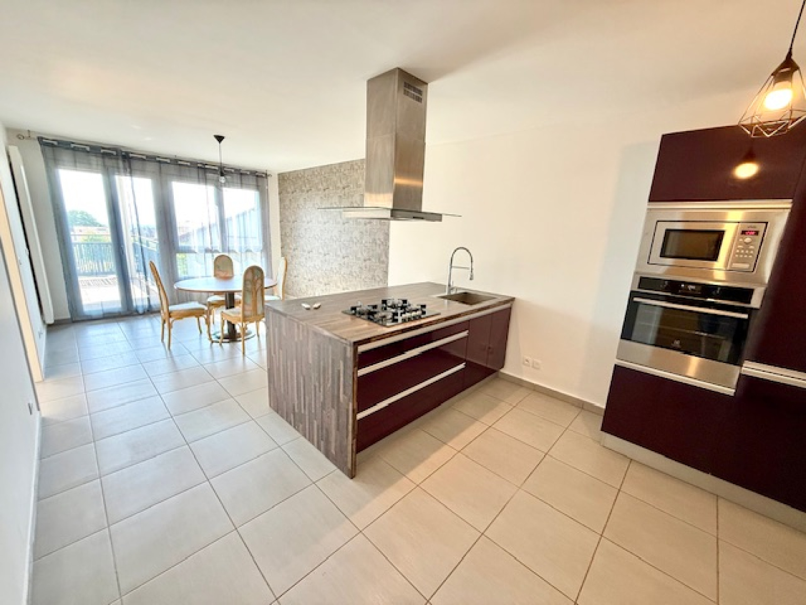 ECHENEVEX 01170, au cœur du ville, dans résidence récente, au DERNIER ETAGE avec joli balcon face au Mont Blanc, très agréable appartement type T3 (2 chambres) traversant de 62m² comprenant : un hall d’entrée avec un placard, une cuisine entièrement équipée ouverte, salon séjour salle à manger avec accès balcon exposé au sud, deux chambres dont une avec un placard, un wc séparé avec un lave-main, une salle de bain avec meuble vasque et baignoire balnéo. En annexe : une place de parking privative extérieure, un garage fermé en sous-sol. Appartement en parfait état, au calme, disponible immédiatement.