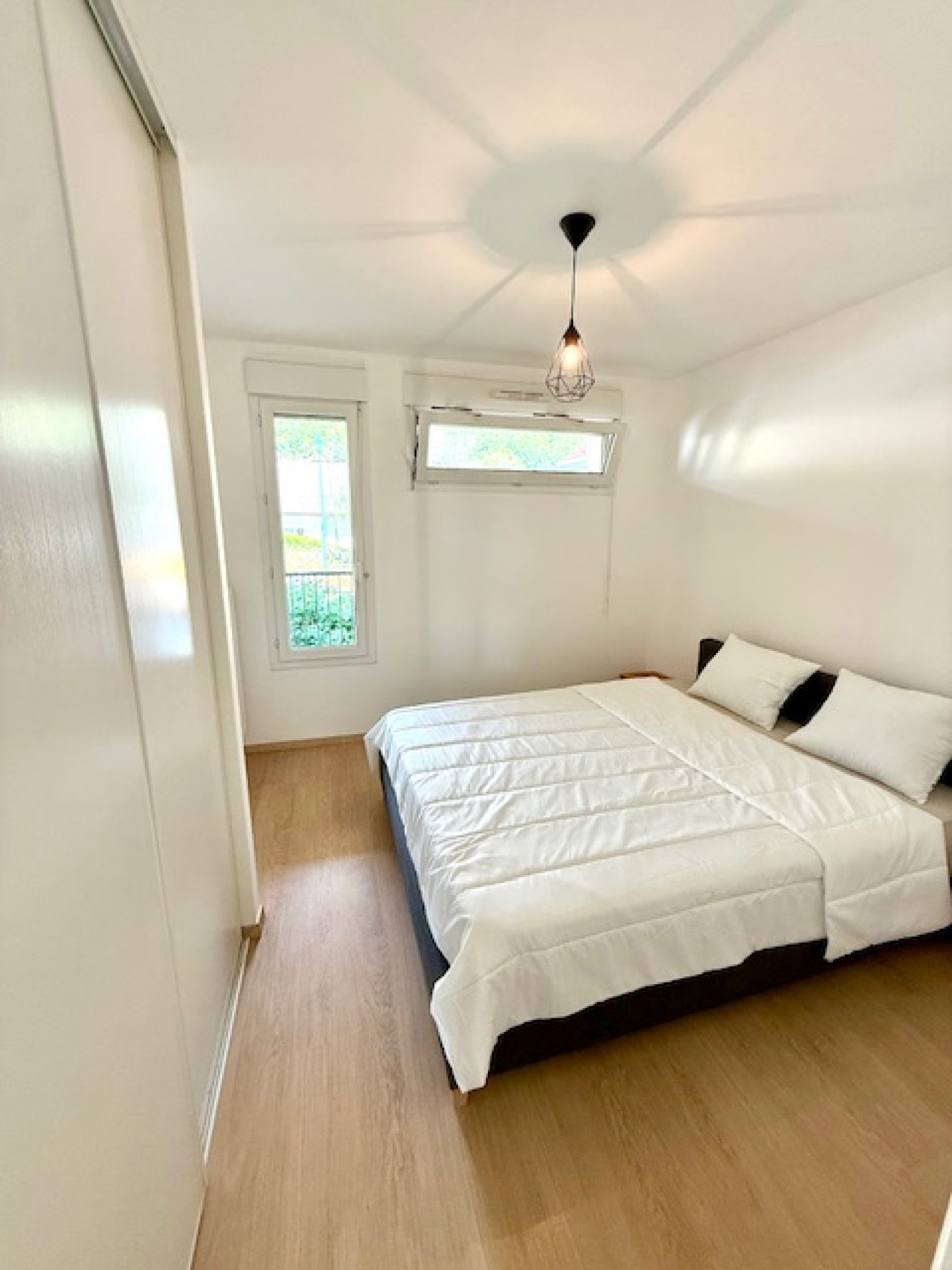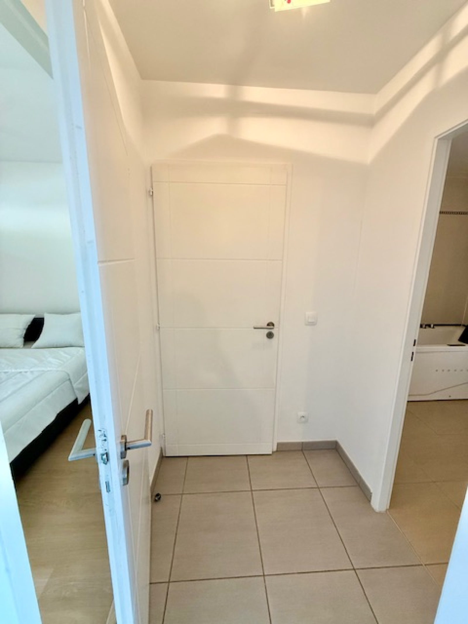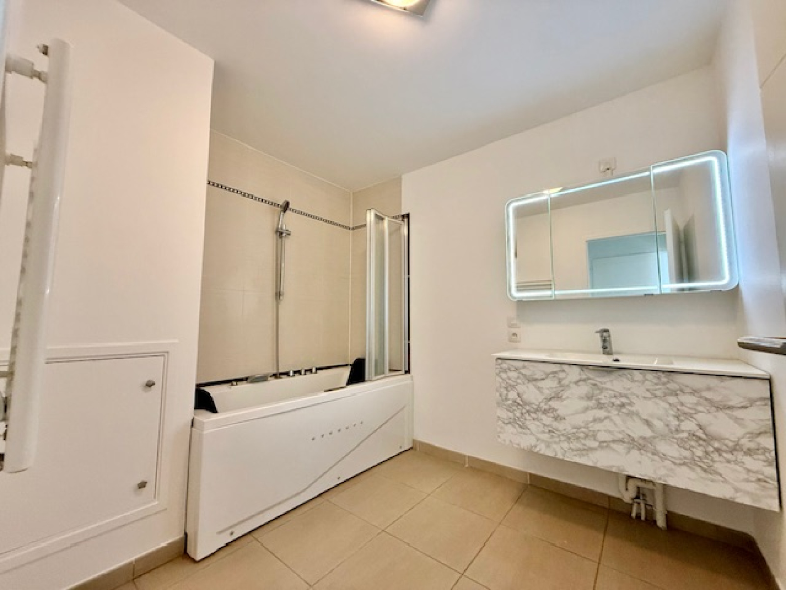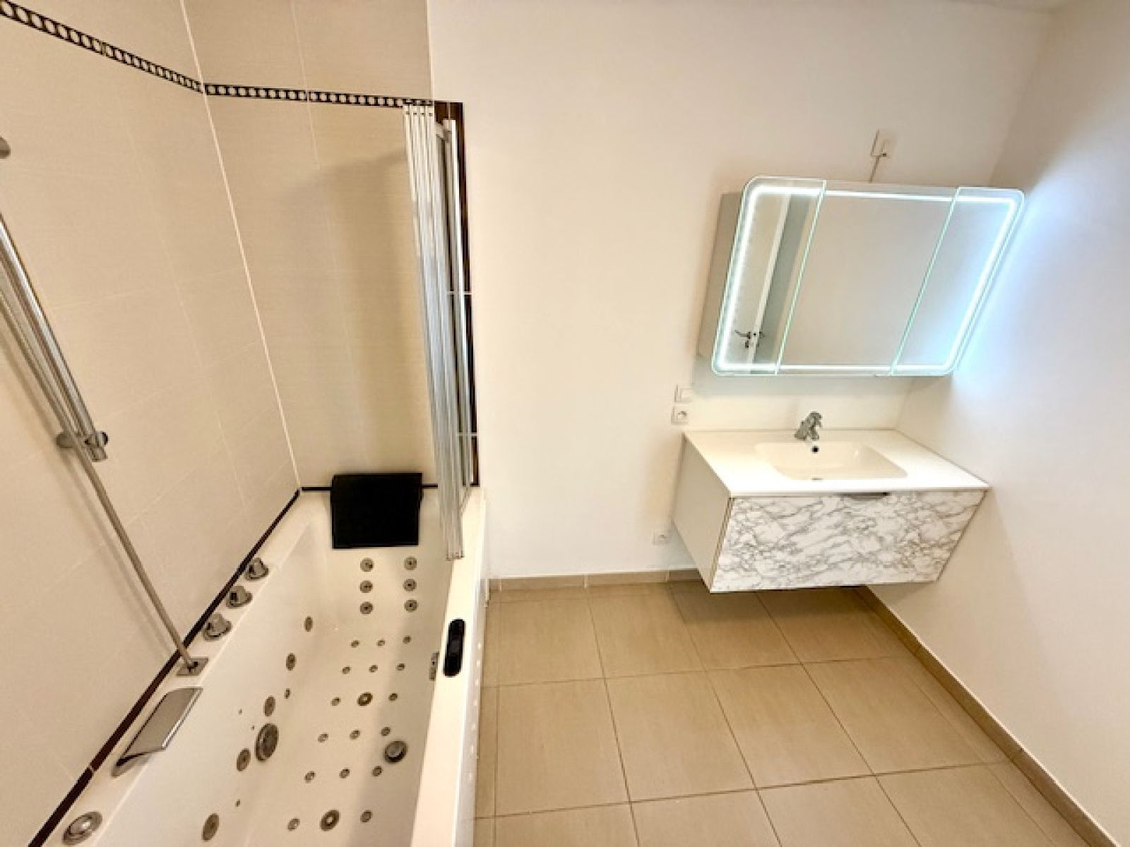 ECHENEVEX 01170, au cœur du ville, dans résidence récente, au DERNIER ETAGE avec joli balcon face au Mont Blanc, très agréable appartement type T3 (2 chambres) traversant de 62m² comprenant : un hall d’entrée avec un placard, une cuisine entièrement équipée ouverte, salon séjour salle à manger avec accès balcon exposé au sud, deux chambres dont une avec un placard, un wc séparé avec un lave-main, une salle de bain avec meuble vasque et baignoire balnéo. En annexe : une place de parking privative extérieure, un garage fermé en sous-sol. Appartement en parfait état, au calme, disponible immédiatement.