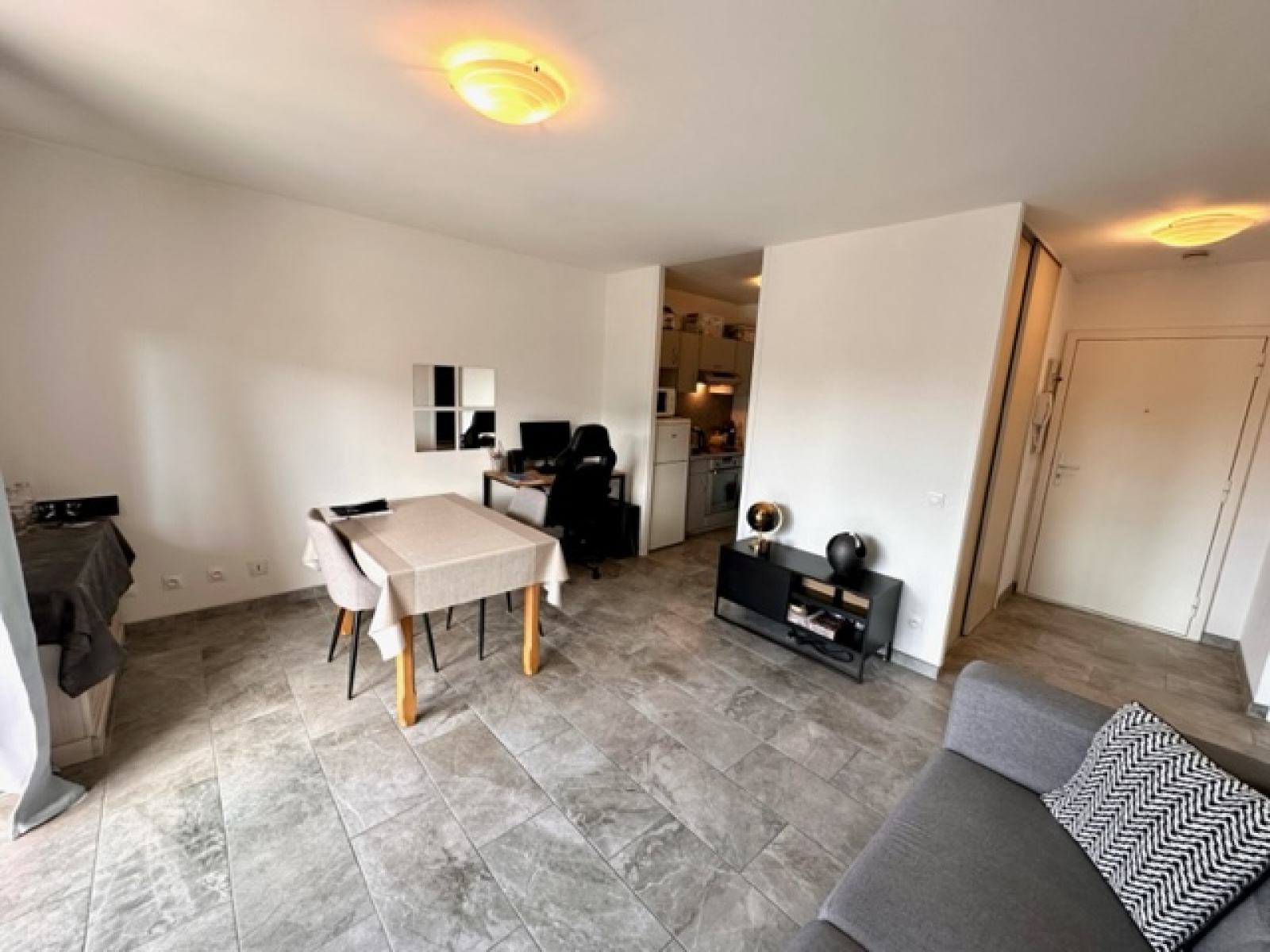 Il est composé : d’une entrée avec placard, d’une cuisine équipée ouverte sur le salon séjour donnant accès au balcon exposé sud-ouest avec de jolies vues, un dégagement, une chambre, une salle de douche avec wc. En annexe : une cave. La résidence est très bien entretenue et clôturée avec un portail et dispose de nombreuses places de parking. Très proche du tramway et de toutes les commodités.