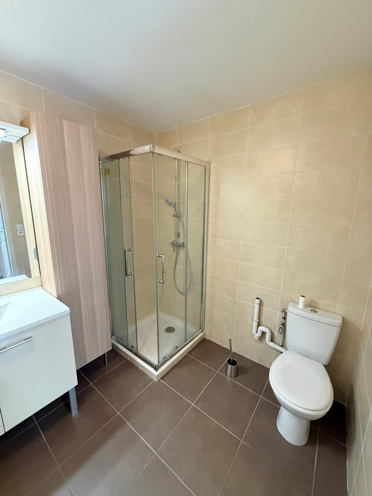 L’appartement se compose d’une entrée, d’une cuisine ouverte sur le salon séjour, donnant accès à la terrasse et au jardin privatif, d’une chambre avec placard ainsi que d’une salle de douche avec WC.