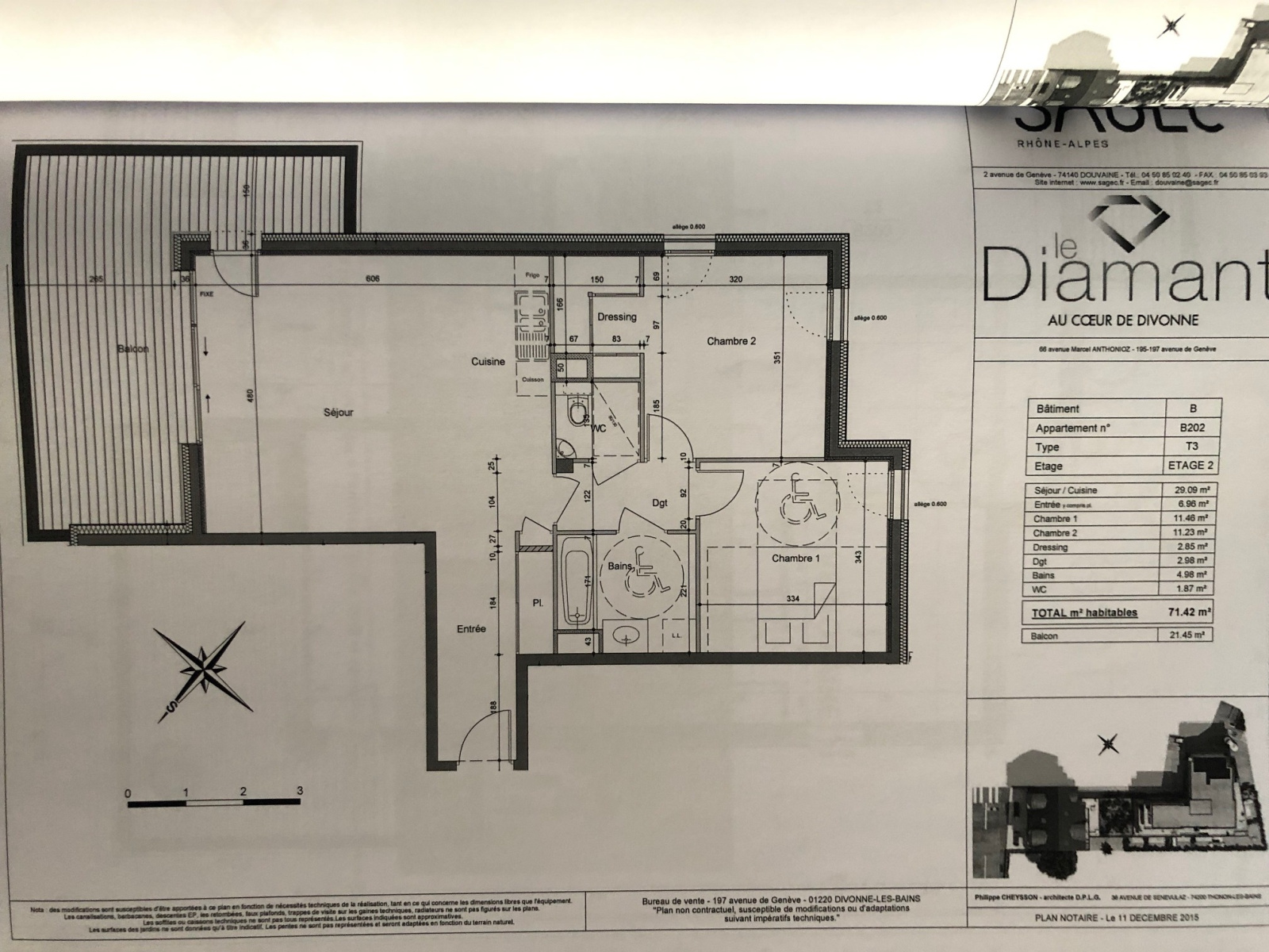 Dans la commune de Divonne-Les-Bains 01220, construction en 2018, dans une résidence de standing en hyper centre-ville, à pied de toutes les commodités. Très bel appartement type T3 traversant de 72m² avec une terrasse d'angle privative de 22m² exposée sud-ouest. L'appartement est lumineux et dispose d'une cuisine entièrement équipée ouverte sur la pièce de vie, deux belles chambres dont une avec un dressing équipé, une salle de douche, un WC avec emplacement machine à laver. Au sous-sol : une cave et un garage box fermé. Le loyer de 1950 € inclut le chauffage et l'eau froide et eau chaude. A visiter rapidement !