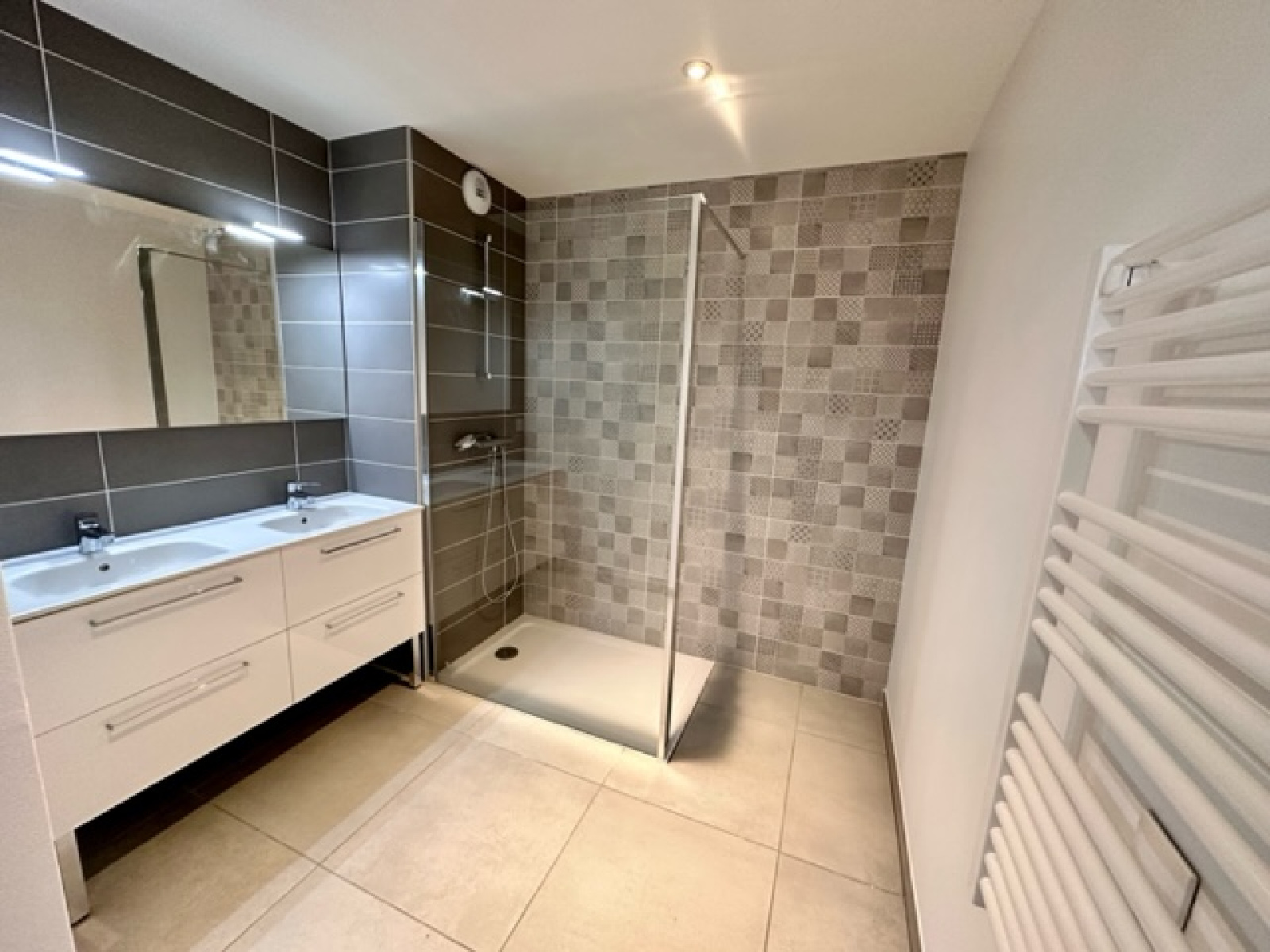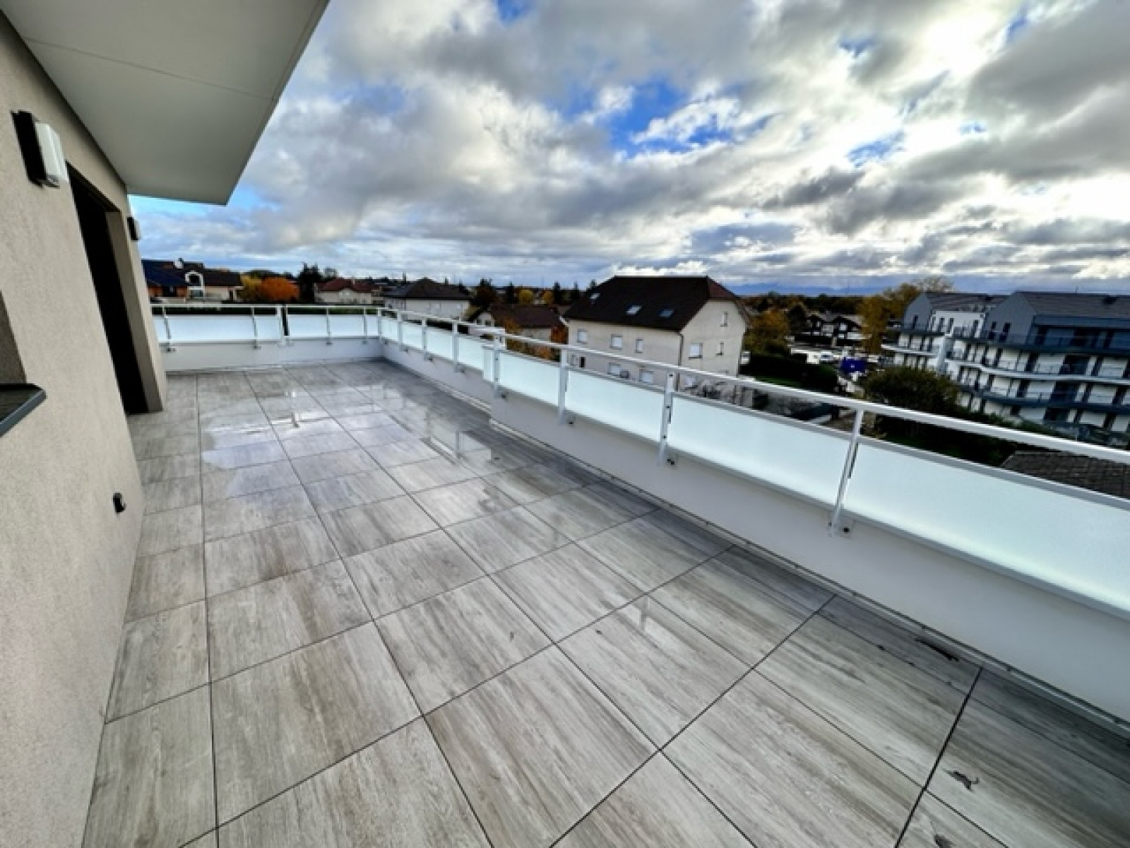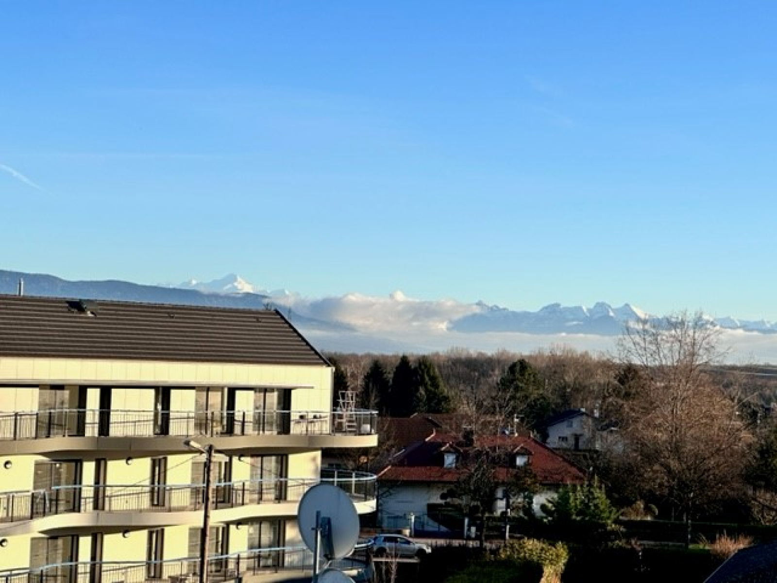 Exclusivité agence MATESA IMMOBILIER, rare à Divonne les Bains 01220, dans une résidence de standing très récente et à deux pas du centre, magnifique appartement type T4 traversant de 99m² situé au DERNIER ETAGE avec une très belle terrasse de 50m² exposée plein sud avec une vue dégagée sur les Alpes, Mont Blanc et Jura, et composé comme suit : une entrée avec penderies, une lumineuse pièce de vie salon séjour salle à manger avec une cuisine entièrement équipée de qualité ouverte – l’ensemble donnant accès à la terrasse, un espace buanderie, un dégagement avec penderies et desservant 3 chambres avec penderies aménagées dont une suite parentale avec sa salle de douche privative avec wc, une autre salle de de bain, un deuxième WC séparé. Très belles prestations générales. En annexe au sous-sol : une cave et deux garages en sous-sol avec portes électriques. Chauffage au sol individuel au gaz. Les commodités du centre-ville avec commerces, les écoles et le bus se trouvent à 4 min à pied. A VISITER RAPIDEMENT !