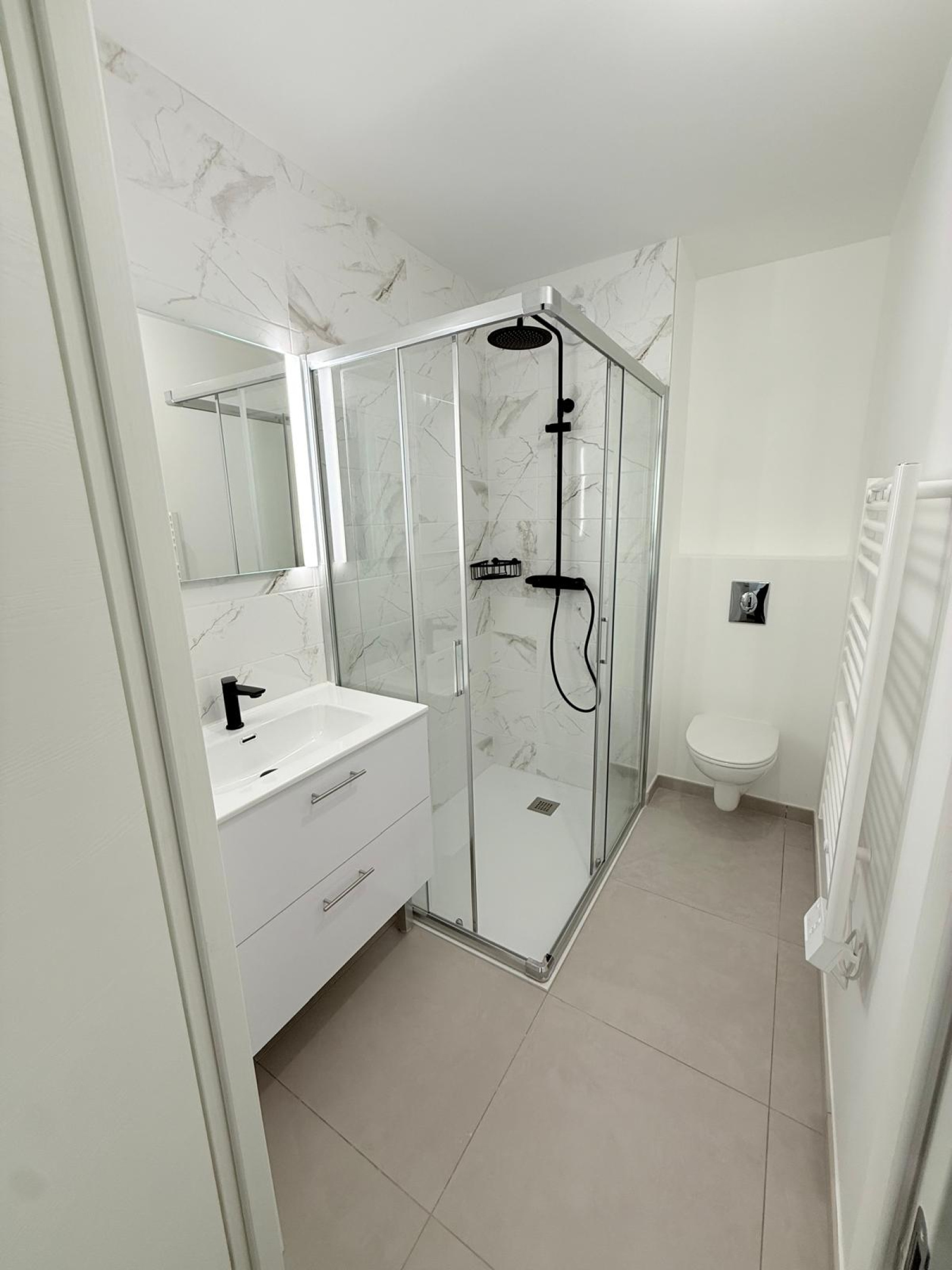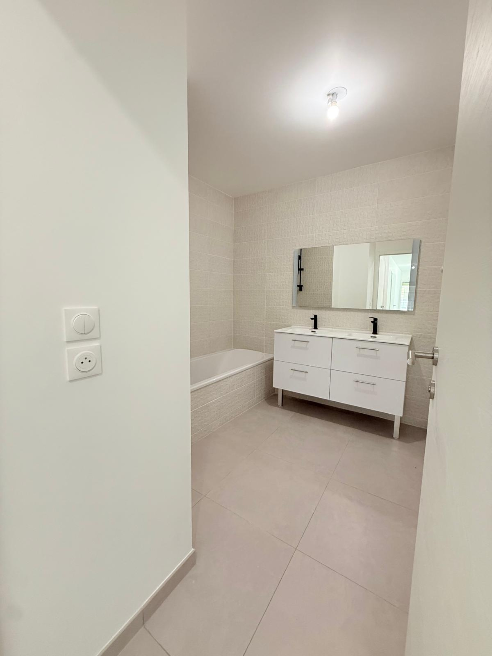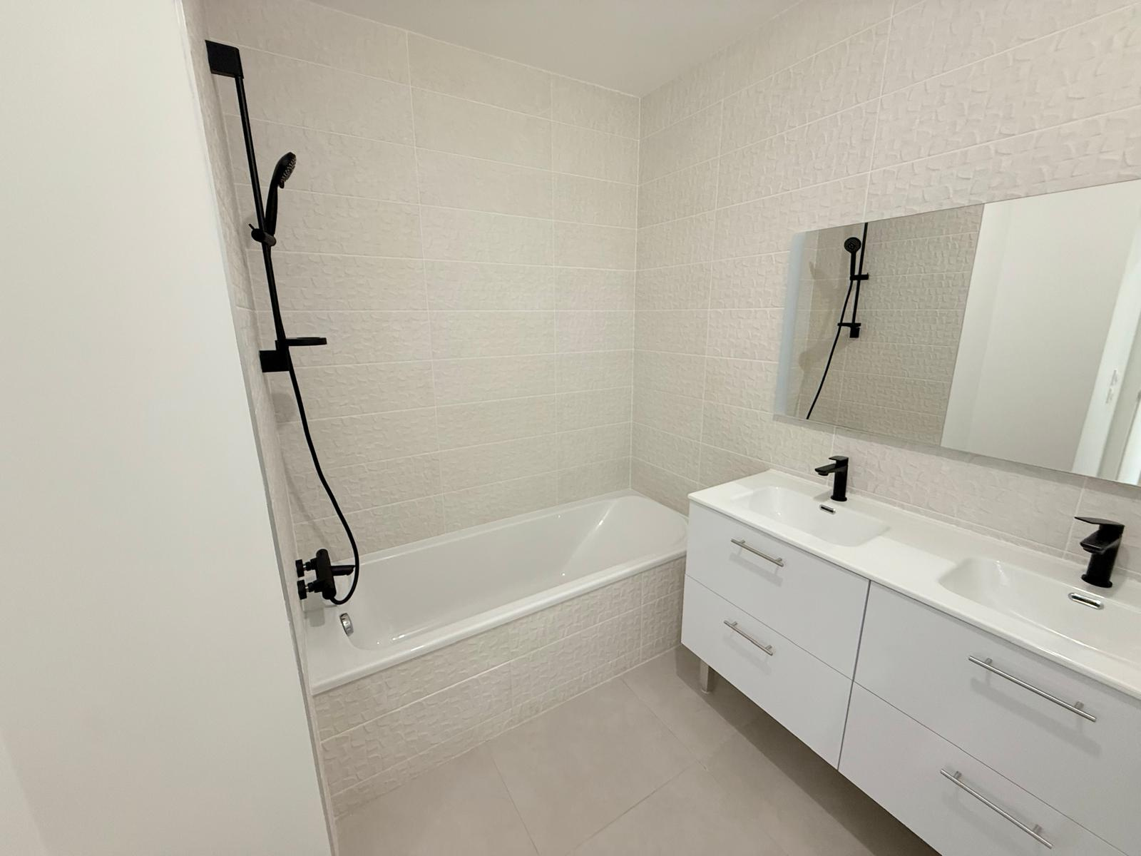 Une suite parentale avec salle de douche et WC, deux autres chambres dont une avec placard intégré, un WC séparé et une salle de bains avec double vasque et sèche-serviettes, une buanderie.