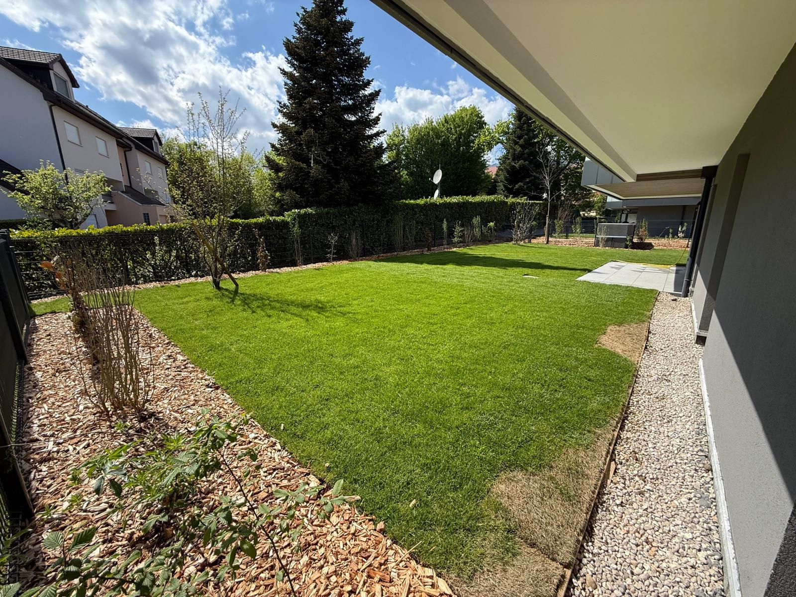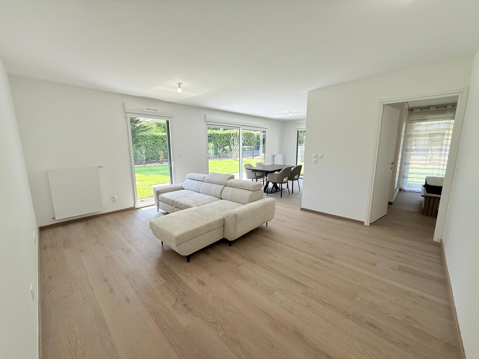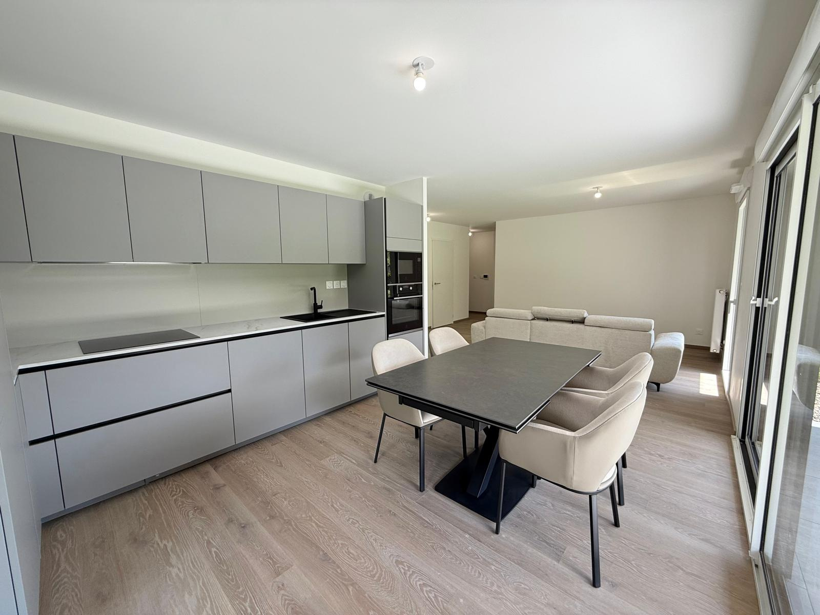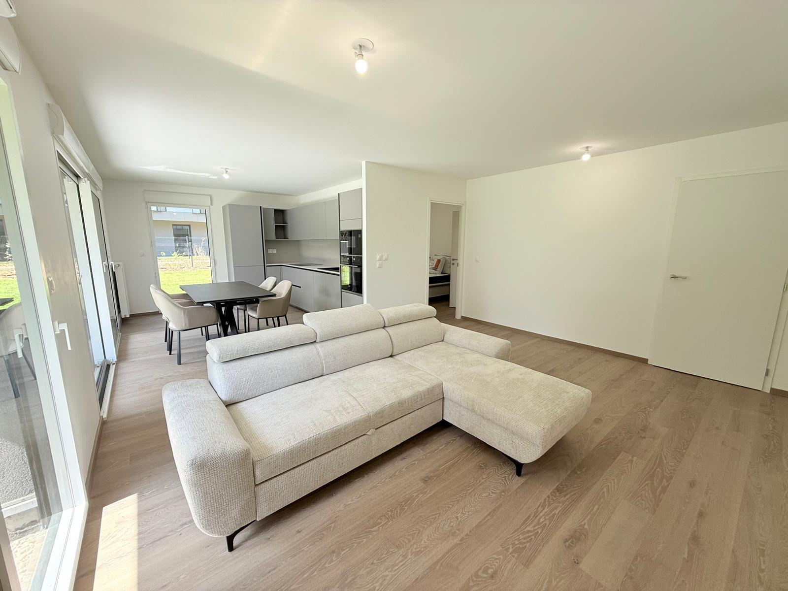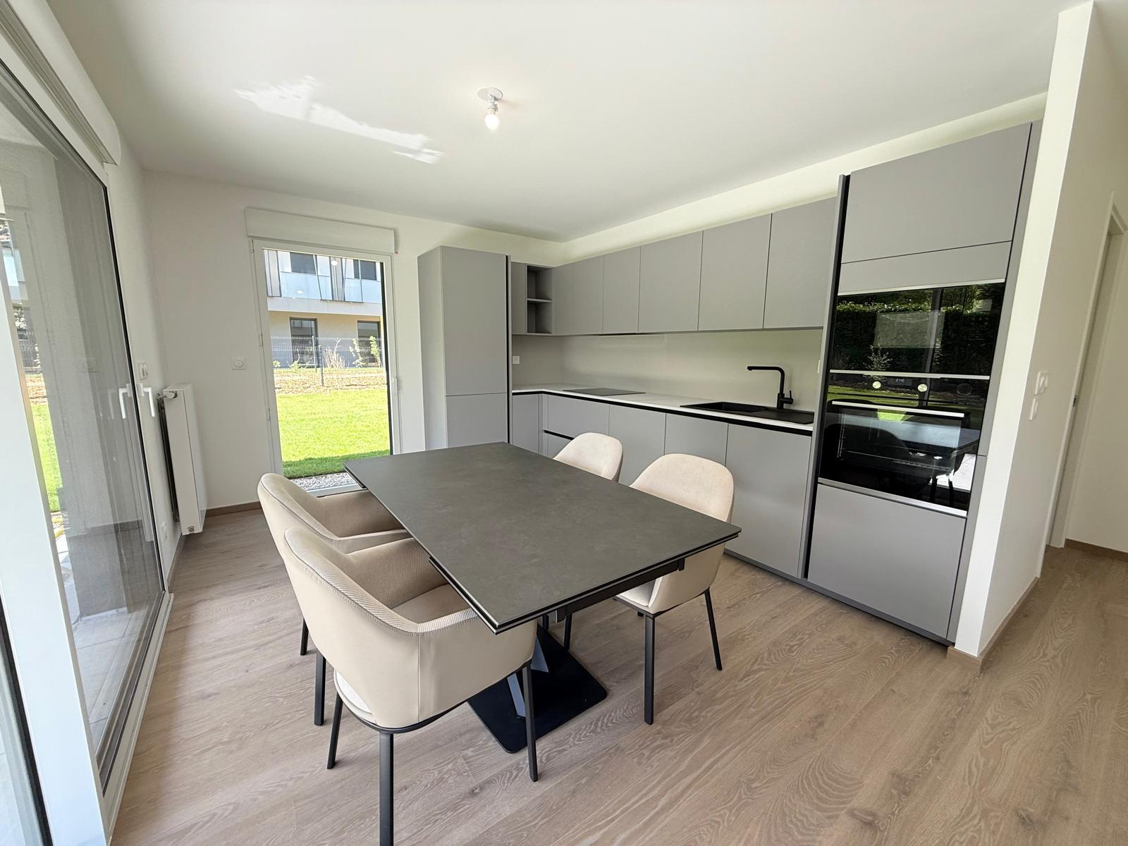 01220 Divonne-les-Bains, Votre agence Matesa Immobilier vous propose de découvrir cet magnifique appartement de type T4 neuf et meublé de 87 m ² habitables – très lumineux et bénéficiant d’un grand jardin privatif exposé sud-ouest, avec deux garages box fermé et une cave en sous sol.