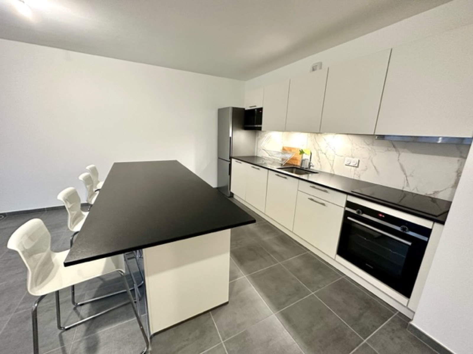 EXCLUSIVITE, magnifique T3 (2 chambres) d’environ 72m² neuf et entièrement meublé de grande qualité, situé au 3ième étage avec ascenseur dans une résidence de standing livrée en 2022 avec toutes les commodités au pied de l’immeuble. Il est composé : d’une entrée avec un placard, d’une cuisine entièrement équipée ouverte avec un ilot central servant d’une table de repas et ouverte sur l’espace salon-séjour donnant accès au balcon exposé à l’ouest avec vue Jura, un dégagement avec un wc suspendu séparé, une salle de bain complète avec baignoire et meuble vasque + machine à laver et sèche-linge, deux belles chambres avec penderies aménagées.