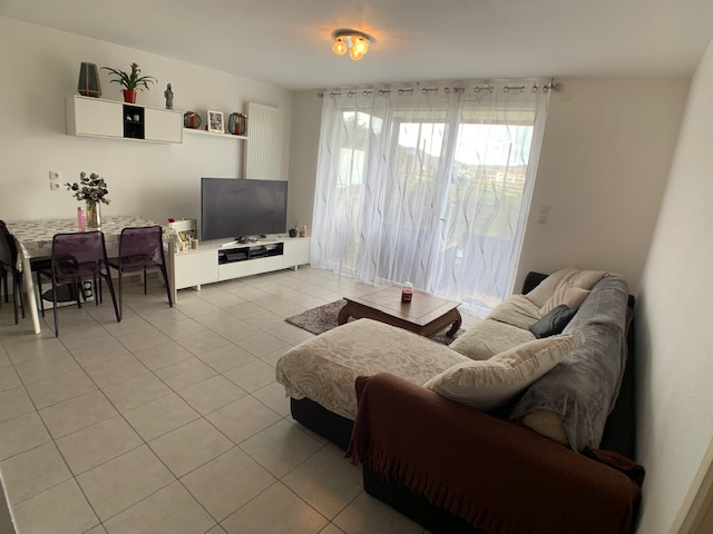 CESSY - CENTRE VILLE, Appartement type T2 en rez de jardin, dans copropriété récente de 2014 et comprenant : entrée avec placard, belle pièce à vivre avec cuisine équipée ouverte sur salon séjour avec accès terrasse et jardin privatif, une chambre avec salle de bain privative, un wc sépare. En annexe au sous sol : une cave et un garage double en sous sol.Très bien bon état général. Libre immédiatement. BUS F pour genève et toutes commodités à 2 min à pied, parking libre en supplément. MATESA IMMO, agence immobilière Pays de Gex, Vente achat appartement T2 / 2 pièces pays de gex - cessy 01170