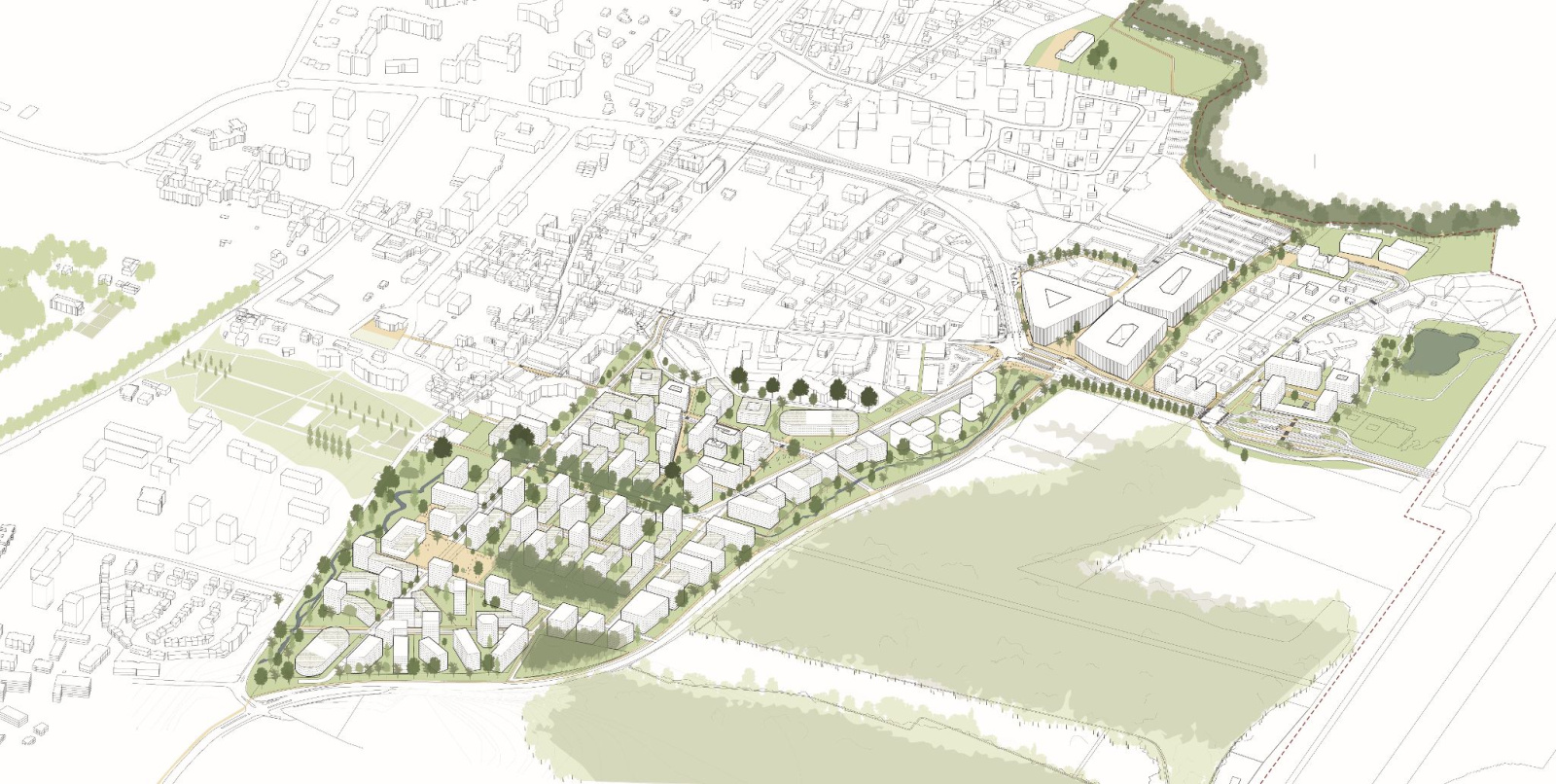 Notre nouvelle résidence est située au sein de la future ZAC FERNEY-GENEVE INNOVATION : entre les coteaux du Jura et face à la chaîne des Alpes avec le Mont Blanc en arrière-plan