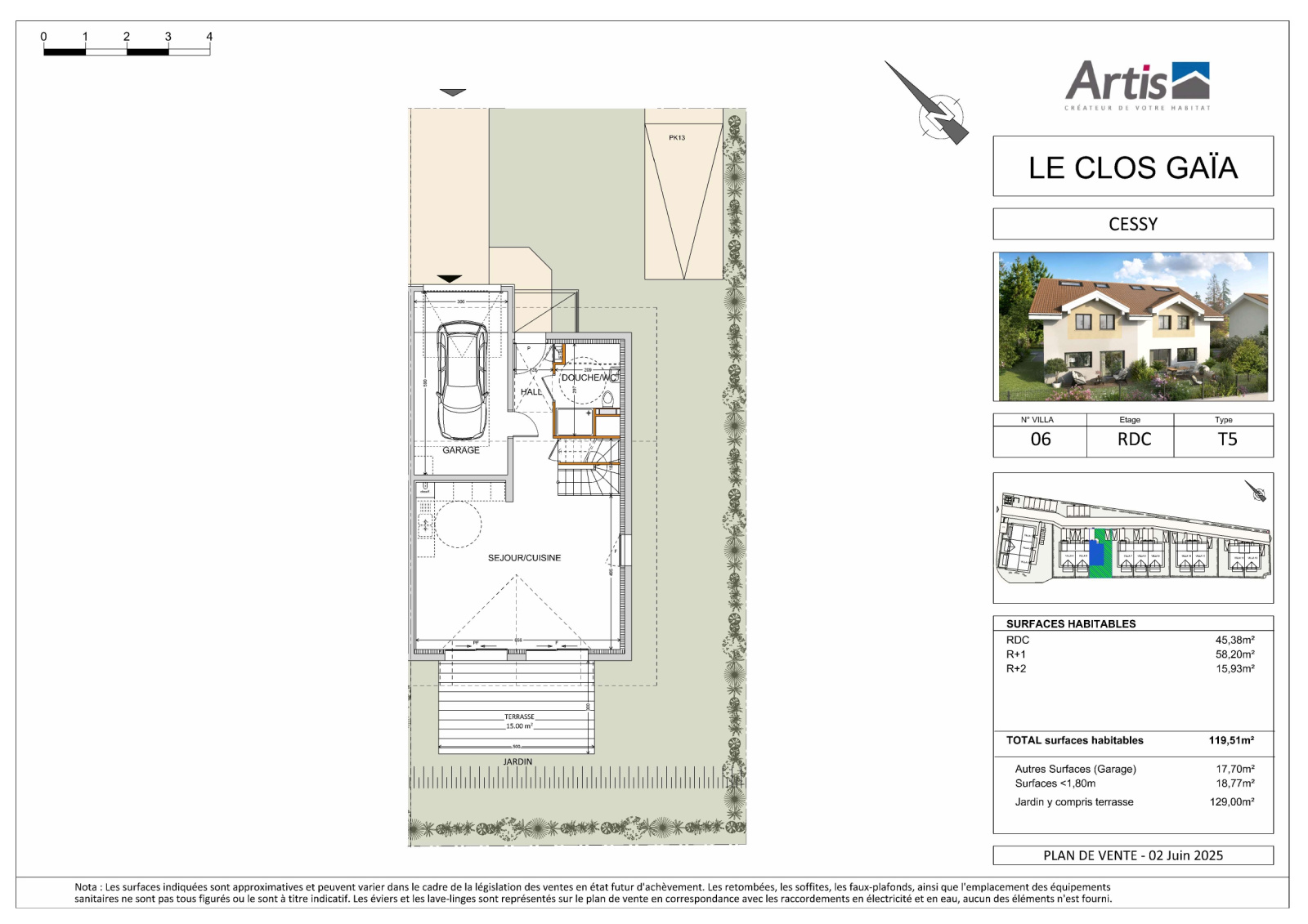 CESSY 01170, UNE MAISON AVEC JARDIN À CESSY DE 119 m² HABITABLE (+ 18 m² inférieur à 1,80m) Situées sur la jolie commune de Cessy, les villas bénéficient d'un emplacement idéal, à quelques pas du centre, des commodités et des écoles. L'environnement résidentiel, ainsi que la proximité des transports en commun de ce programme à taille humaine vous séduiront. Le projet a été pensé dans le respect de l'environnement, avec des revêtements extérieurs perméables et des espaces verts soignés. Idéalement exposé, le lotissement vous garantit un ensoleillement maximal. Chaque maison bénéficie d'un jardin végétalisé. Les volumes intérieurs ont été optimisés afin de garantir un quotidien confortable pour toute la famille. Chaque maison dispose de 4 chambres., 3 salles d'eau, 3 wc, Un garage et une place de parking viennent compléter l'ensemble. Livraison prévue au 1er semestre 2027. Les frais de notaire sont réduits !