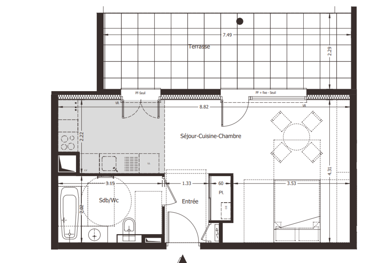 SEGNY 01170 - Agréable studio de 36m2 en rez-de-jardin avec terrasse. Le studio est composé d'une entrée avec placard, une cuisine entièrement équipée ouverte sur la pièce de vie avec accès à la terrasse et au jardin privatif de plus de 36m2, et une salle de bain avec wc.