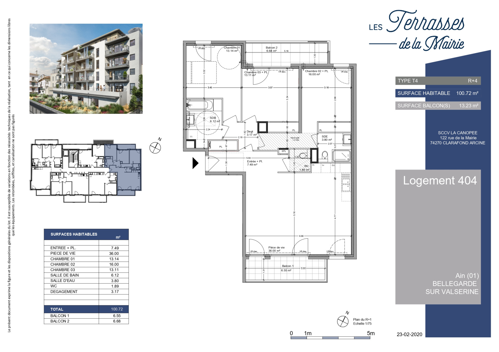 Sur la commune de Bellegarde sur Valserine - Valserhone (01200), idéalement situé au cœur de la ville et toutes les commodités au pied de l'immeuble, appartement type T4 traversant d'environ 101m2 au 4ieme étage avec ascenseur et avec 2 balcons. Il est composé comme suit : une entrée, une cuisine ouverte sur le salon séjour salle à manger, le tout donnant accès à un balcon, trois chambres dont une suite avec dressing et salle de douche avec wc privatif, deux autres chambres, une autre salle de bain tout équipée et un autre wc séparé. Les 3 chambres donnent sur un autre balcon. Le chauffage est au gaz de ville au sol. En annexe : possibilité d'un garage en sous-sol.