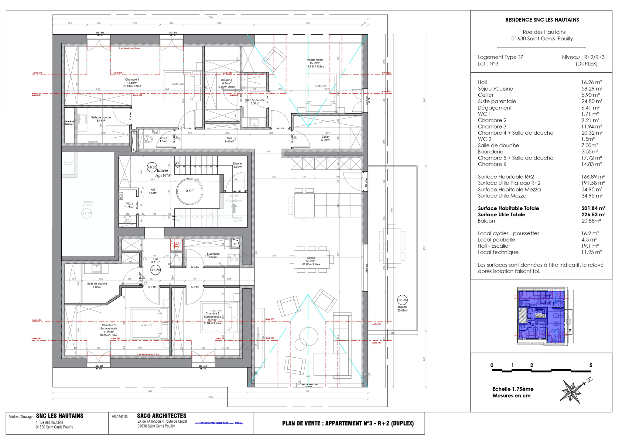 CENTRE VILLE DE SAINT GENIS POUILLY 01630 – UNIQUE ! magnifique appartement type T7 DUPLEX AU DERNIER ETAGE traversant de 226m² habitables + une terrasse privative de 21m² occupant tout le 1et étage de la résidence et comprenant : une grande et belle entrée avec penderies aménagées, une buanderie, un cellier, 6 chambres avec placards ou dressing,, 4 salle d'eau, 3 wc suspendu avec lave-main, une magnifique pièce de vie avec une cuisine ouverte sur le salon-séjour-salle à manger de plus de 62m² avec grandes ouvertures et donnant accès terrasse de 21m².