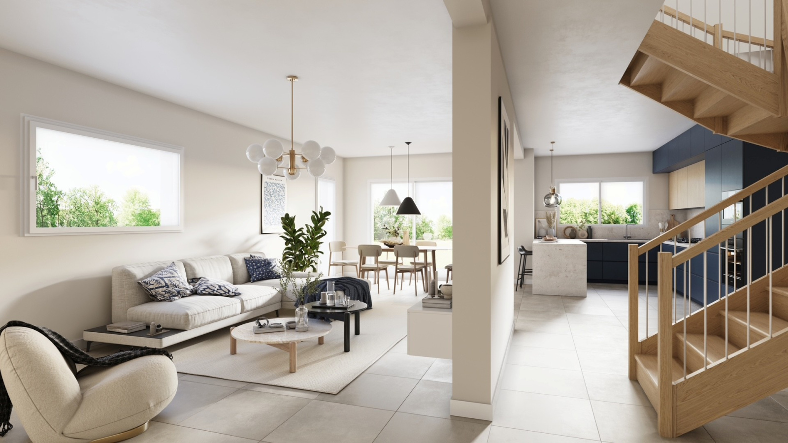Au rez-de-chaussée : d’une entrée avec un placard, d’une salle de douche avec un wc meuble vasque et une fenêtre, une très belle pièce de vie lumineuse de 50m² avec la cuisine ouverte le tout avec accès jardin exposé sud et ouest. Un grand garage attenant avec espace buanderie.