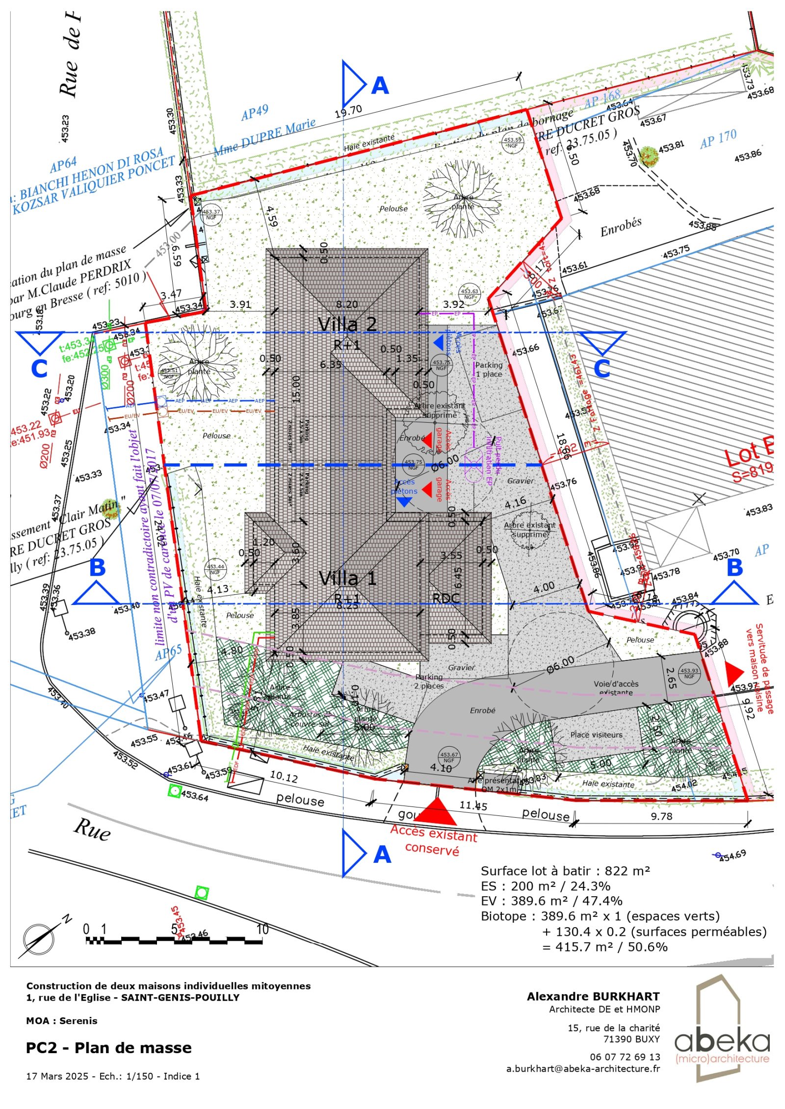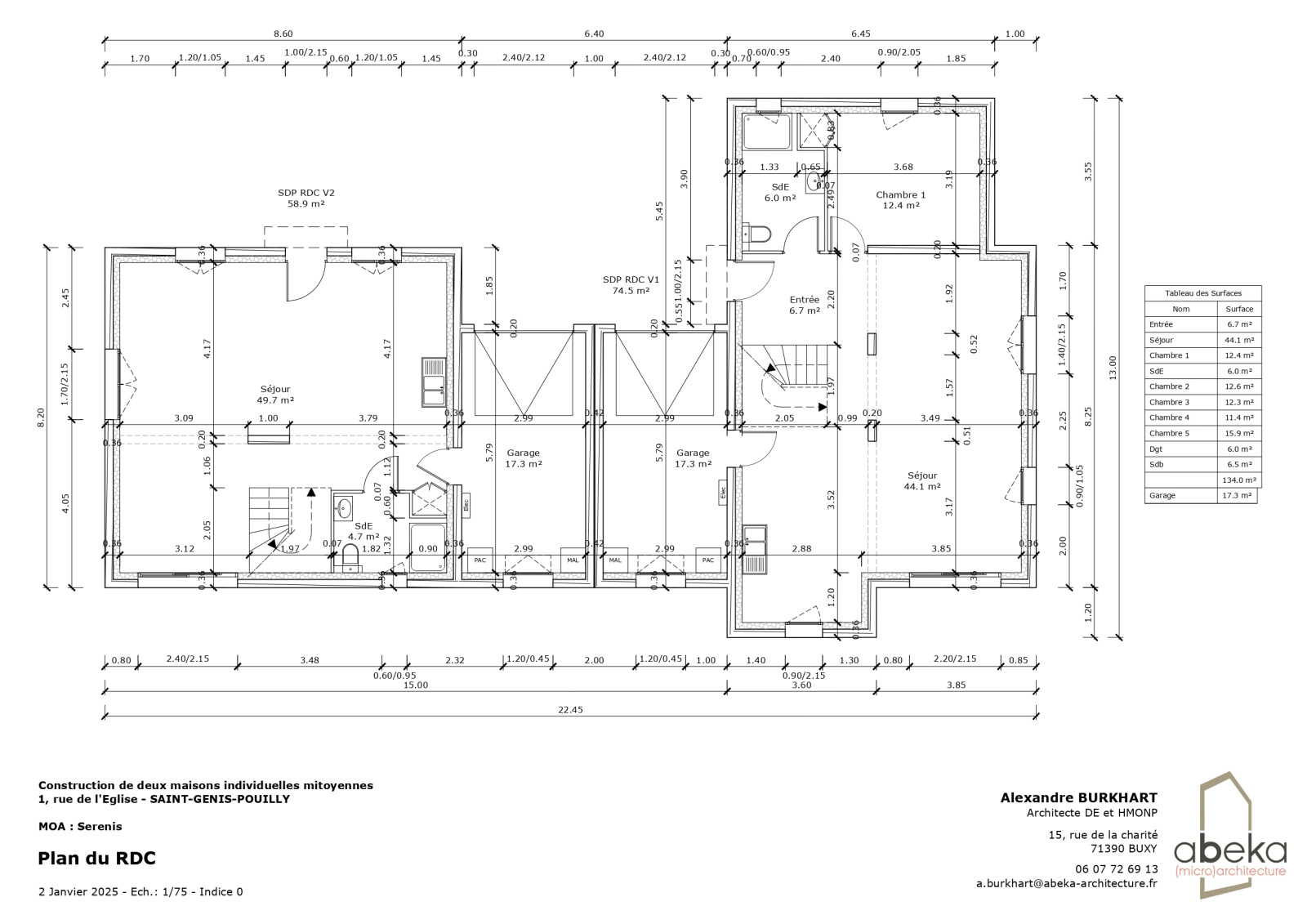 CENTRE SAINT GENIS POUILLY 01630, Magnifique maison mitoyenne uniquement par le garage, en parfait état, sur 2 niveaux d’une surface de 134m² habitables avec 5 chambres + garage + 1 PARKING. Construction écologique BBC basse consommation !