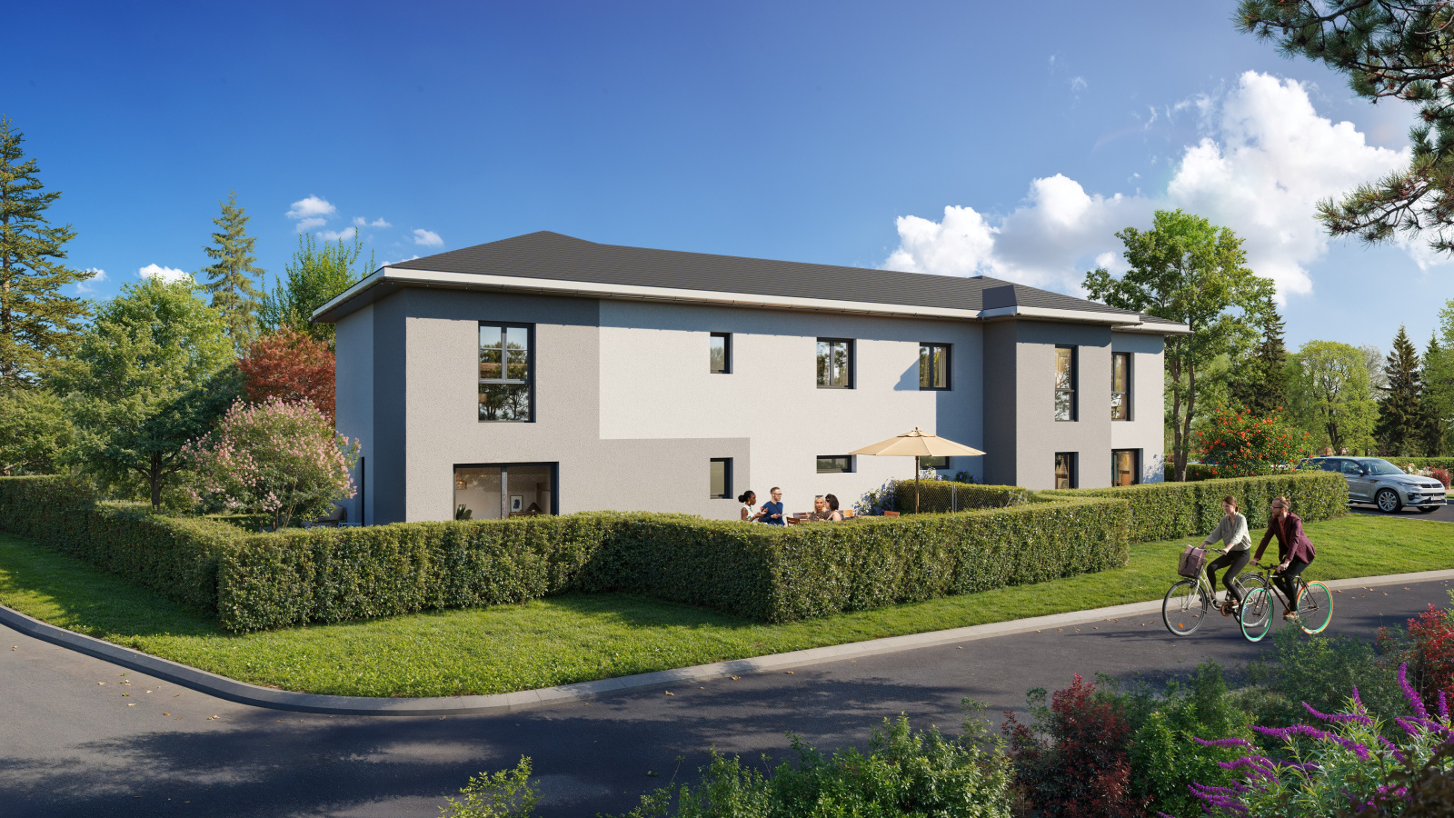 Prestations au top : chaudière pompe à chaleur au sol, stores électriques, wc suspendus, salles de bains carrelées et équipées. Etc etc !