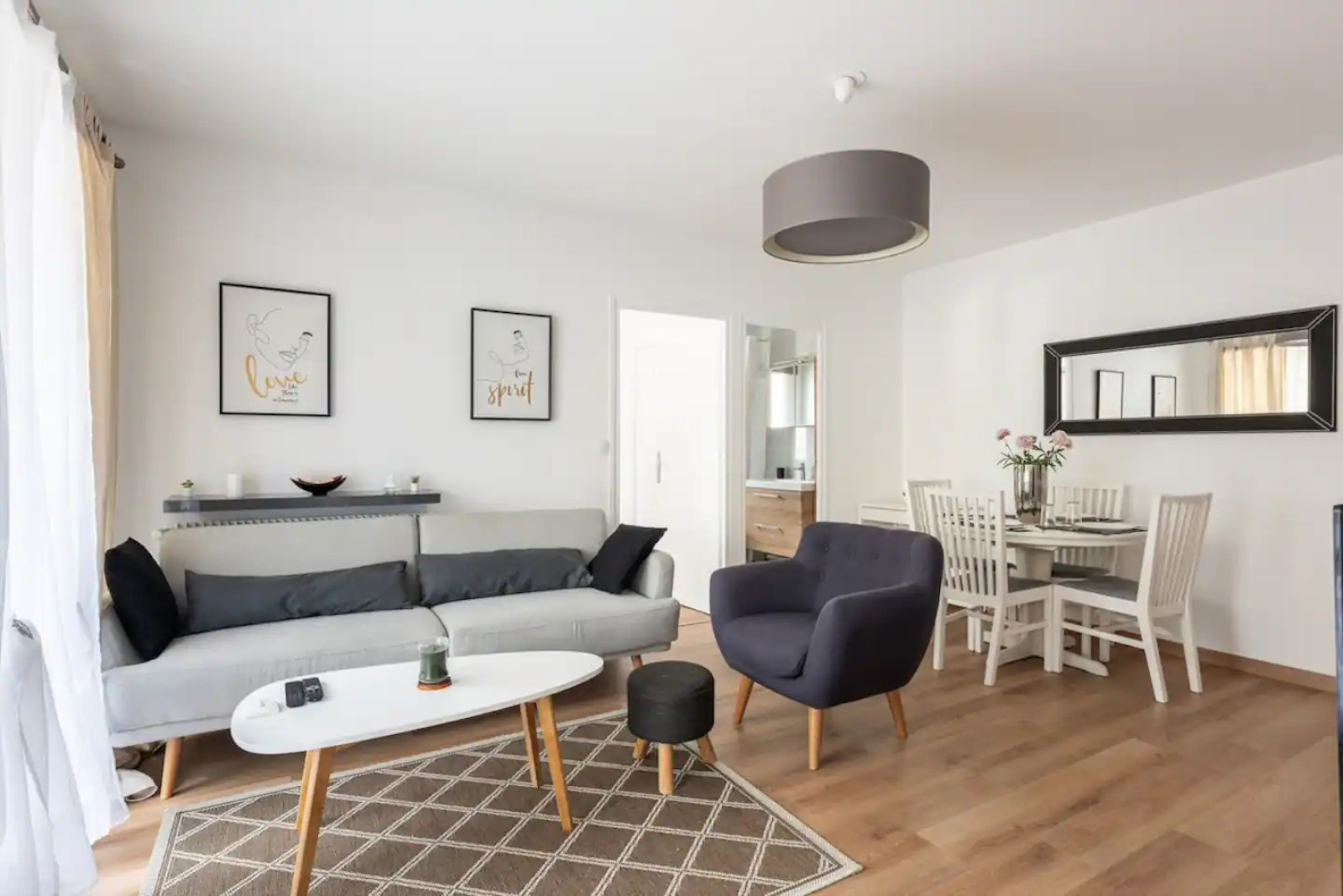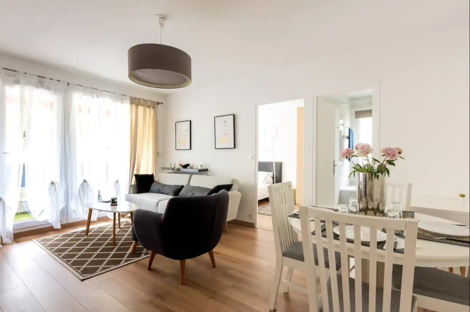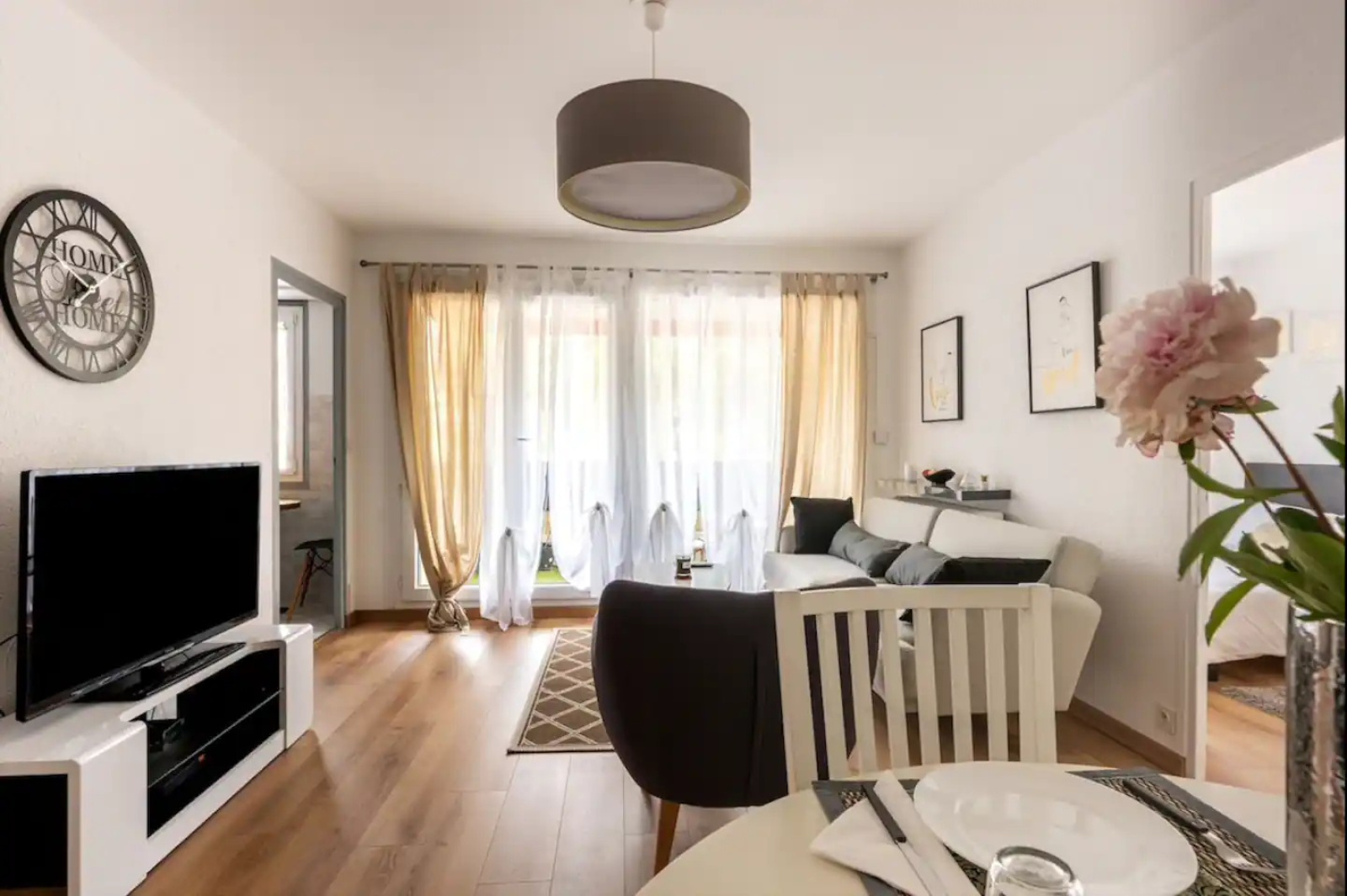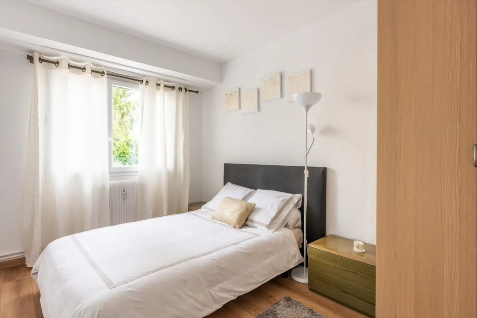 Ferney-Voltaire 01210, très bien situé, devant le bus F et de toutes les commodités, agréable appartement type T2 de 47m² avec un balcon, et distribué comme suit : une grande entrée avec un placard aménagé, un dressing aménagé avec espace machine à laver, un WC séparé, une cuisine équipée indépendante, un salon séjour avec balcon, une grande chambre, une salle de bain avec fenêtre. Appartement en très bon état, fenêtre double vitrage, stores électriques. En annexe : une cave, une place de parking privative extérieure.