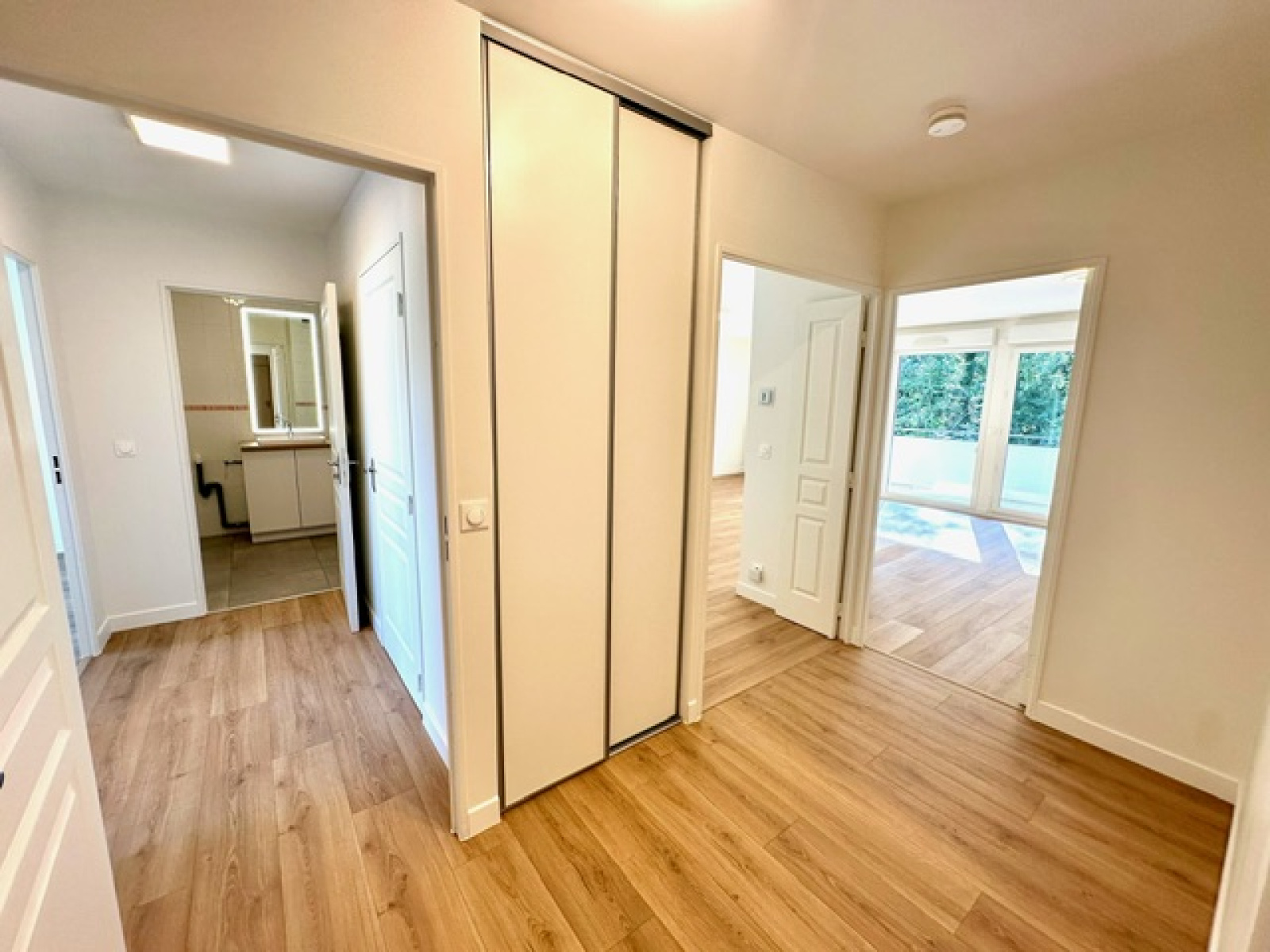 FERNEY-VOLTAIRE 01210, secteur lycée international, très bel appartement type T4 traversant de 95 m2 habitables entièrement rénové à neuf, situé au 1er étage avec ascenseur. Il se composé : d’une grande entrée avec 2 placards et un dressing, un espace de vie avec cuisine ouverte (à réaliser), salon séjour salle à manger donnant accès au balcon exposé sud-ouest sans vis-à-vis, un dégagement, un wc séparé, trois chambres avec placards dont une suite parentale avec sa propre salle de douche privative et une autre salle de bain familiale avec baignoire. En annexe au sous-sol : un garage box fermé. Plusieurs espaces communes avec locaux vélos, et un vaste parking privatif pour la résidence. Environnement calme, bus pour Genève au pied de l’appartement. Chauffage individuel au gaz, fibre optique. Belles prestations générales. Classe énergie C !