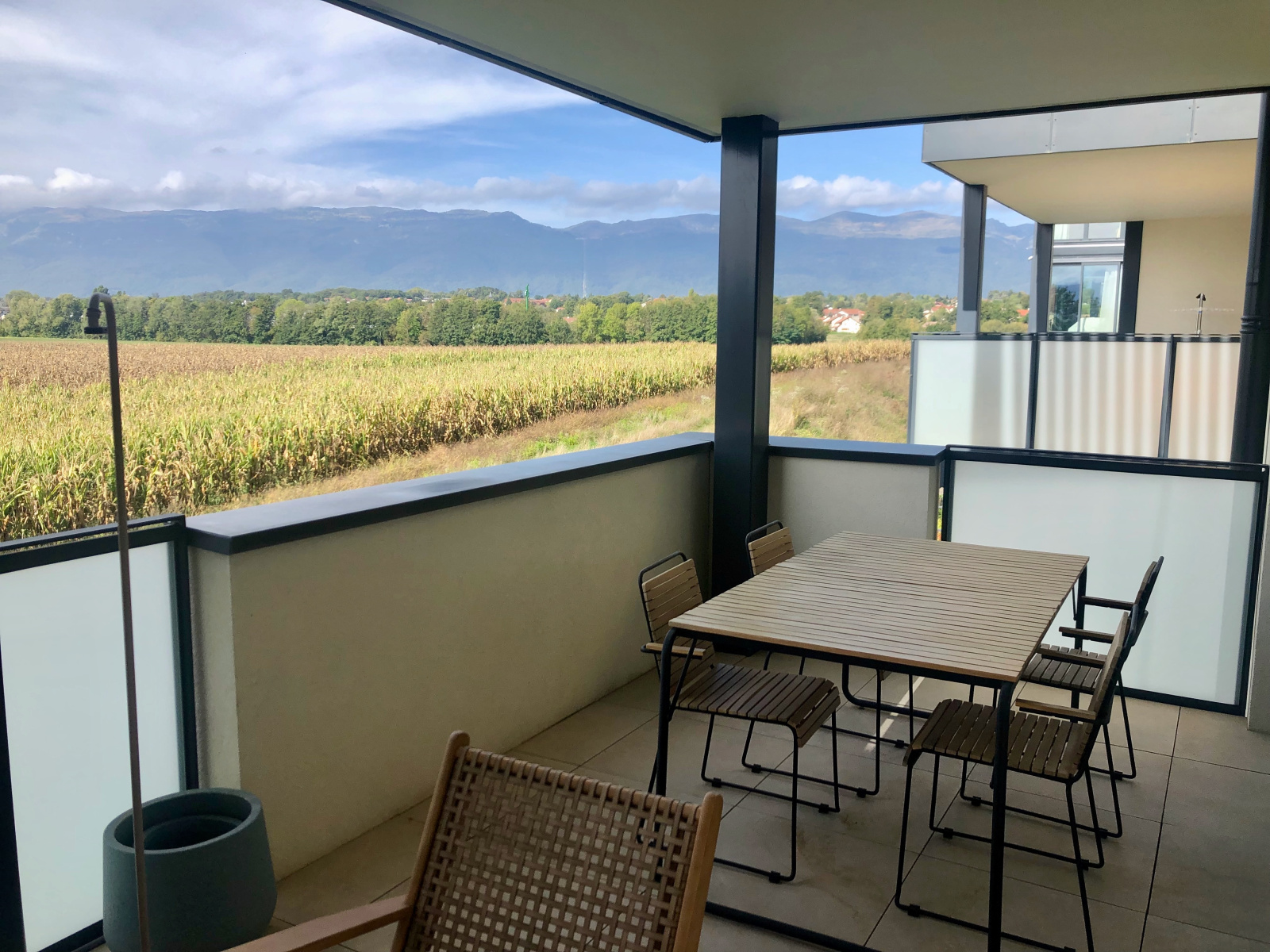 Nous vous propose ce magnifique appartement type T4 traversant de 85m² situé au 2ième étage avec ascenseur dans une résidence de standing très récente. L’appartement est composé : d’une entrée avec un placard, une magnifique cuisine entièrement équipée avec ilot repas ouverte sur le lumineux salon-séjour donnant accès à la terrasse exposée sud et ouest avec vue sur le Salève et le Jura, un dégagement, un wc séparé suspendu avec un lave-main, une buanderie, 3 chambres dont 2 avec placards et dont une suite parentale avec sa propre salle de douche privative et accès à la terrasse, une autre chambre donnant accès à un 2ième balcon, et une autre salle de douche avec une fenêtre.