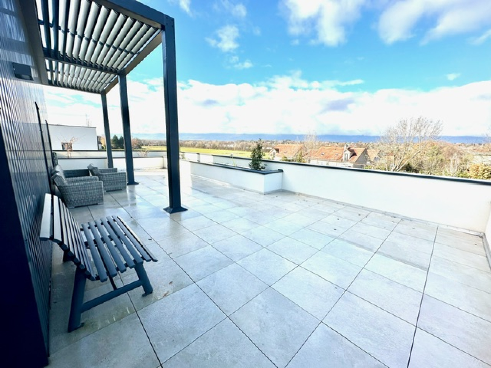 Ferney-Voltaire 01210, dans résidence très récente et de grand standing, magnifique penthouse duplex au dernier étage de 138m² habitables type T5 (4 chambres) avec ces terrasses privatives de 100m² avec de belles vues sur le Jura, le Mont Blanc et le Salève. Au REZ supérieur : dégagement avec 2 placards, une cuisine entièrement équipée ouverte sur l'espace de vie comprenant le salon-séjour-salle à manger donnant accès aux terrasses, une grande chambre avec son dressing, une salle de bain complète avec fenêtre et un wc visiteur avec un lave-main. AU REZ inférieur : un dégagement avec placards, 3 chambres, une autre salle de bain complète, un wc séparé. En Annexe : garage en sous sol. Très belles prestations générales, futur arrêt de tram pour Genève au pied de la résidence. Chauffage gaz individuel. Rare à la vente. Commerces à distance à pied. A VISITER RAPIDEMENT Matesa immobilier, agence immobilière Ferney-Voltaire, achat vente appartement Ferney 01210 “Les informations sur les risques auxquels ce bien est exposé sont disponibles sur le site Géorisques http://www.georisques.gouv.fr”.