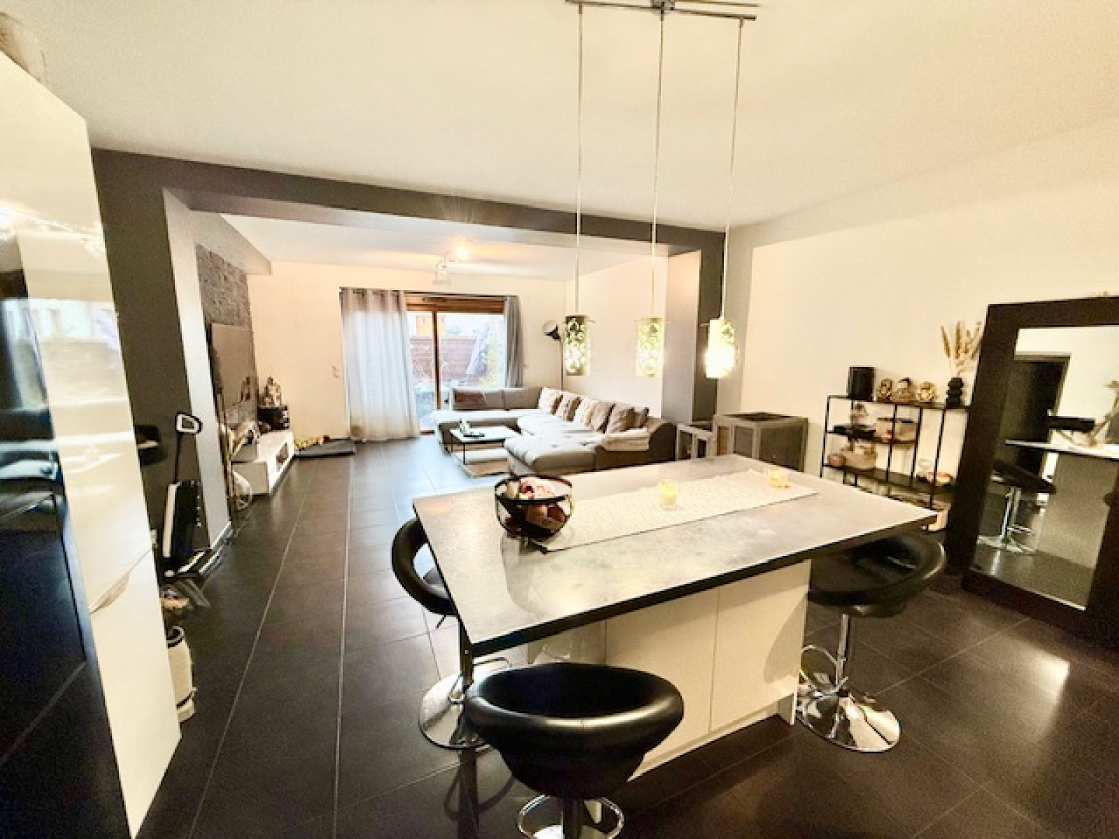 THOIRY 01710, au centre du village, à deux pas du bus pour Genève, commerces, nous vous proposons ce grand appartement type T2 de 75m² en rez-de-terrasse privative dans une petite résidence de standing de 2014, et comprenant : une entrée avec un placard, un wc visiteur avec lave-main, un cellier – buanderie avec adoucisseur d’eau, une très belle pièce de vie plus de 42m² avec la cuisine entièrement équipée ouverte sur le salon séjour avec accès à la terrasse privative exposé à l’ouest de 21m², un dégagement desservant la chambre avec une grande penderie, une salle de douche à l’italienne complète.