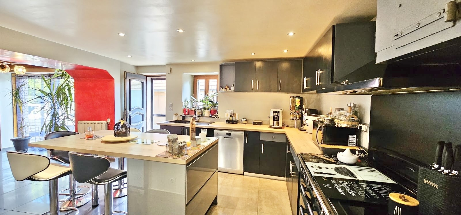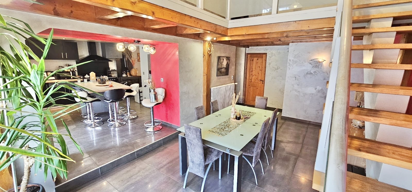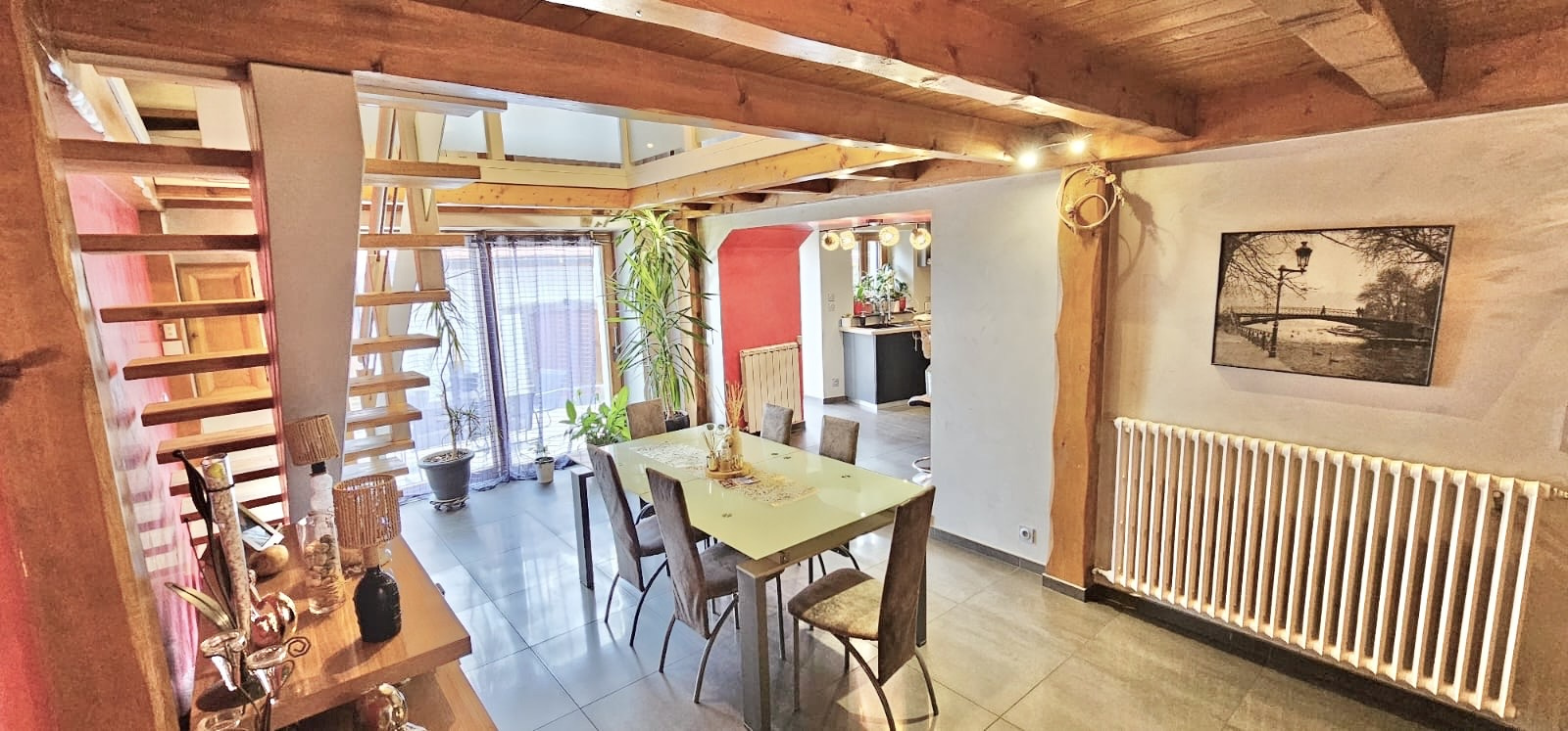 En exclusivité chez Matesa Immobilier, venez découvrir cette magnifique de maison de Village entièrement rénovée, située dans un petit hameau à 10 min de la Balme de Sillingy et de toutes les commodités. Elle se compose d’une belle pièce de vie avec cuisine équipée ouverte sur le salon - séjour, une buanderie. Au 1er étage : deux chambres avec placards, une grande salle de bain, un espace bureau communiquant pouvant devenir une chambre ou un studio séparé avec entrée indépendante. Au dernier étage : une magnifique chambre ou salle de jeu avec poutres apparentes, 2 wc et un garage aménagé attenant à la bâtisse. Chauffage écologique Pompe à chaleur, volets roulants électriques, possibilités de mettre un poêle.