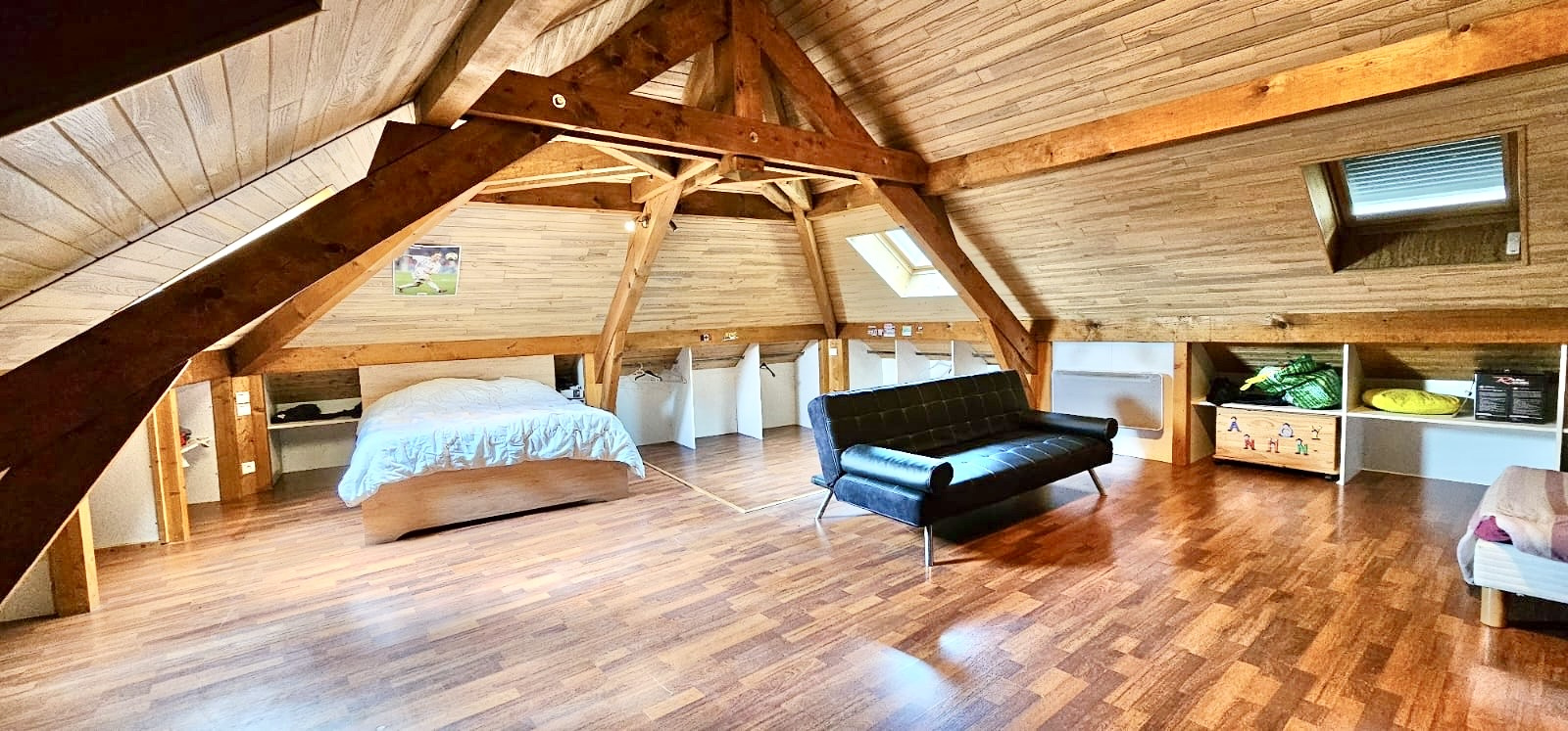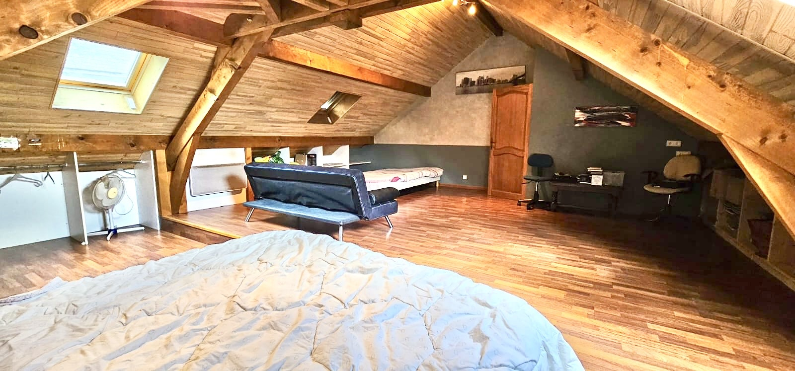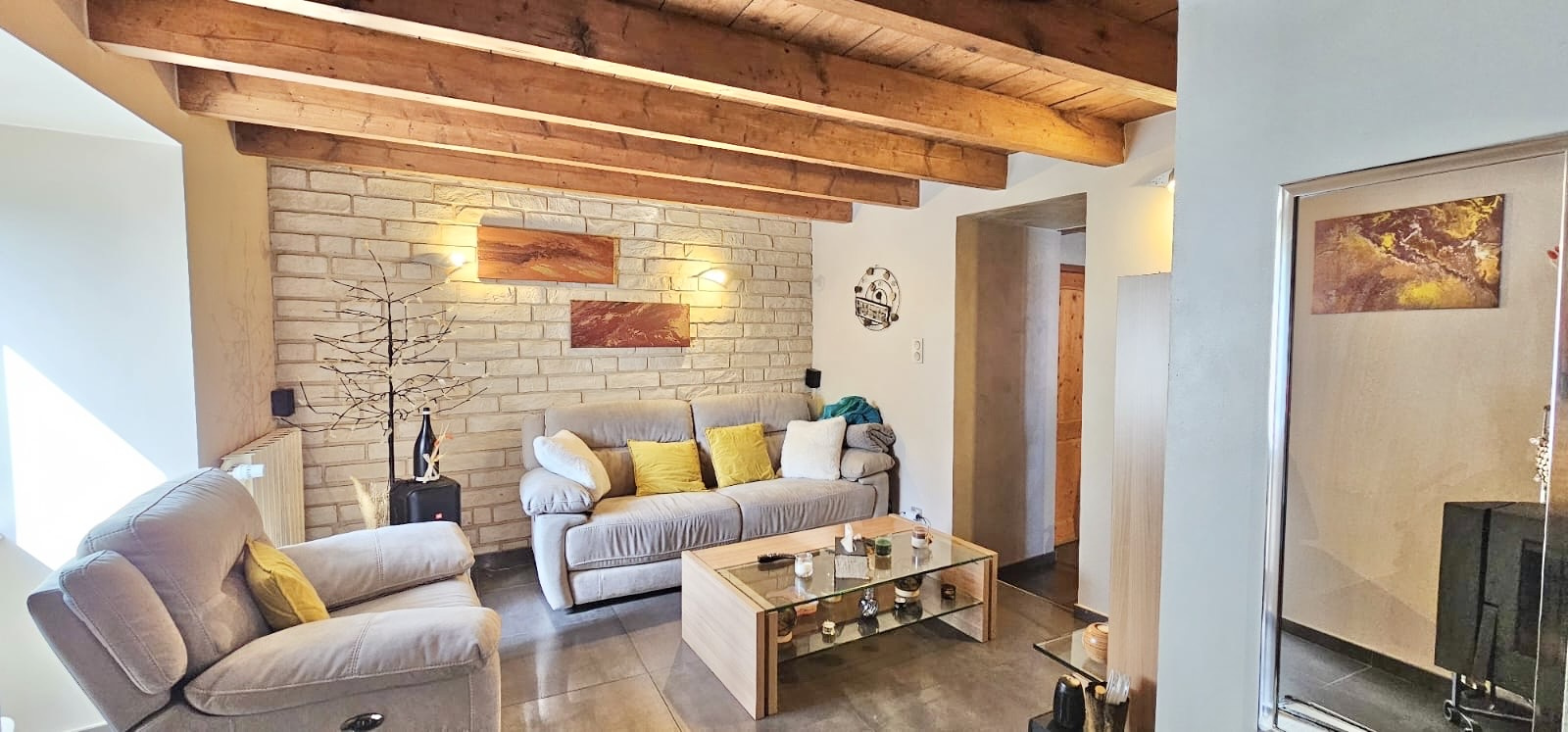 En exclusivité chez Matesa Immobilier, venez découvrir cette magnifique de maison de Village entièrement rénovée, située dans un petit hameau à 10 min de la Balme de Sillingy et de toutes les commodités. Elle se compose d’une belle pièce de vie avec cuisine équipée ouverte sur le salon - séjour, une buanderie. Au 1er étage : deux chambres avec placards, une grande salle de bain, un espace bureau communiquant pouvant devenir une chambre ou un studio séparé avec entrée indépendante. Au dernier étage : une magnifique chambre ou salle de jeu avec poutres apparentes, 2 wc et un garage aménagé attenant à la bâtisse. Chauffage écologique Pompe à chaleur, volets roulants électriques, possibilités de mettre un poêle.