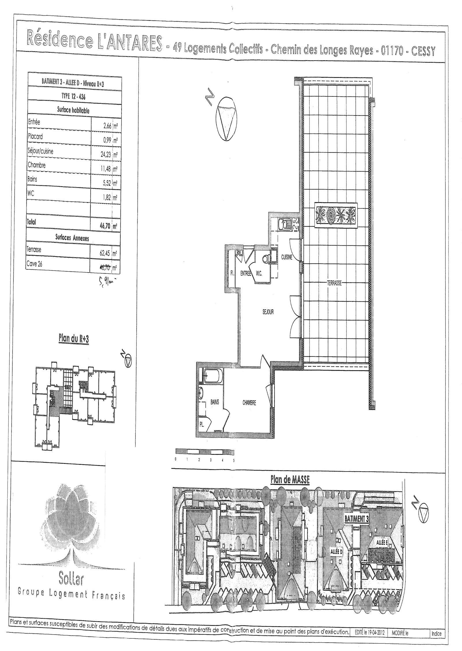 CESSY 01170 - MAGNIFIQUE T2 47m² DERNIER ETAGE AVEC 63m² de terrasse, cave et garage