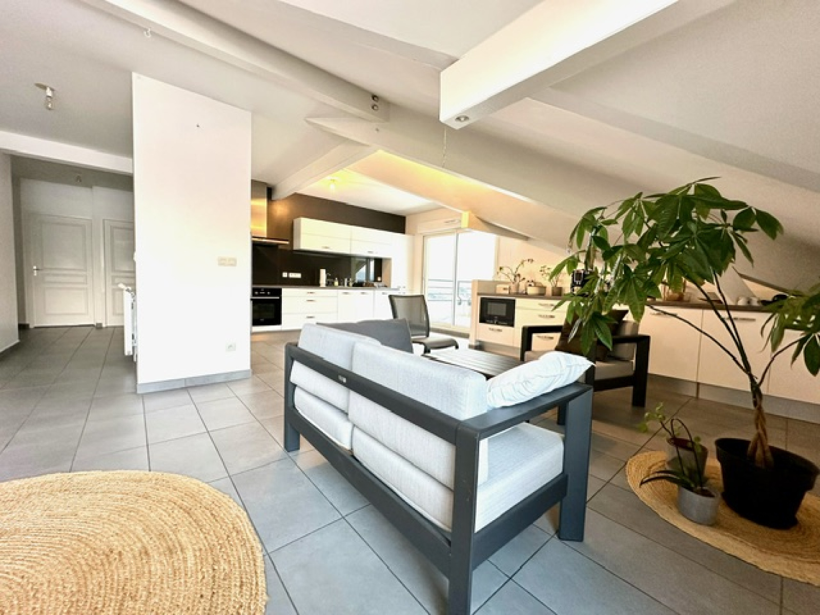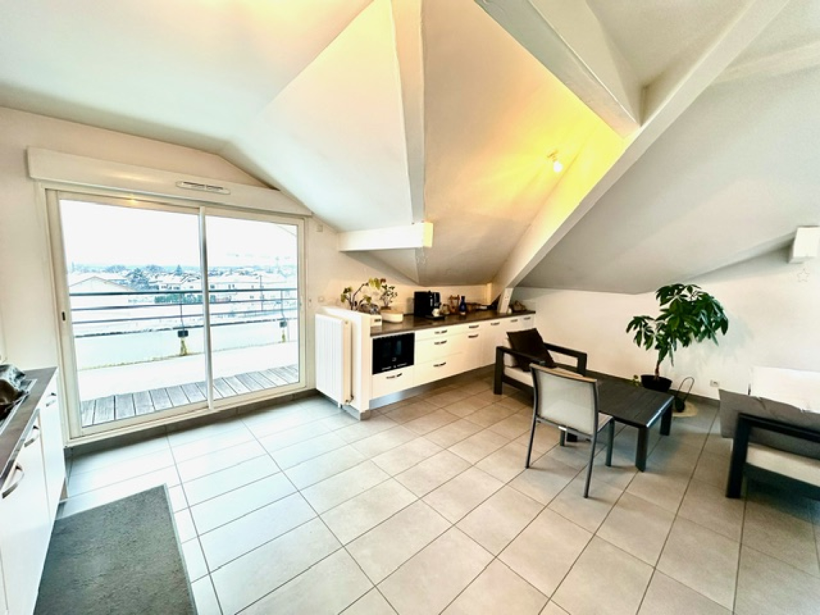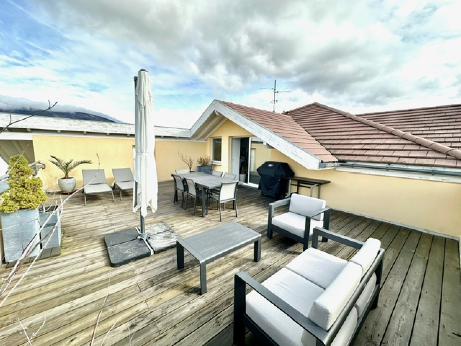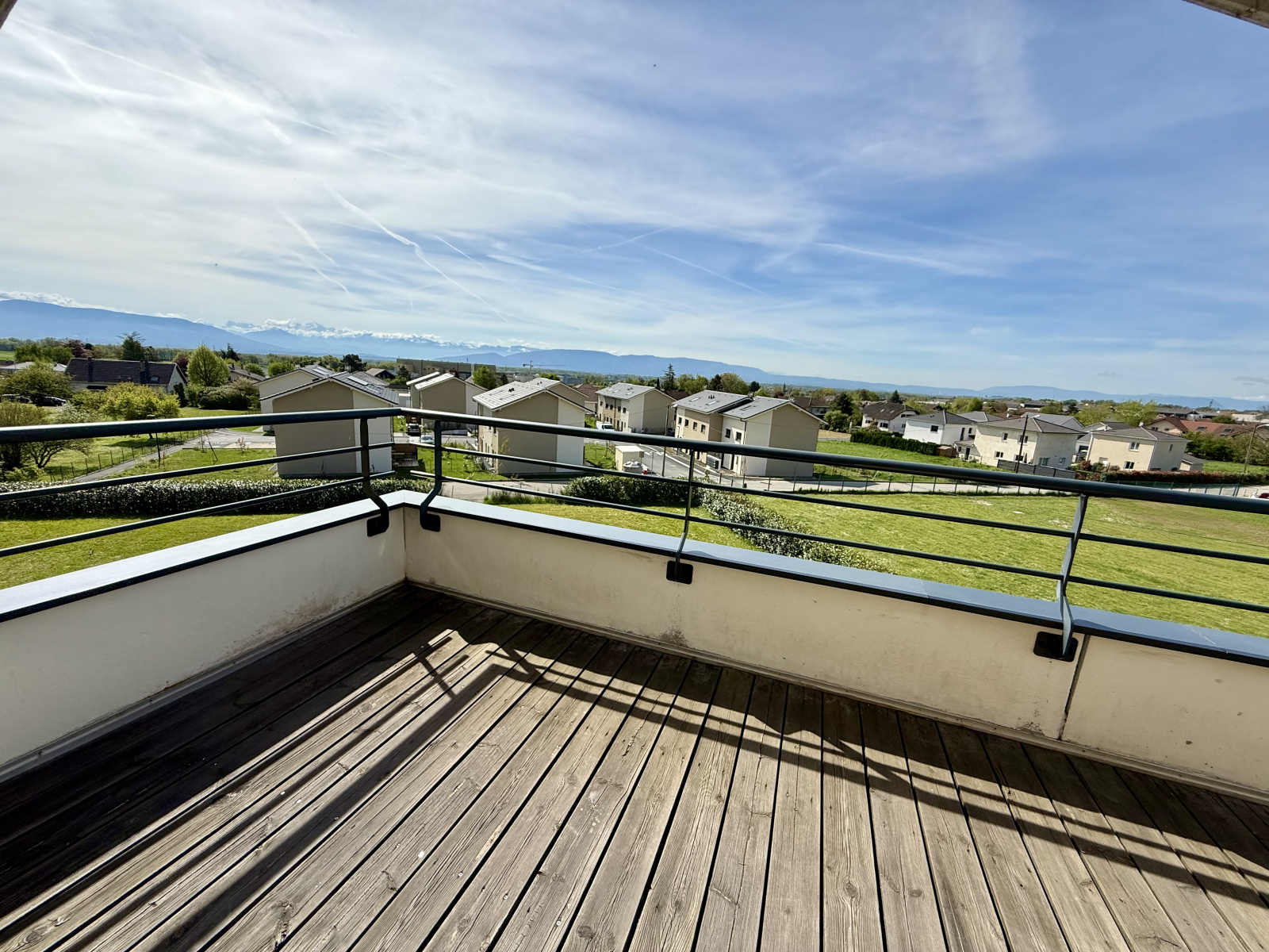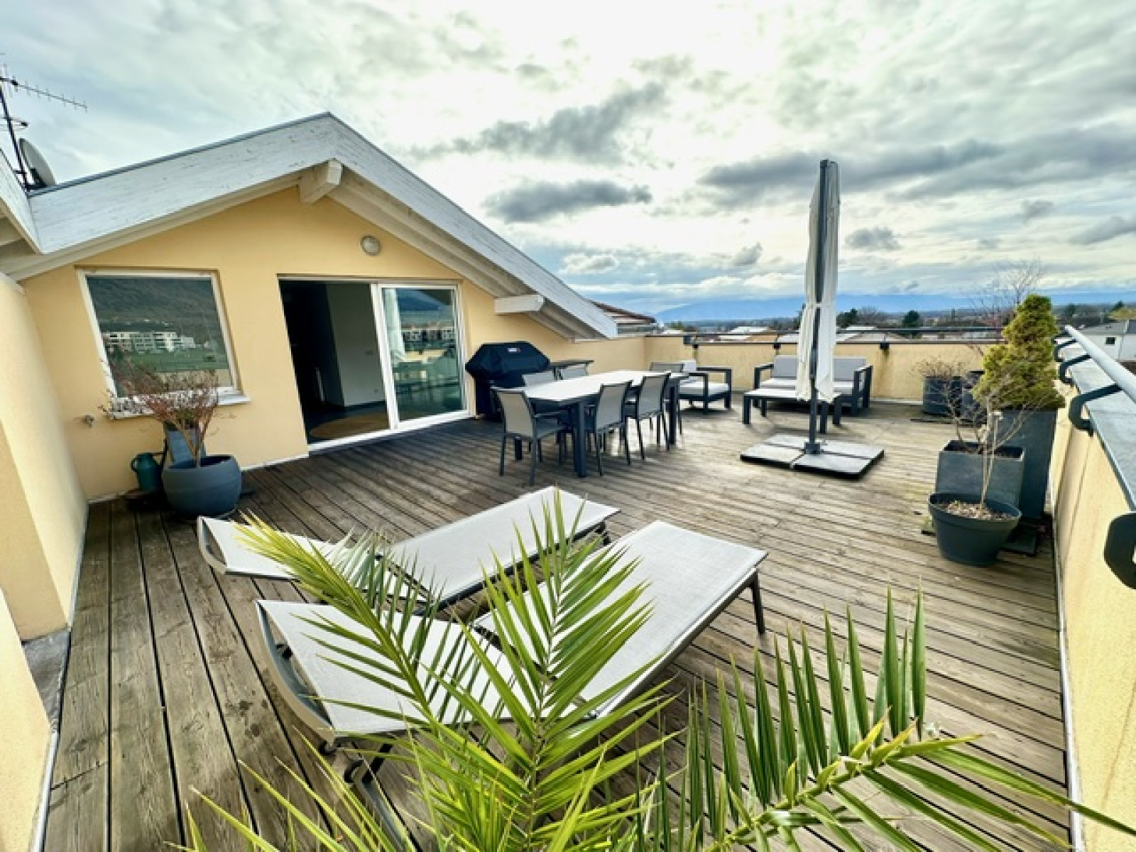 CESSY 01170, à deux pas du centre-ville, dans une résidence de standing au bout d’une impasse au calme, nous vous proposons un bien unique et rare avec ce magnifique appartement en attique - penthouse et seul au dernier étage (unique appartement sur le palier avec ascenseur) avec une vaste terrasse de 53m² sans aucun vis-à-vis + un balcon de 14m² et bénéficiant de vues panoramiques sur le Mont-Blanc et le Jura. Il dispose d’une cuisine entièrement équipée ouverte sur les espaces de vie, un dégagement avec un placard, trois chambres dont une suite parentale avec sa propre salle de douche et des placards, une autre salle de bain avec un wc, un wc séparé avec meuble vasque. L’appartement est en parfait état et lumineux. En annexe : un grenier de 22m², une cave et un garage fermé. Plusieurs places de parking à disposition des résidents. Le bus F, écoles et commerces se trouvent à pied. Chauffage gaz individuel. A VISITER TRES RAPIDEMENT !