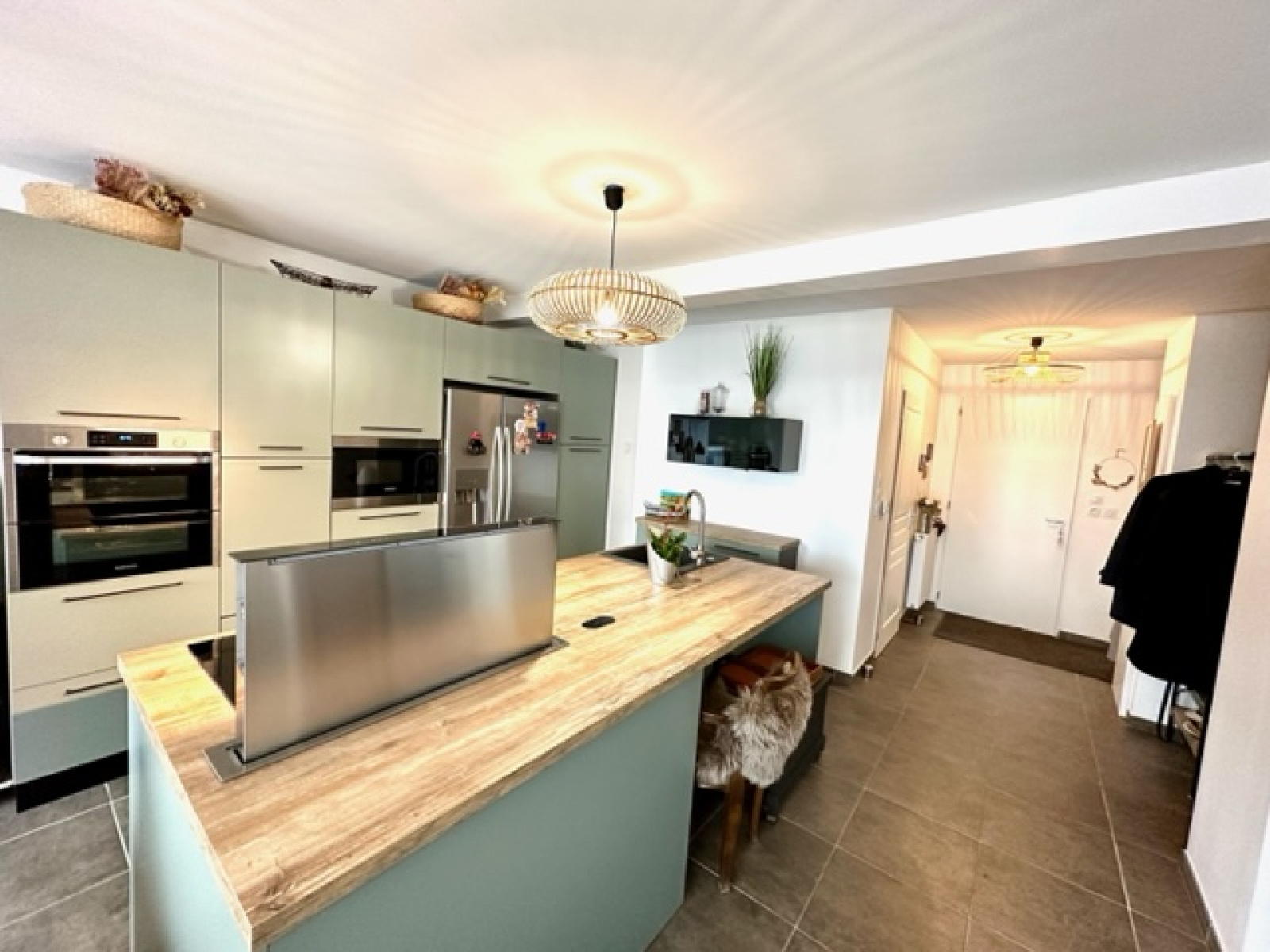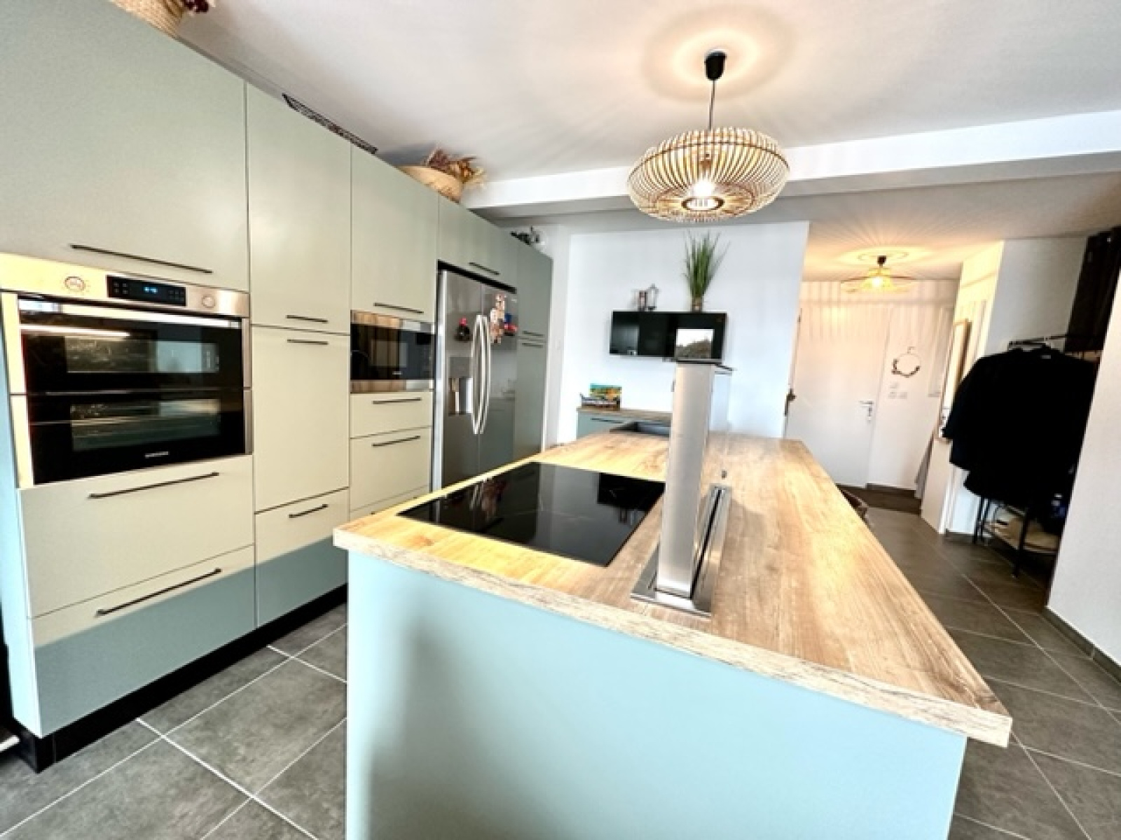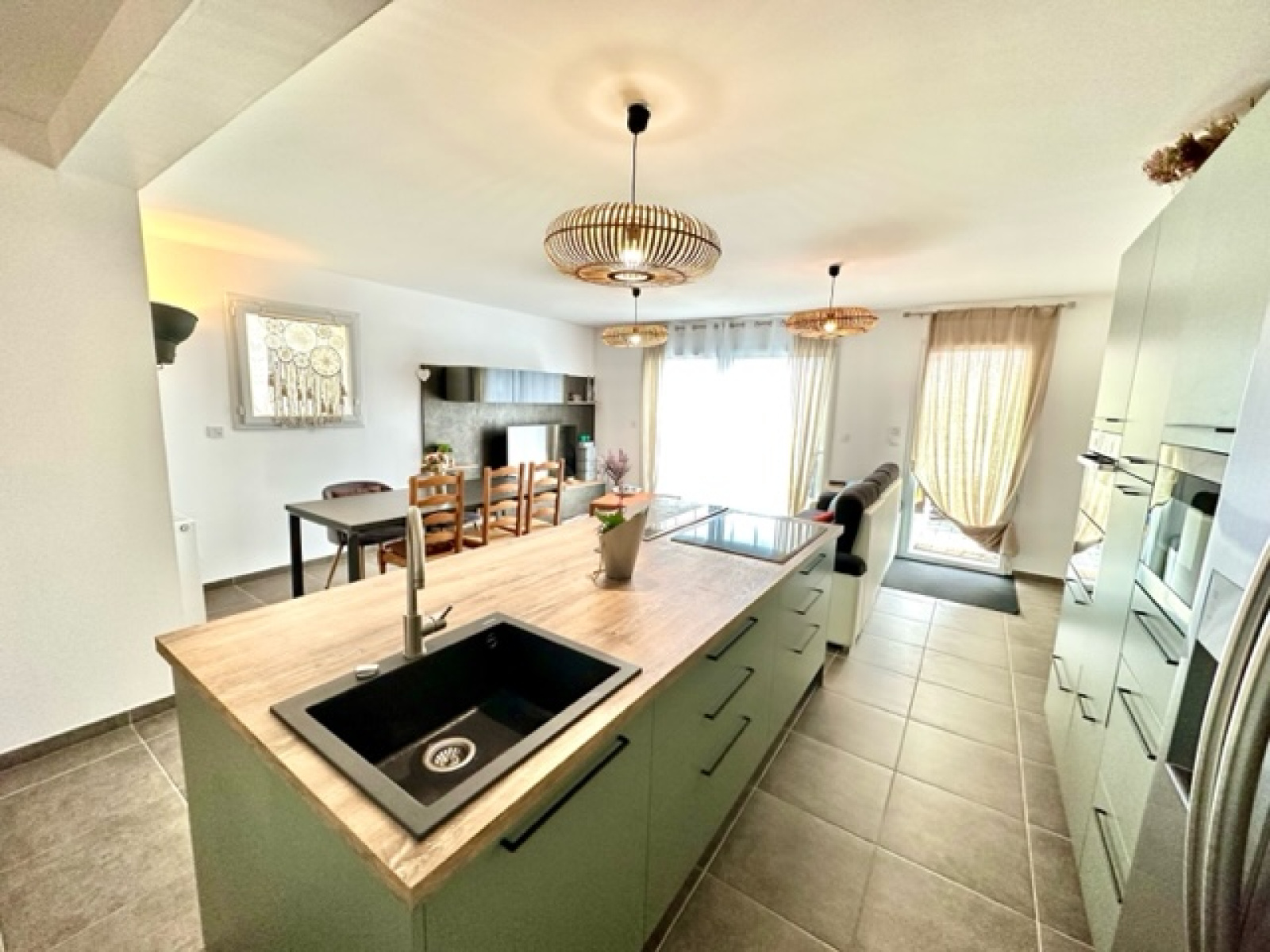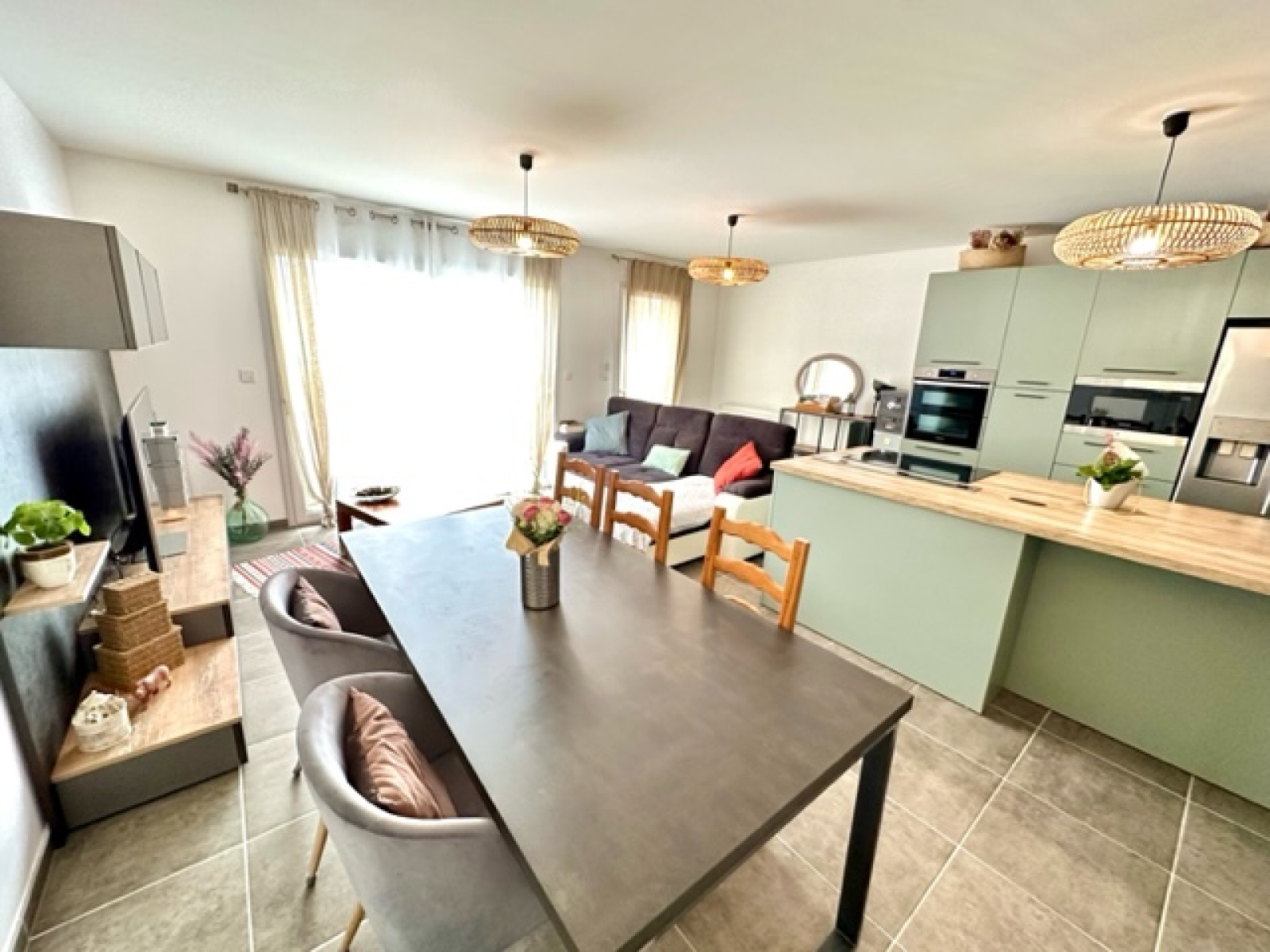 En exclusivité, située à Margencel direction port de Séchex, nous sommes ravis de vous proposer à la vente cette très jolie maison individuelle d’environ 90m2 habitables avec une terrasse et un jardin. Elle est en parfait état car livrée en 2020 et bénéficie des dernières normes énergétiques. Elle est située au calme au fond d’une impasse résidentielle. Elle se compose au rez-de-chaussée : une belle entrée avec une penderies et un grand rangement sous l’escalier, une lumineuse pièce de vie avec une cuisine de très bonne qualité entièrement équipée avec son îlot central, une salle à manger - salon - séjour le tout donnant accès à la terrasse et au jardin exposé sud et ouest, une salle douche équipée avec meuble vasque, un wc suspendu et une fenêtre. A l’étage : un dégagement desservant un wc séparé avec lave main, 3 chambres, une salle de bain avec meuble vasque et fenêtre. En annexe : un garage fermé avec une mezzanine, une place de parking privative extérieure. Chauffage gaz de ville individuel ainsi que des panneaux solaires pour auto-consommation. Construction récente et très bon classement énergétique.