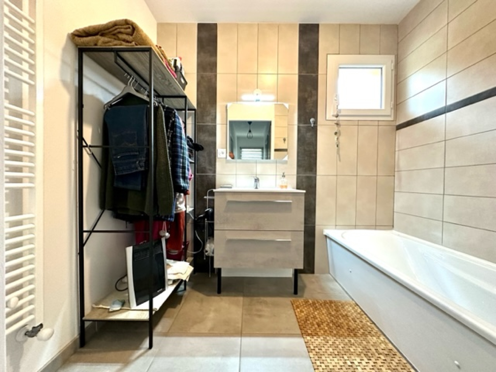 Elle est située à quelques minutes de toutes les commodities (écoles, collège, commerces, etc) et du lac.