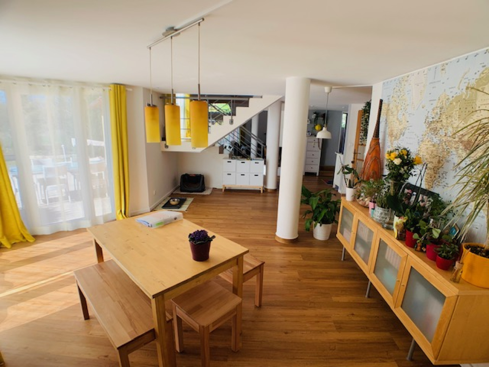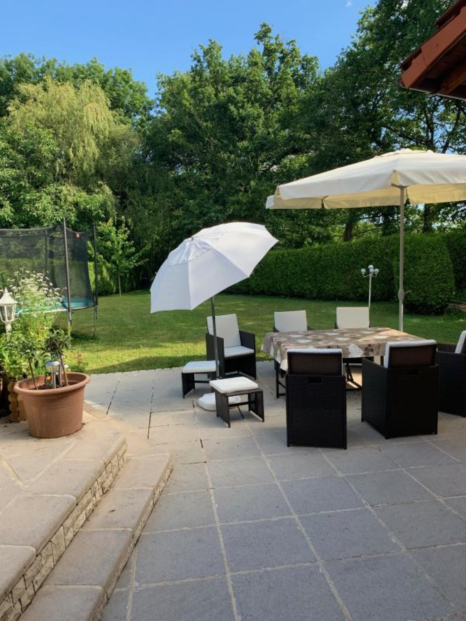A VERSONNEX 01210, au fond d'une impasse, à 2 pas de la douane, vaste maison individuelle avec sa deuxième petite maisonnette d'une superficie totale de 245 m² implantée sur une parcelle de 1114 m². La villa principale de 190 m² est disposée au suit : au RDC : grande entrée avec placards, une cuisine équipée donnant sur la salle à manger, un grand et lulineux salon séjour avec cheminée donnant accès à la terrasse avec jucuzzi et le jardin, une chambre, un wc visiteur, une buanderie - cellier, un grand garage.. À l'étage,: un dégagement, 3 chambres dont une suite parentale avec dressing et salle de bain, une autre salle de bain avec WC. L'annexe de 55m² en duplex est composée au RDC : une entrée, une cuisine équipée ouverte sur salle à manger, une chambre, une salle de douche avec wc, à l'étage : un coin tv, une autre chambre. Les 2 maisons peuvent être réunies. Parcelle plate et arborée, au calme sans vis à vis. La maison bénéficie de panneaux photovoltaiques permettent une revente d'électricité annuelle, fenêtres récentes, parfait état général. Idéalement située à proximité de l'école et du bus pour Genève. A VISITER RAPIDEMENT.