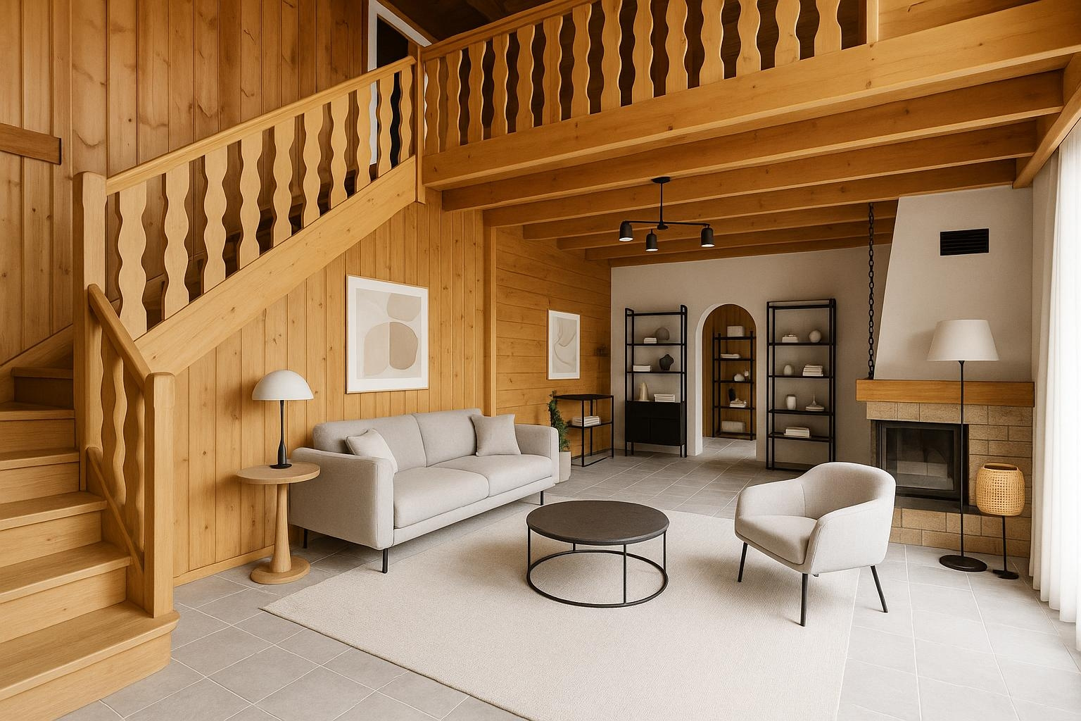Une mezzanine ouverte avec espace bureau