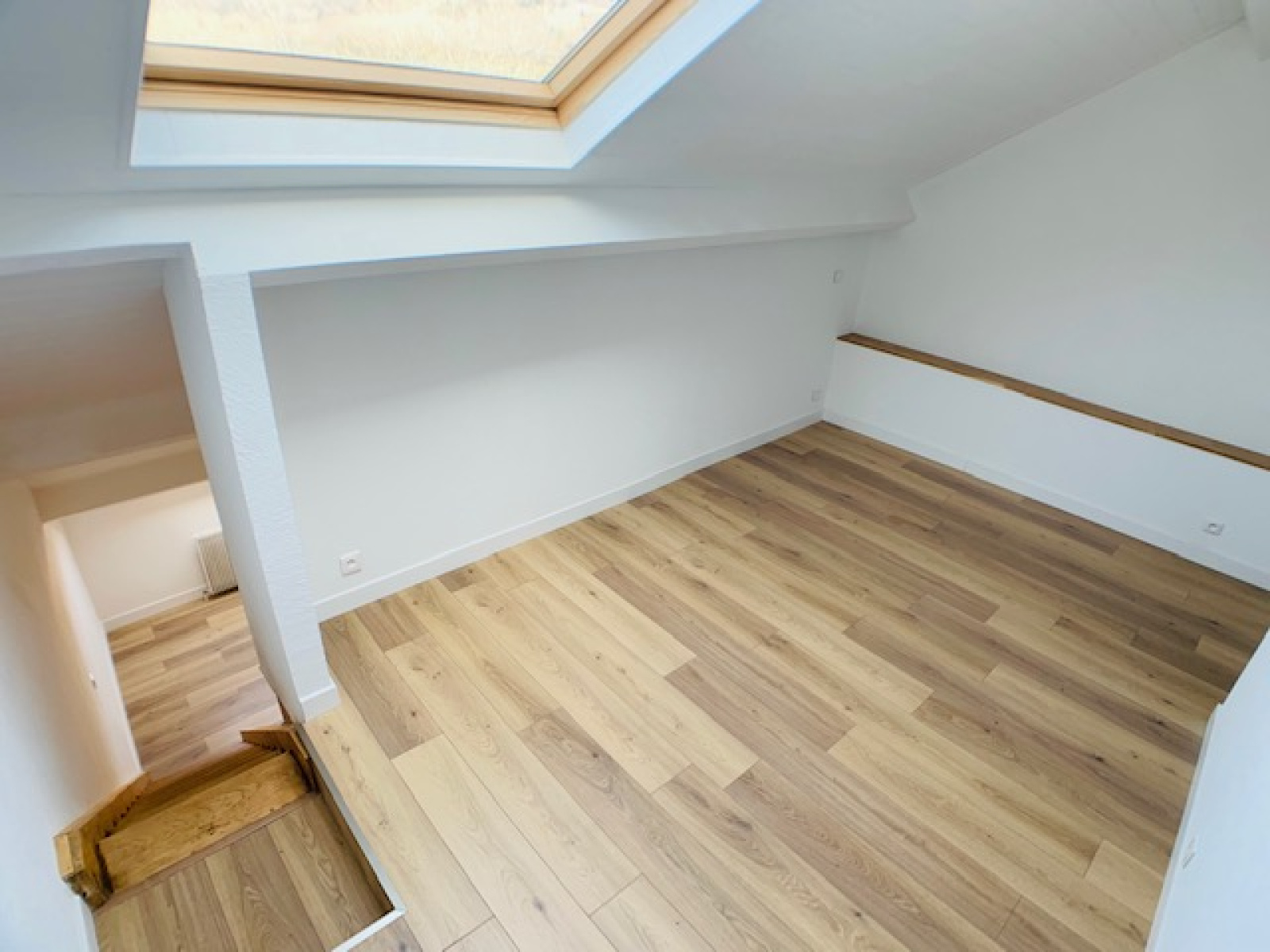 Dans une ferme rénovée, environnement très calme et recherché, magnifique appartement T2 duplex entièrement rénové avec matériaux de qualité et comprenant : entrée, une cuisine équipée séparée, un salon séjour salle à manger, une salle de douche avec wc. A L'ETAGE : une grande chambre. En annexe : une cave et un parking privé extérieur. Beaucoup de charme, prix attractif. Beaucoup de grands espaces verts à jouissance avec la ferme.