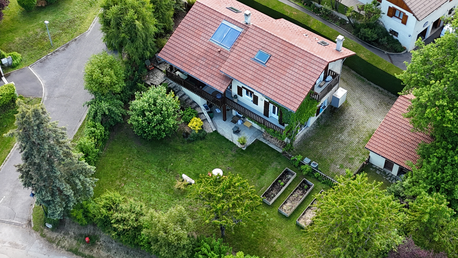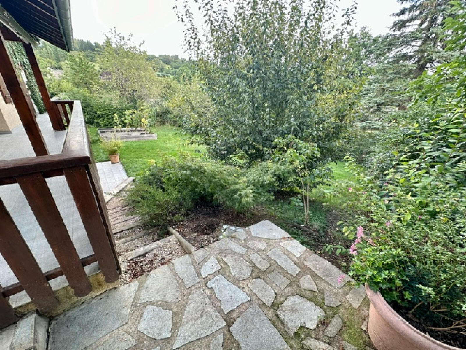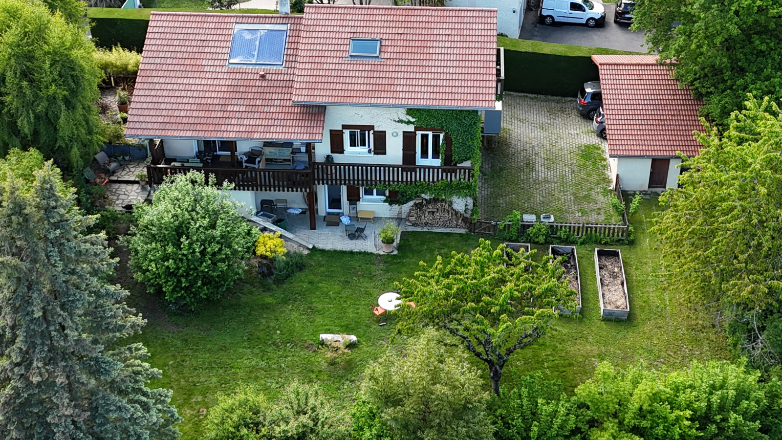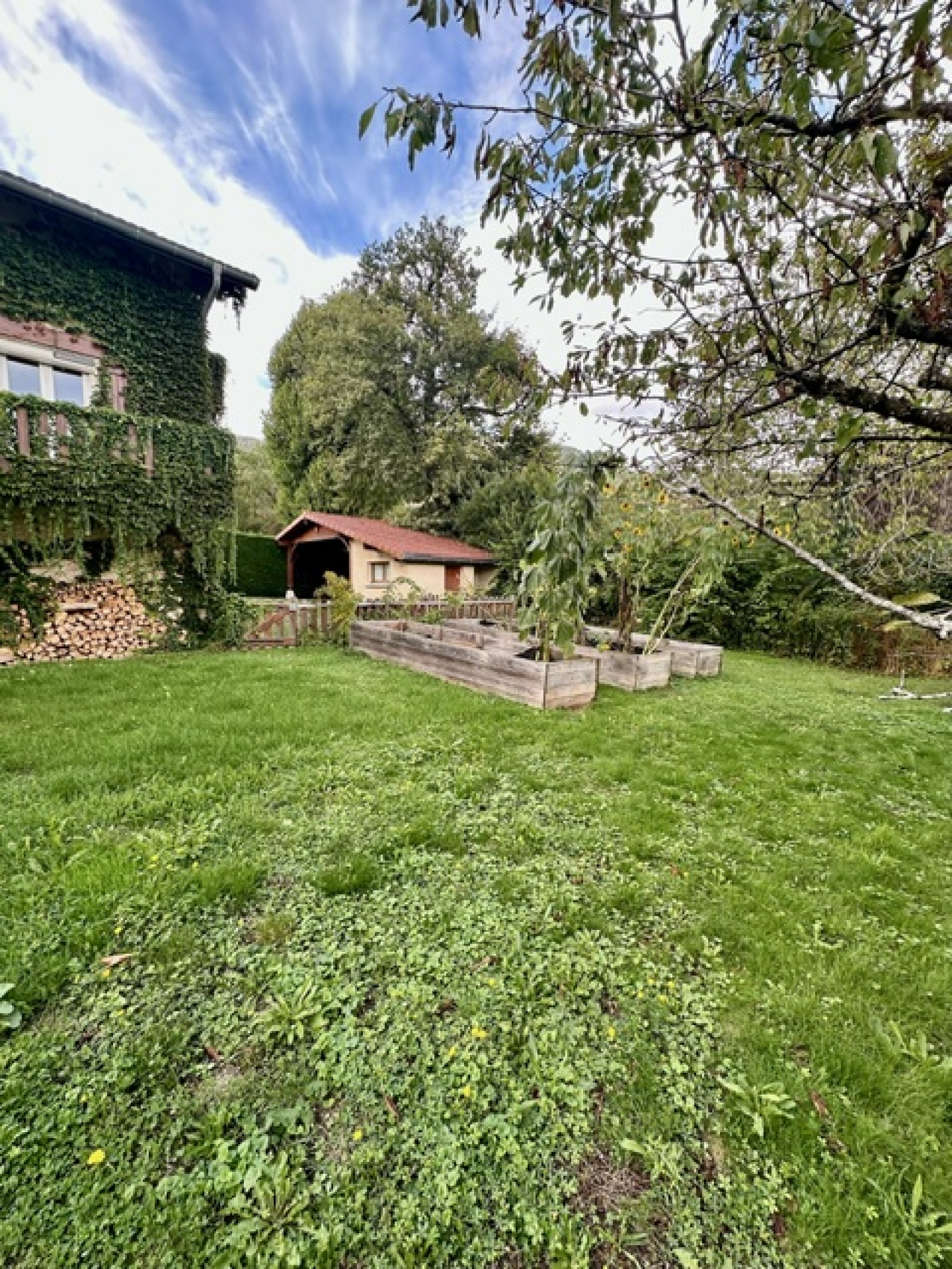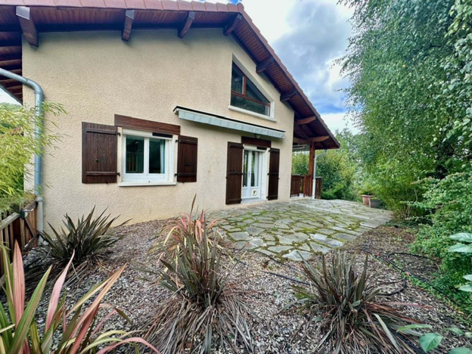 L’environnement est au calme, et très agréable. Le terrain est clos et arboré. Tous les abords extérieurs sont soignés. Elle a peu de vis-à-vis.