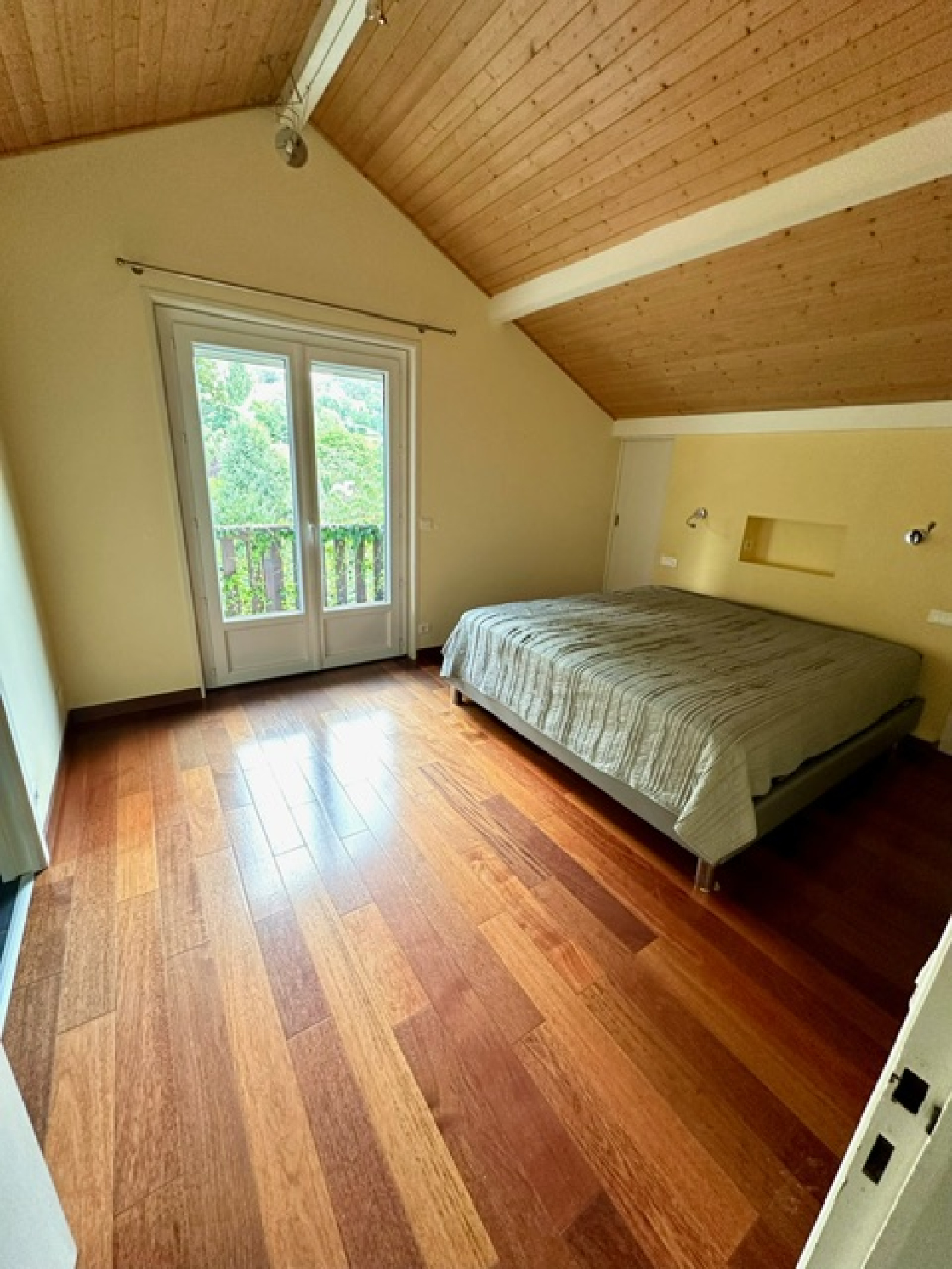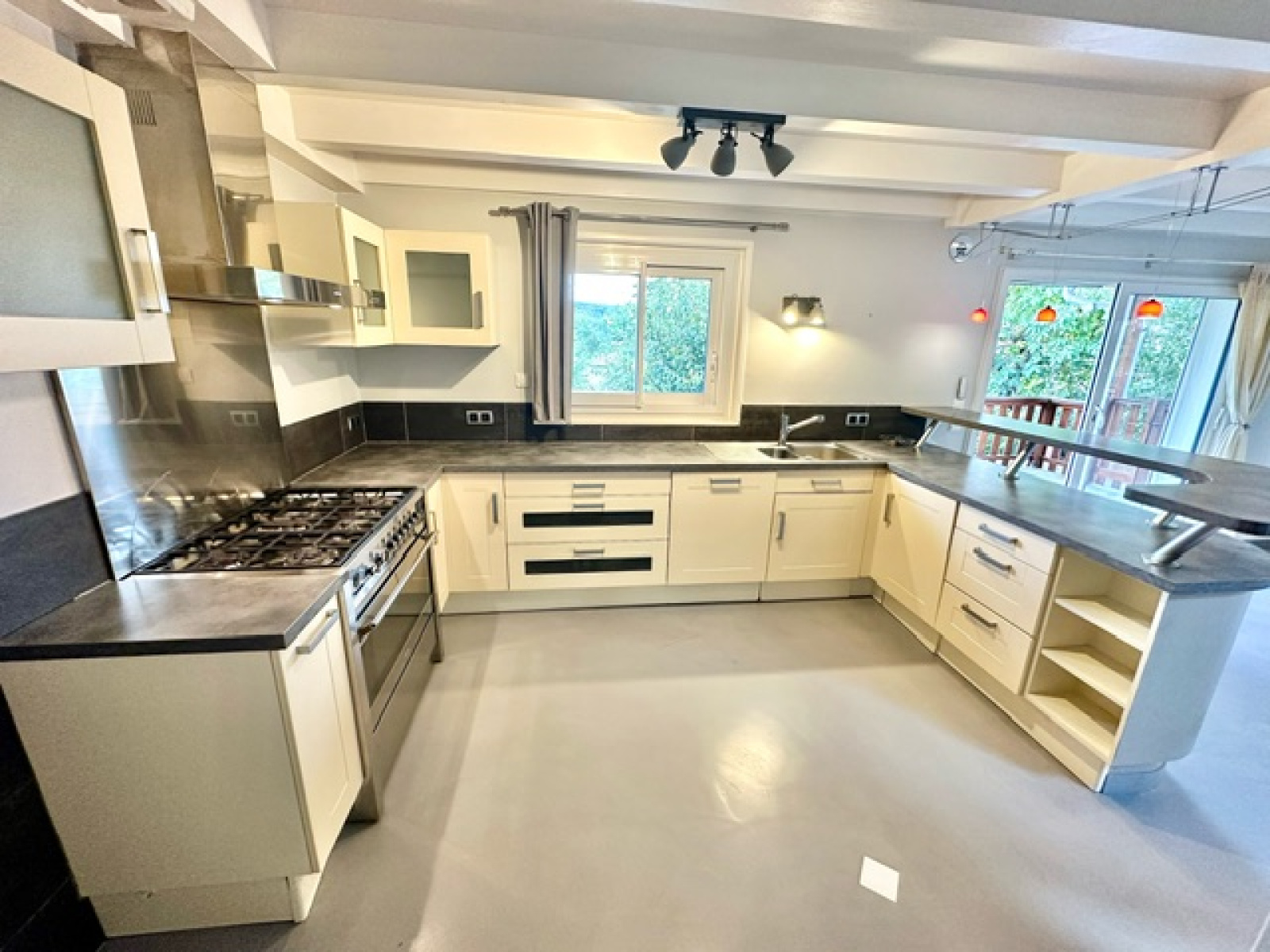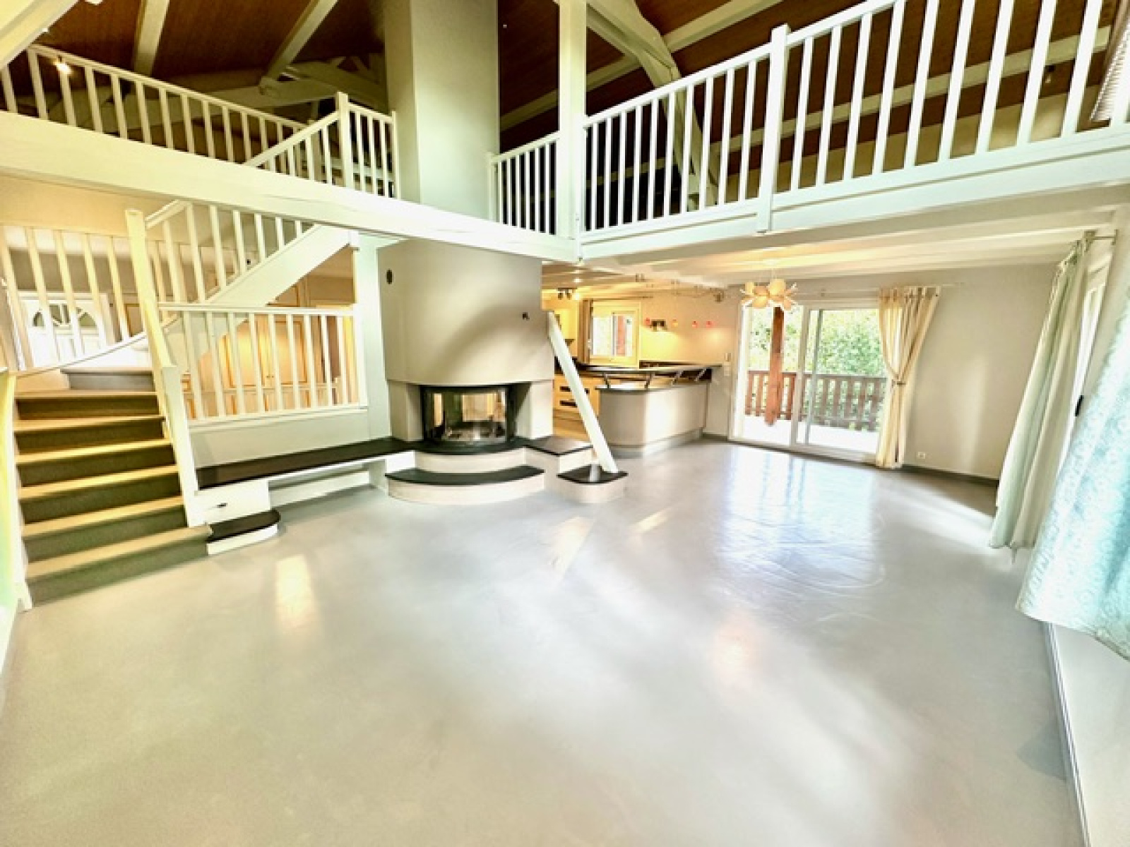 Au rez-de-chaussée : Une entrée avec une penderie, un wc suspendu avec lave-main et fenêtre, une cuisine entièrement équipée ouverte sur la salle à manger, un salon-séjour avec une cheminée – le tout donnant accès à un balcon, à la terrasse et au jardin, un dégagement, deux chambres, une salle de bain avec baignoire, douche, wc et fenêtre. A l’étage : une spacieuse mezzanine pouvant être utilisé comme bureau – salle de télé ou chambre, un dressing, un wc séparé, une vaste suite parentale avec sa salle de bain avec baignoire, douche, deux dressing, et un balcon. Au sous-sol (niveau jardin également) : un dégagement, une chambre, un studio indépendant avec une cuisine équipée et accès sur la terrasse et au jardin, un deuxième dégagement, une buanderie – une chaufferie, un wc séparé, une autre chambre avec son dressing et avec une salle de douche privative. En annexe : un grand abri car-port pour deux voitures, 2 grandes caves, plusieurs places de parking extérieures.