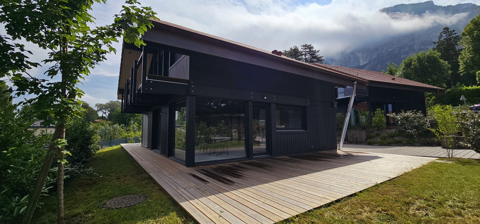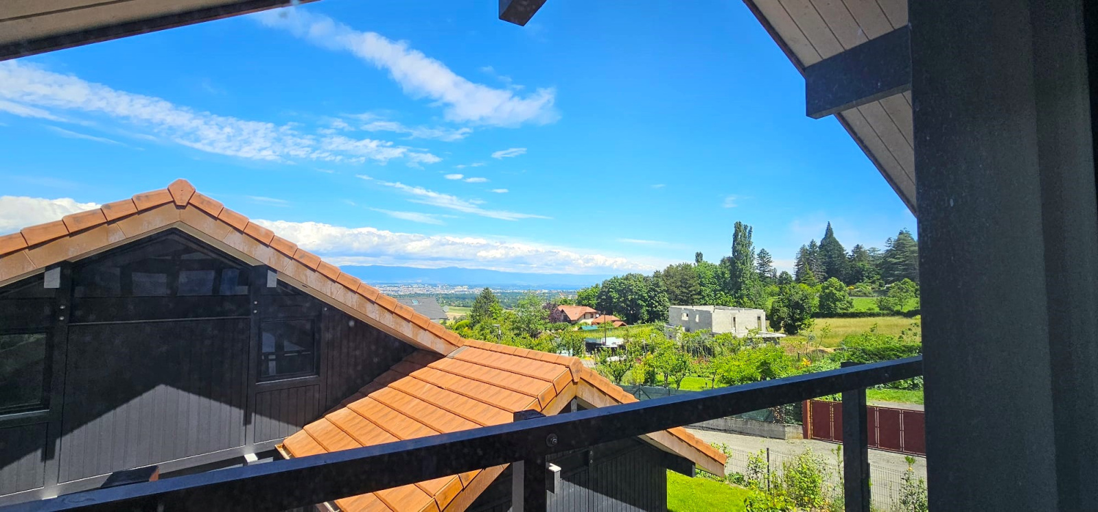 BOSSEY 74160 - Sublime maison très récente sur les hauteurs du village d’une superficie habitable de 150 m2 sur sous sol complet. Située dans un, lotissement résidentiel entièrement végétalisé., à découvrir sans tarder cette maison en bois contemporaine « constructeur reconnu et réputé Maison Dunoyer » bénéficie d’une vue panoramique sur le Jura, le Genevois et le lac Léman en toile de fond.