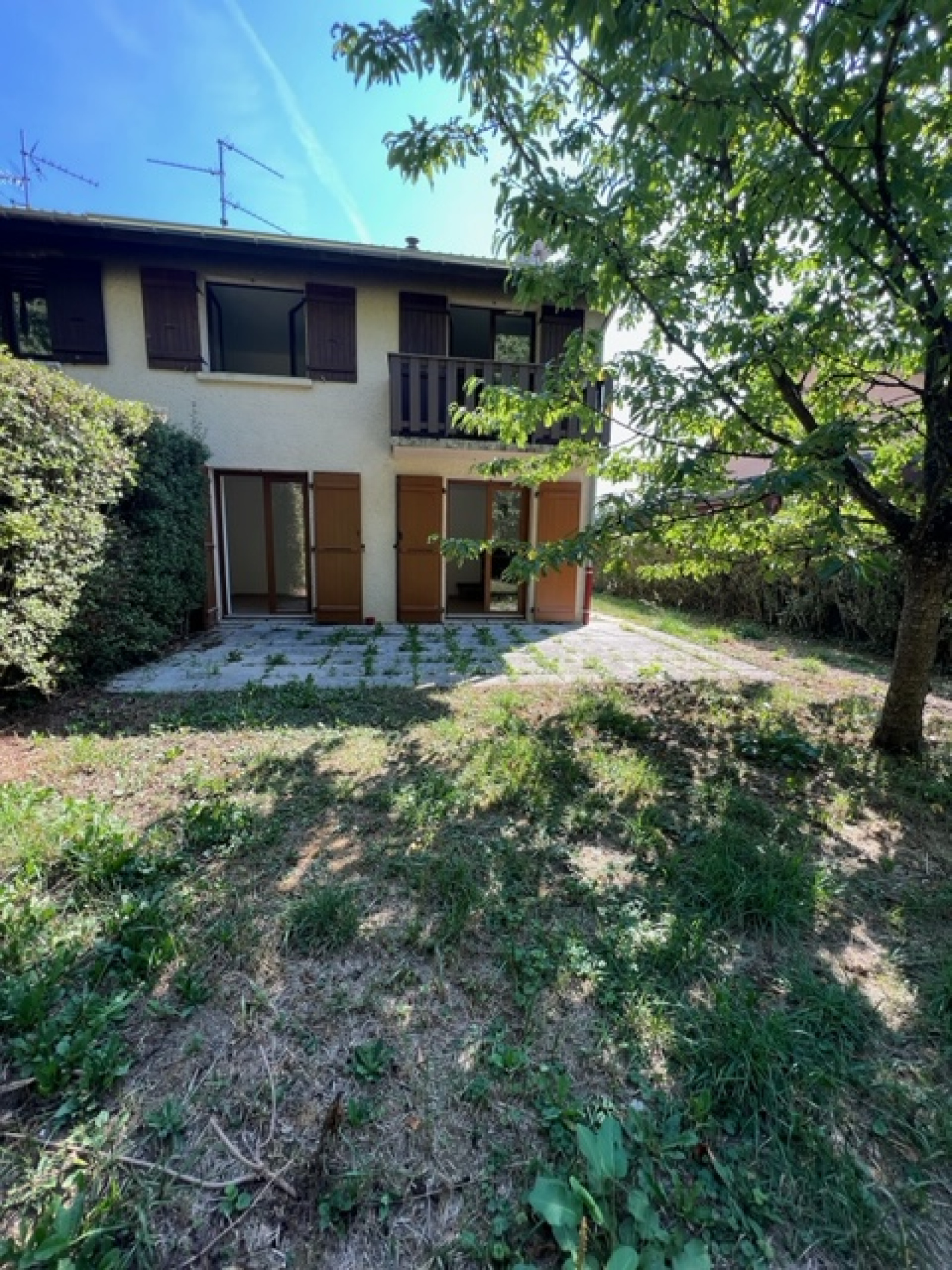 EXCLUSIVITE, belle maison jumelée d'un seul côté d'environ 83m² + GARAGE avec grenier, implantée sur un terrain clos plat et arboré de 612m², située au calme, au fond d'une impasse, et disposée comme suit : une entrée avec placard, une cuisine séparée à aménager, un salon séjour salle à manger avec cheminée - donnant accès à la terrasse et au jardin, une salle de douche, un wc séparé avec lave-main. A l'ETAGE : un dégagement, 3 chambres avec placard et une avec balcon, une salle de bain avec WC, emplacement machine à laver et fenêtre. En annexe : un garage box fermé avec un grenier, places de parking. A deux pas des commerces, écoles et BUS F pour Genève. Rare à la vente ! A VISITER TRES RAPIDEMENT !