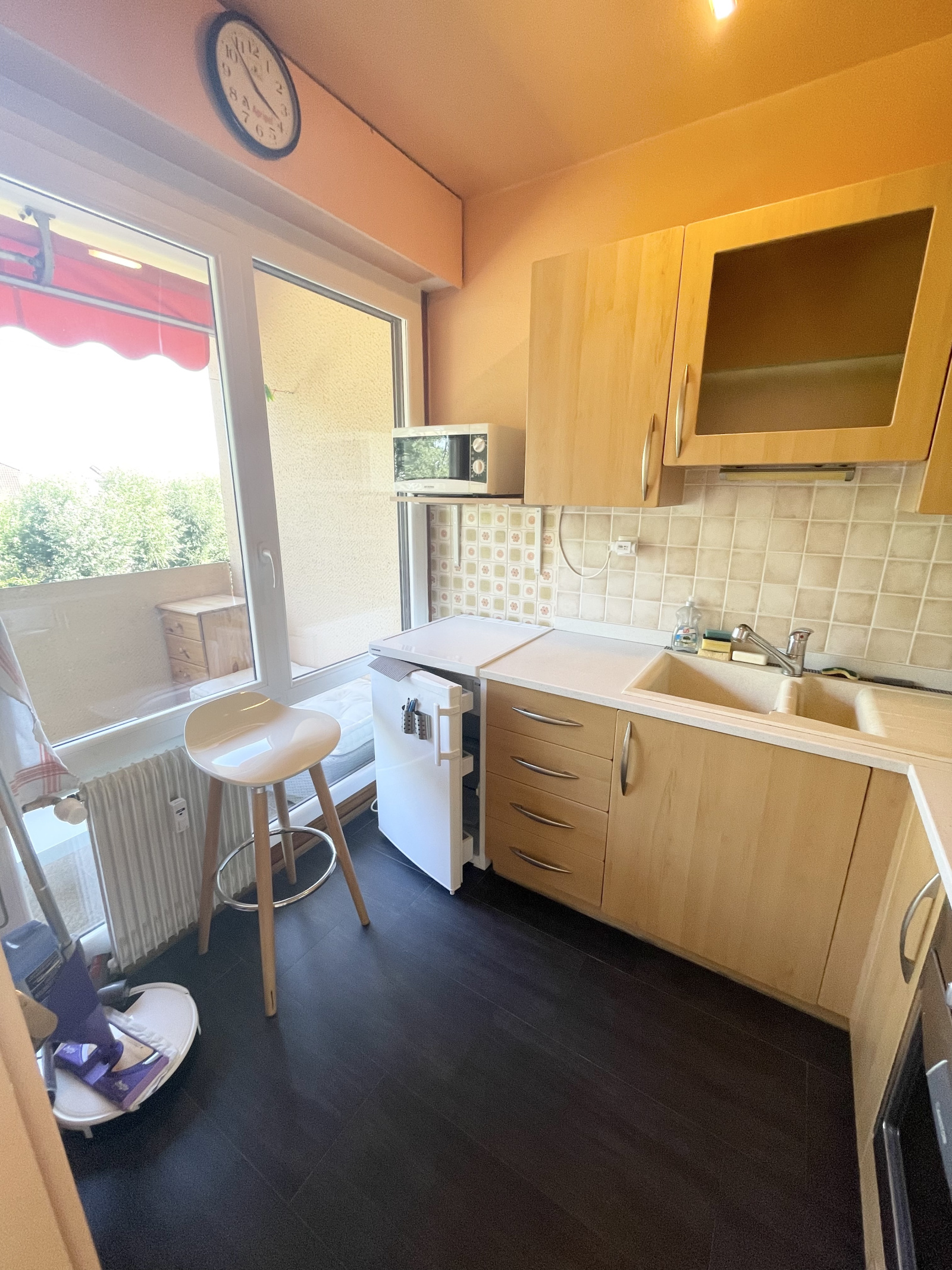 Divonne les Bains 01220, à deux pas du centre ville, situé au 1er étage avec ascenseur, joli studio exposé plein sud sans vis à vis avec une terrasse privative vue dégagée sur le Parc et les montagnes et comprenant : une entrée avec placard, une salle de bain avec wc, une cuisine meublée séparée, une pièce de vie. En annexe : une cave. Fenêtres récentes, stores électriques. Disponible immédiatement, toutes les commodités à pied. Idéal pied à terre, investissement, résidence secondaire.