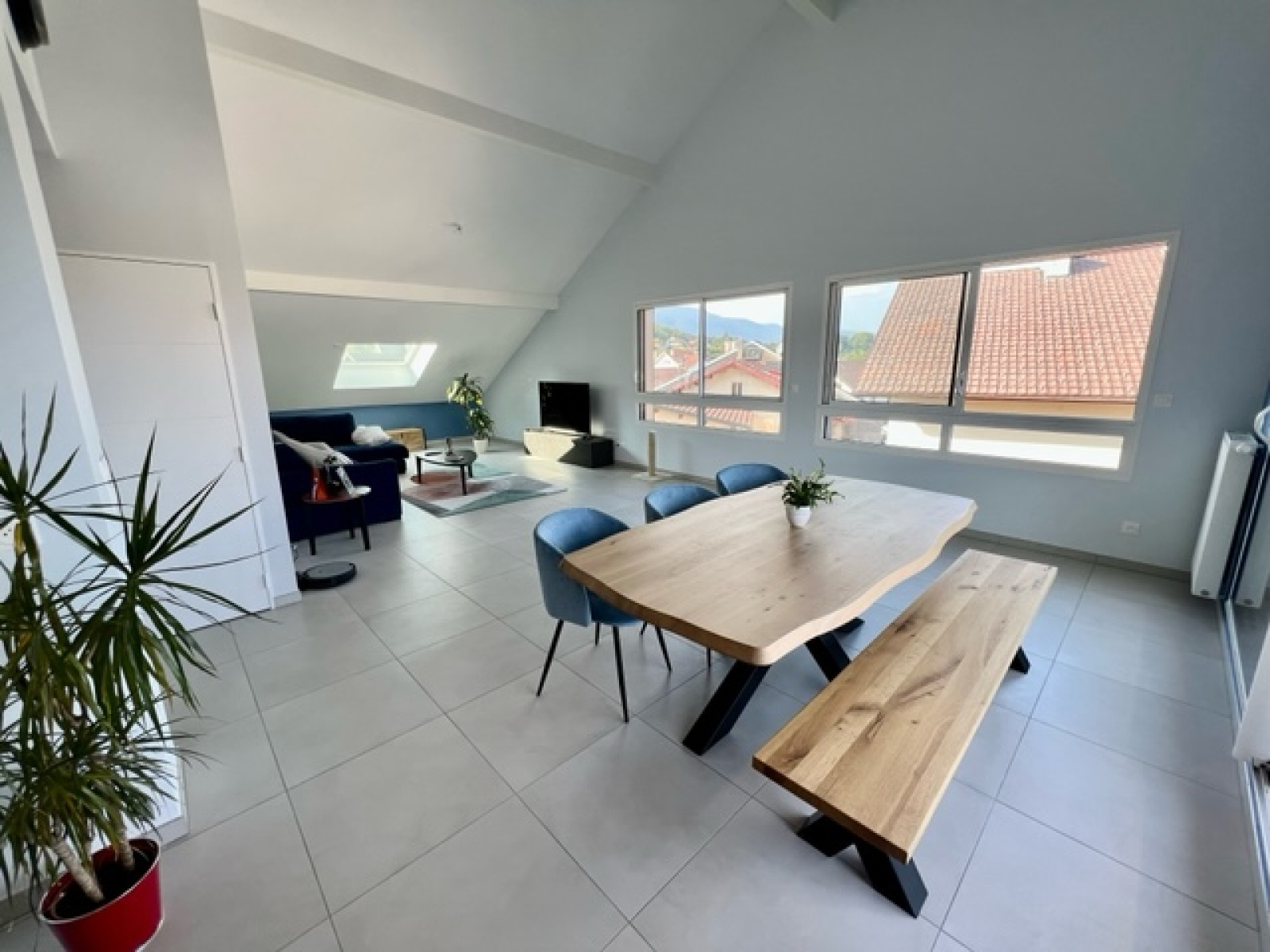 DIVONNE LES BAINS 01220, dans résidence de grand standing 2021, au calme au fond d'une impasse, secteur Arbère, magnifique appartement type T3 - 3 pièces traversant de 129m² habitables, AU DERNIER ETAGE EN ATTIQUE avec une magnifique terrasse de plus de 21m² exposée plein sud, l’appartement est extrêmement lumineux. Il est composé : d'une entrée avec penderies, un wc visiteur suspendu avec lave-main, une cuisine entièrement équipée séparée avec beaucoup de rangement et un espace repas, très agréable espace de vie salon séjour salle à manger avec plafond cathédrale et donnant accès à la terrasse, un dégagement, deux vastes chambres dont une avec dressing et accès à la terrasse et une autre avec sa salle de douche privative et son placard. Au sous-sol : deux garages fermés individuels. Environnement calme. Proche du centre-ville et à deux pas de l'école. Très belles prestations générales, chauffage gaz de ville individuel. Il y a une possibilité de revenir à un 4 pièces - T4 mais nécessitant des travaux. MATESA IMMO, agence immobilière Divonne les Bains 01220, vente et achat appartement Divonne les Bains