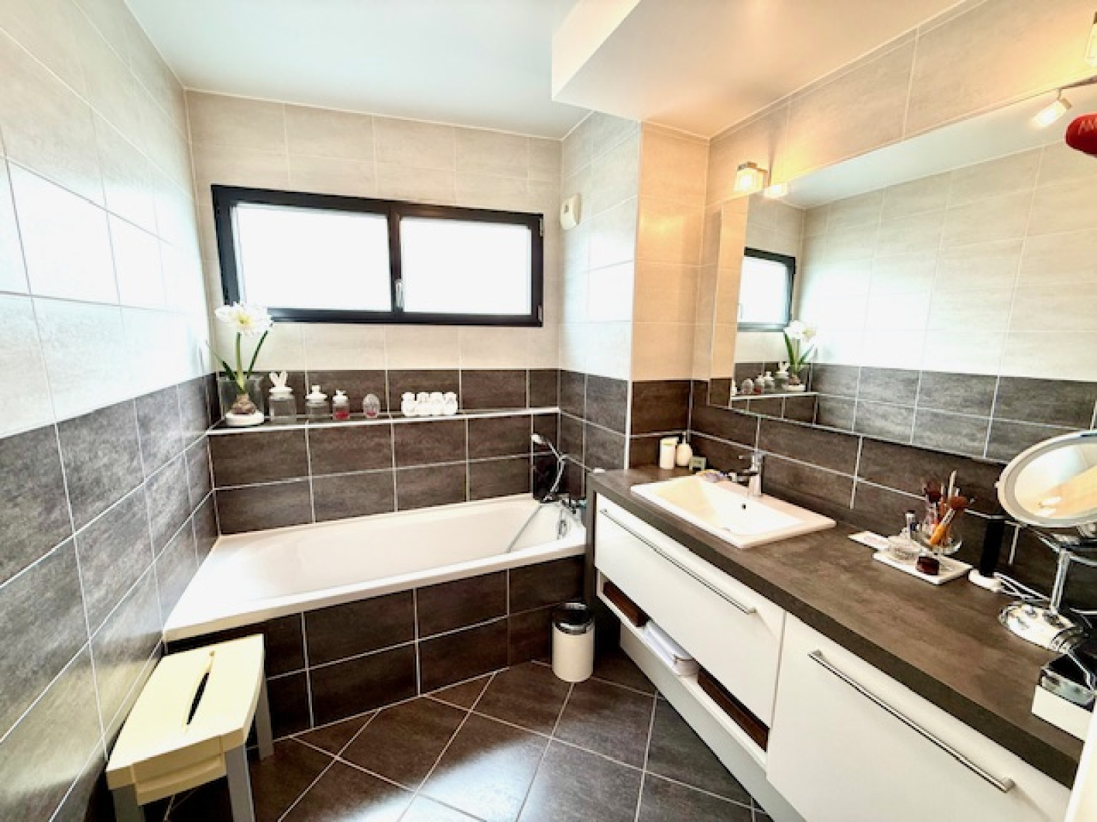 L’appartement est disposé comme suit : Une grande entrée avec un placard aménagé, une buanderie-chaufferie gaz individuel, une lumineuse pièce de vie avec une très belle cuisine italienne ouverte sur la salle à manger, salon-séjour – le tout donnant accès à la terrasse, un dégagement desservant un wc suspendu carrelé avec un lave-main, deux chambres avec placards, une salle de bain avec fenêtre, une autre suite parentale avec placard et sa propre salle de douche privative avec un wc.