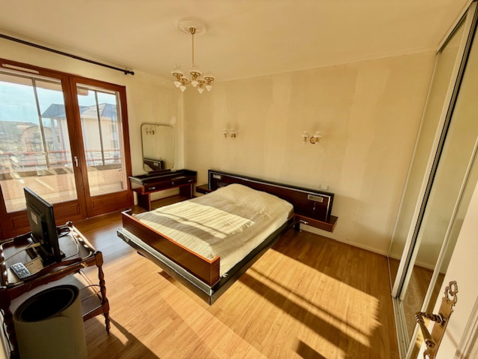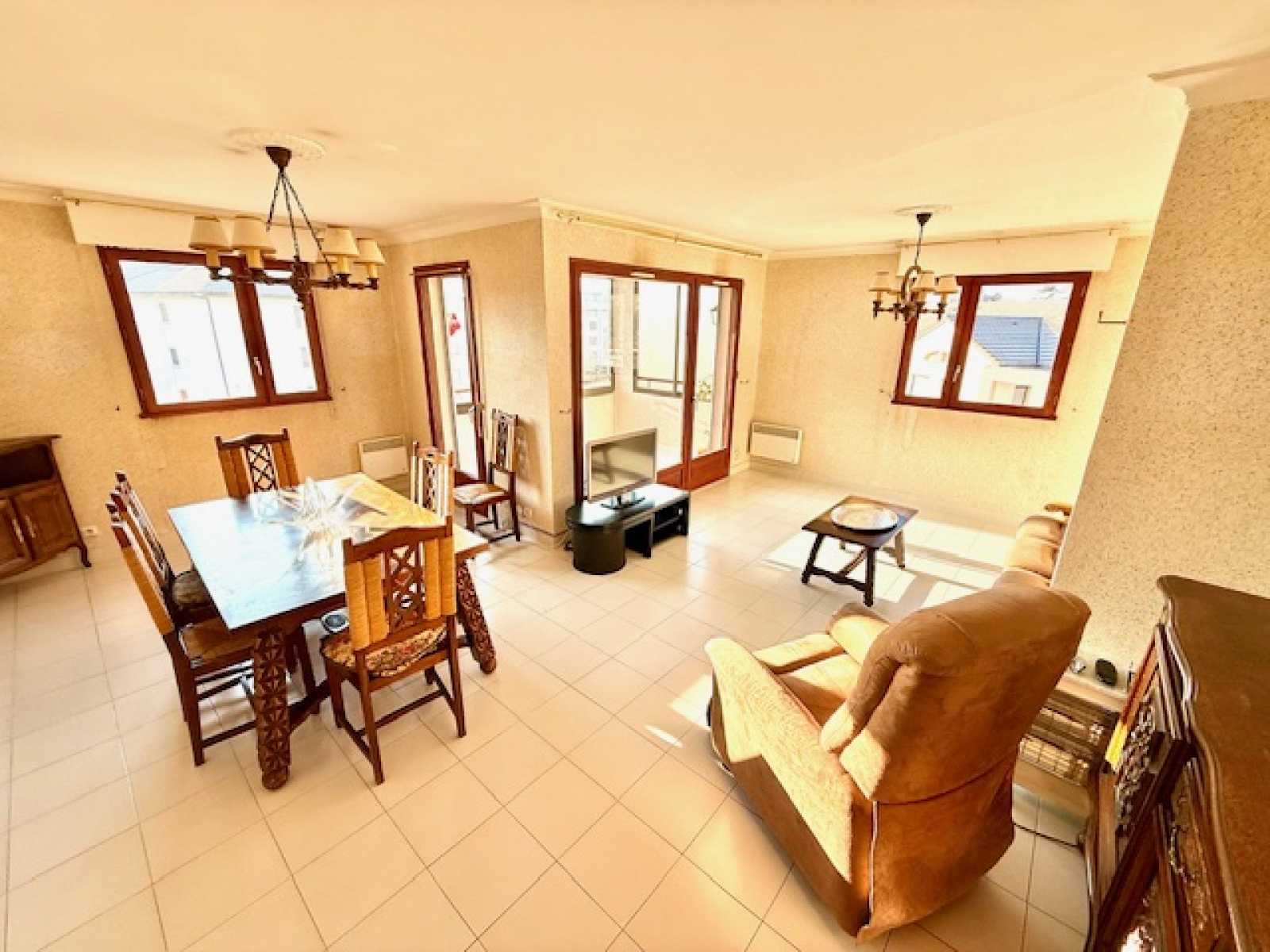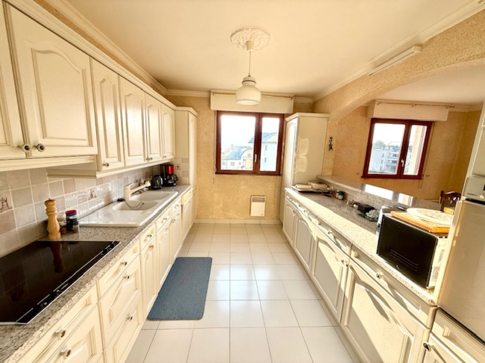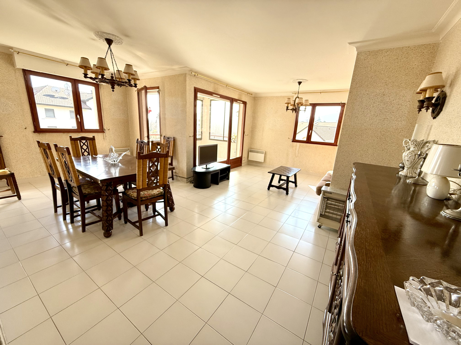 Divonne-les-Bains 01220, situé à deux pas du centre-ville, dans une résidence appréciée et clôturée avec une barrière et vaste parking privatif. L'appartement est situé au 2ième étage avec ascenseur, grand et agréable appartement type T5 (4 chambres) traversant de 116 m² et comprenant : une grande entrée avec un placard, une cuisine entièrement équipée semi-ouverte sur la salle à manger, salon-séjour donnant sur un balcon avec une vue sur le Mont Blanc + le Jura et l’espace vert de la résidence, un premier espace nuit composé d'un WC séparé, une salle de bain avec sèche-serviettes et une loggia de rangement, 2 chambres avec placard. Un deuxième espace nuit composé d'une salle d'eau avec son sèche-serviettes, un WC séparé et deux chambres avec placard avec accès au 2ième balcon côté parc et vue montagne au calme. En annexe au sous-sol : une double cave avec électricité et un grand garage fermé, un local à vélos et de nombreuses places de parking privatives à la résidence avec d’agréables espaces verts. Possibilité d’acquérir un deuxième garage. Toutes les commodités se trouvent à pied, écoles, commerces, bus pour la suisse, etc. A VISTER RAPIDEMENT, prix attractif ! Les charges incluent aussi le chauffage au sol.