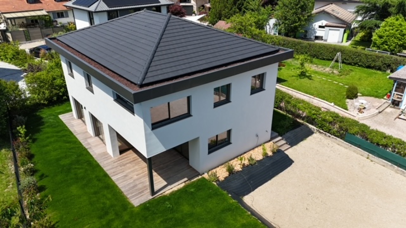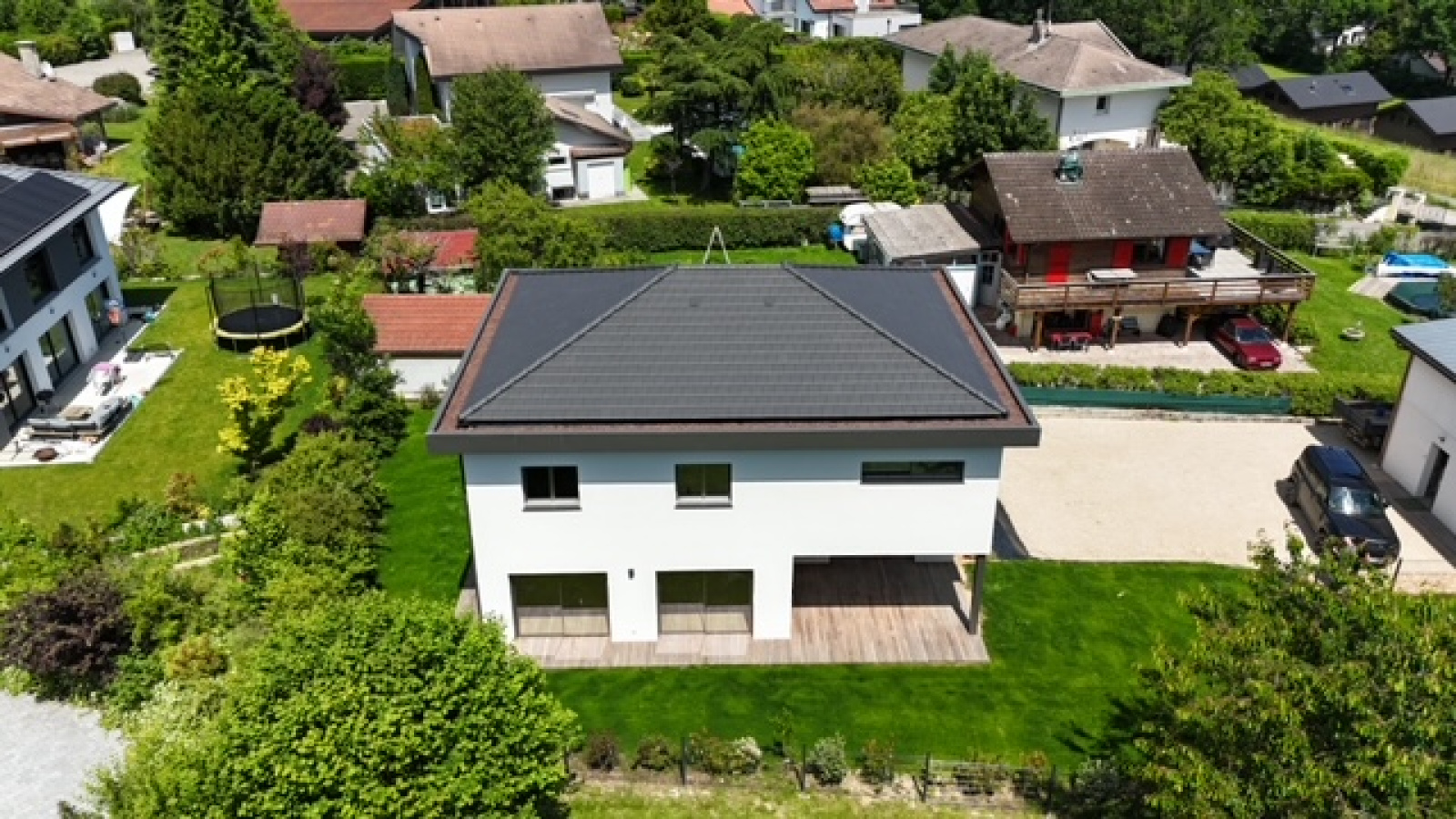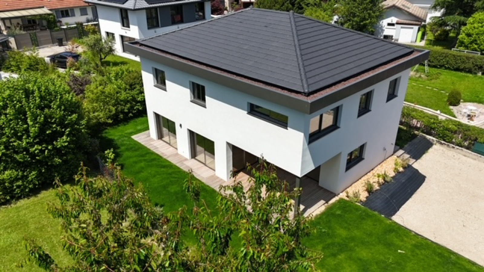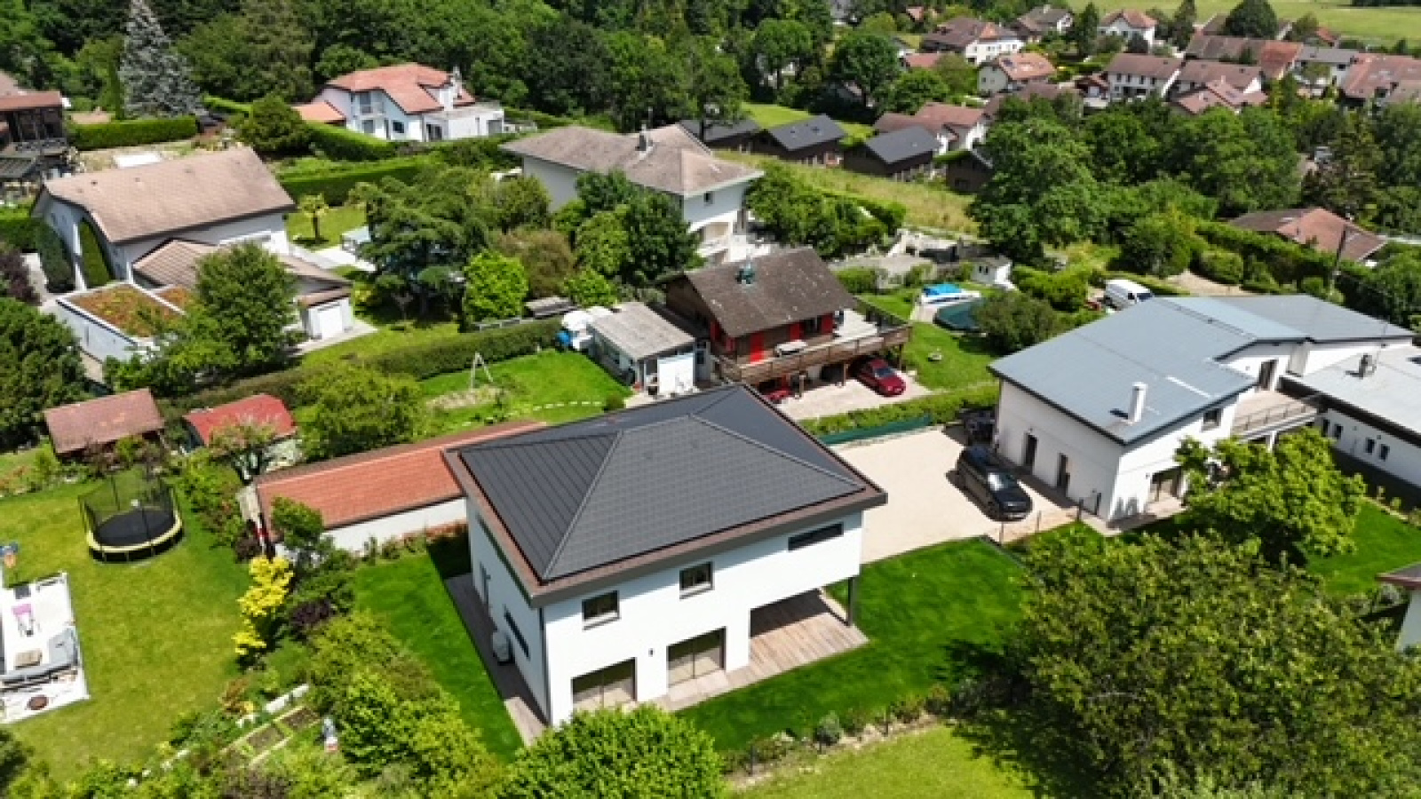 Divonne les Bains 01220, secteur Vesenex, au fond d’une impasse, nous vous proposons cette magnifique maison contemporaine très récente construite en 2024 avec des matériaux haut de gamme. Elle se developpe sur presque 200m² habitables avec 5 chambres dont 2 suites parentales, 3 WC, une arrière cuisine, une buanderie ainsi qu’une vaste pièce de pièce avec cuisine ouverte salon séjour salle à manger donnant directement sur la terrasse et le jardin, exposé sud et ouest. Maison très lumineuse et fonctioennelle. Normes écologiques (chauffage pompe à chaleur au sol). Elle bénéficie d’une vue sur le Lac L éman, l’environnement est calme et résidentiel. A VISITER RAPIDEMENT ! FNR (pas de garage)
