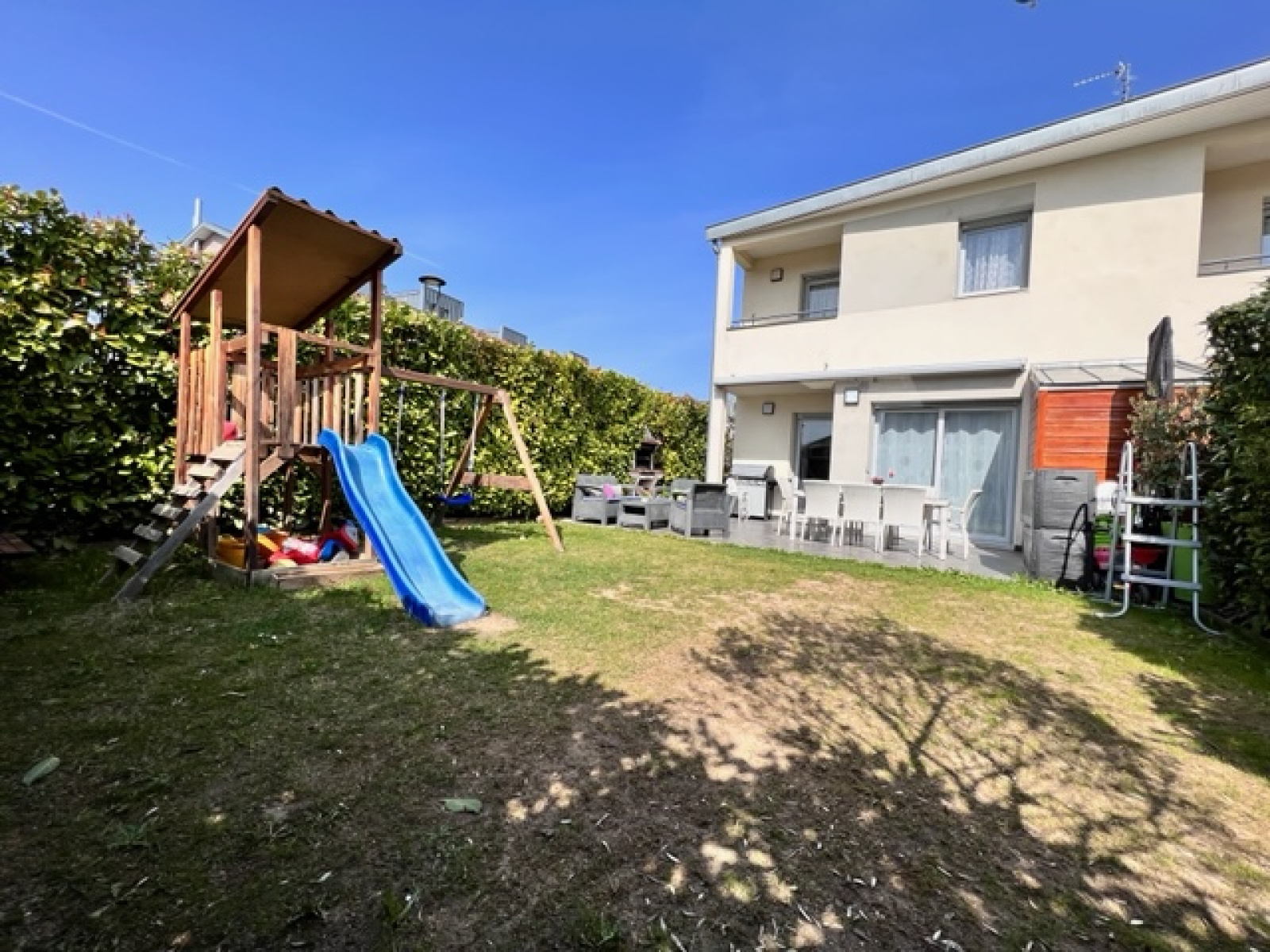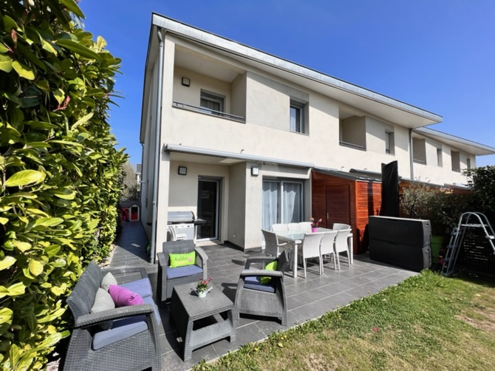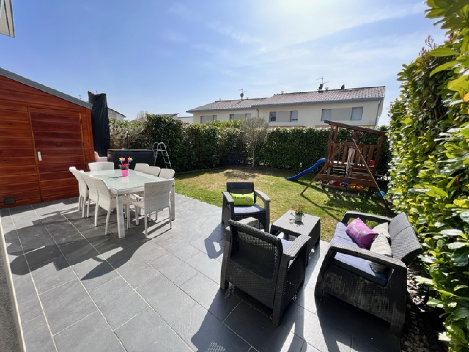SEGNY 01170, dans quartier familial très apprécié, à deux pas de toutes les commodités mais au calme, très jolie villa jumelée d'un seul côté en parfait état et très fonctionnelle. Construite en 2011 et au bénéfice de normes écologique une production d’eau chaude solaire, vous serez séduit par ce bien très agréable de 105m² habitables avec son jardin privatif très bien exposé sud et ouest, 2 salle d'eau, 2 WC, très belle cuisine équipée ouverte sur la lumineuse pièce de vie, une buanderie, beaucoup de rangement, un grand garage et deux places de parking privatives. Belles prestations (stores électriques, alarme, fibre optique, terrasse dallée, store extérieur, garage isolé + porte garage électrique, etc.)