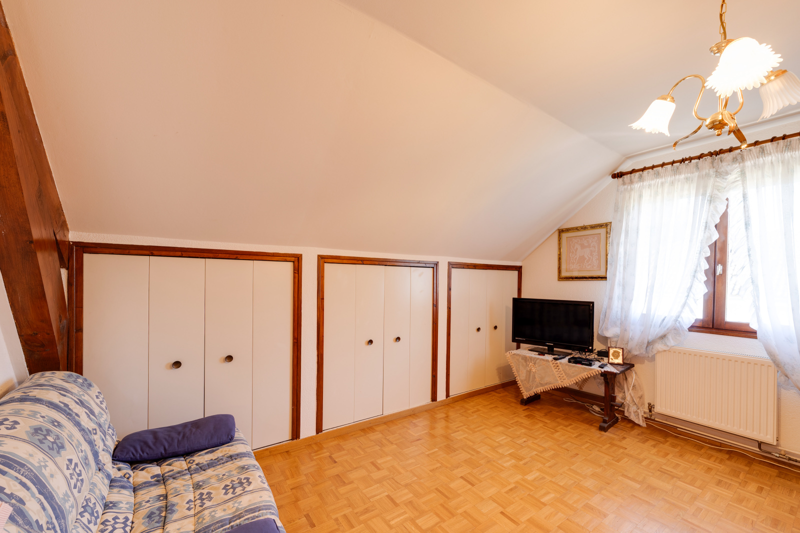 A l’ETAGE : un espace mezzanine ouvert donnant accès à 4 chambres dont 2 avec placards et une avec balcon (vue panoramique), une salle de bain avec wc.