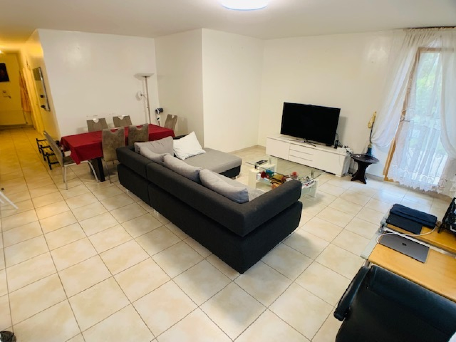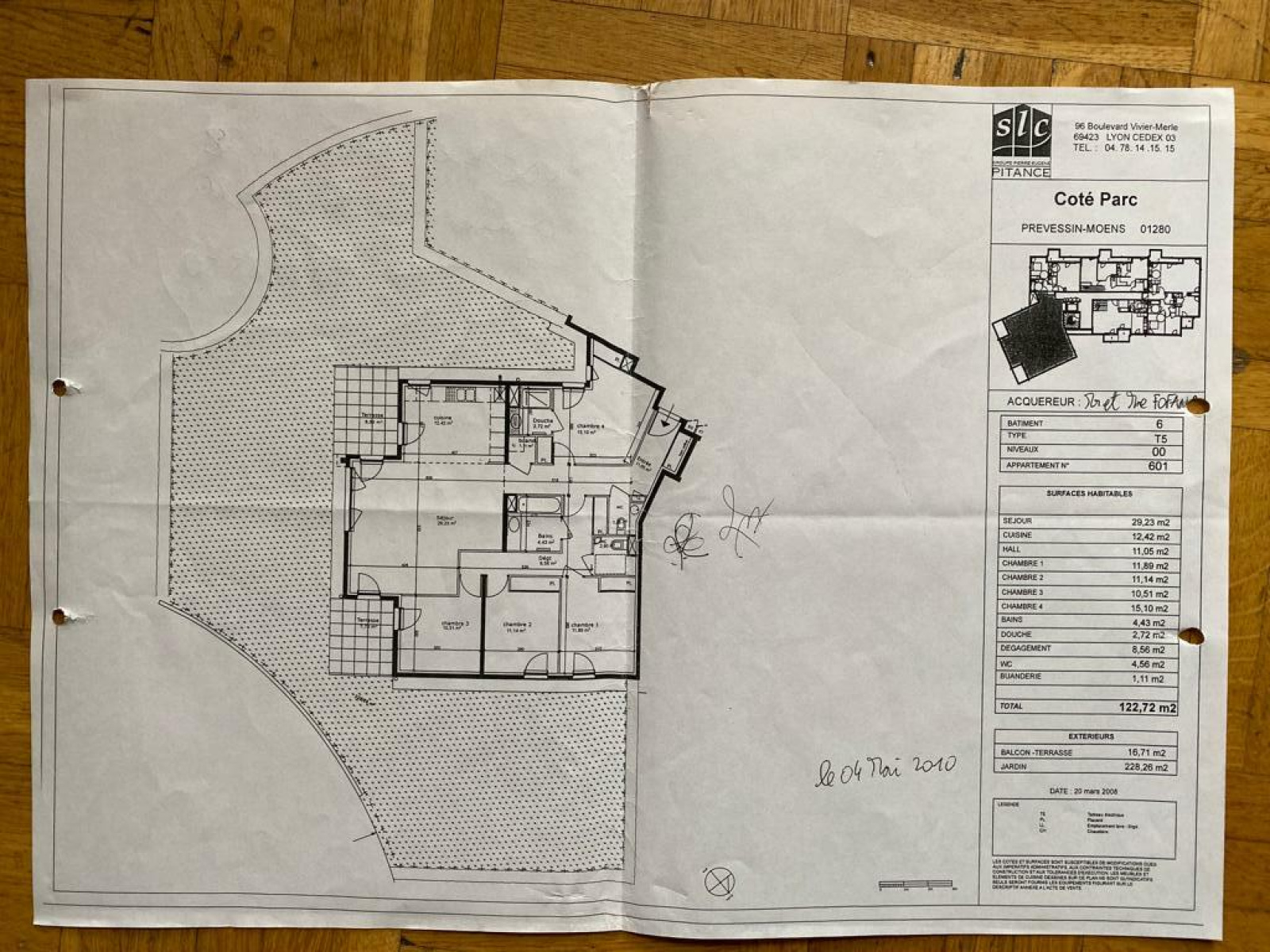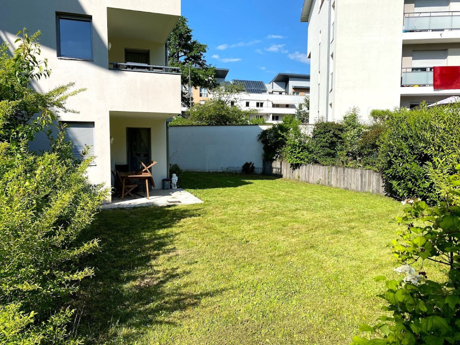 Prévessin-Moens 01280, dans résidence de standing de 2010, à deux pas des écoles, commerces et bus pour Genève, agréable appartement type T5 - 4 CHAMBRES de 123m², avec son jardin privatif exposé sud et ouest de 245m² clôturé et arboré, et comprenant : une entrée avec un placard, un wc séparé visiteur avec une lave-main, un espace cuisine équipée ouverte sur salon séjour salle à manger donnant accès à la terrasse et au jardin, une suite parentale avec placard et salle de douche privative, un dégagement avec un placard, 3 chambres dont 2 avec placards, un deuxième wc indépendant avec espace machine à laver, une autre salle de bain, une buanderie. En annexe : 2 caves et garage double en sous sol, et une place privative extérieure.