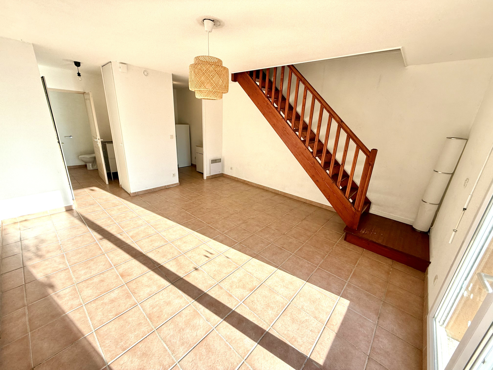 Au rez de chaussée : une pièce de vie donnant sur la terrasse exposée plein sud, une cuisine meublée avec un cellier attenant, un wc séparé avec lave-main et placard. A l'étage ; 2 chambres, une salle de bains.