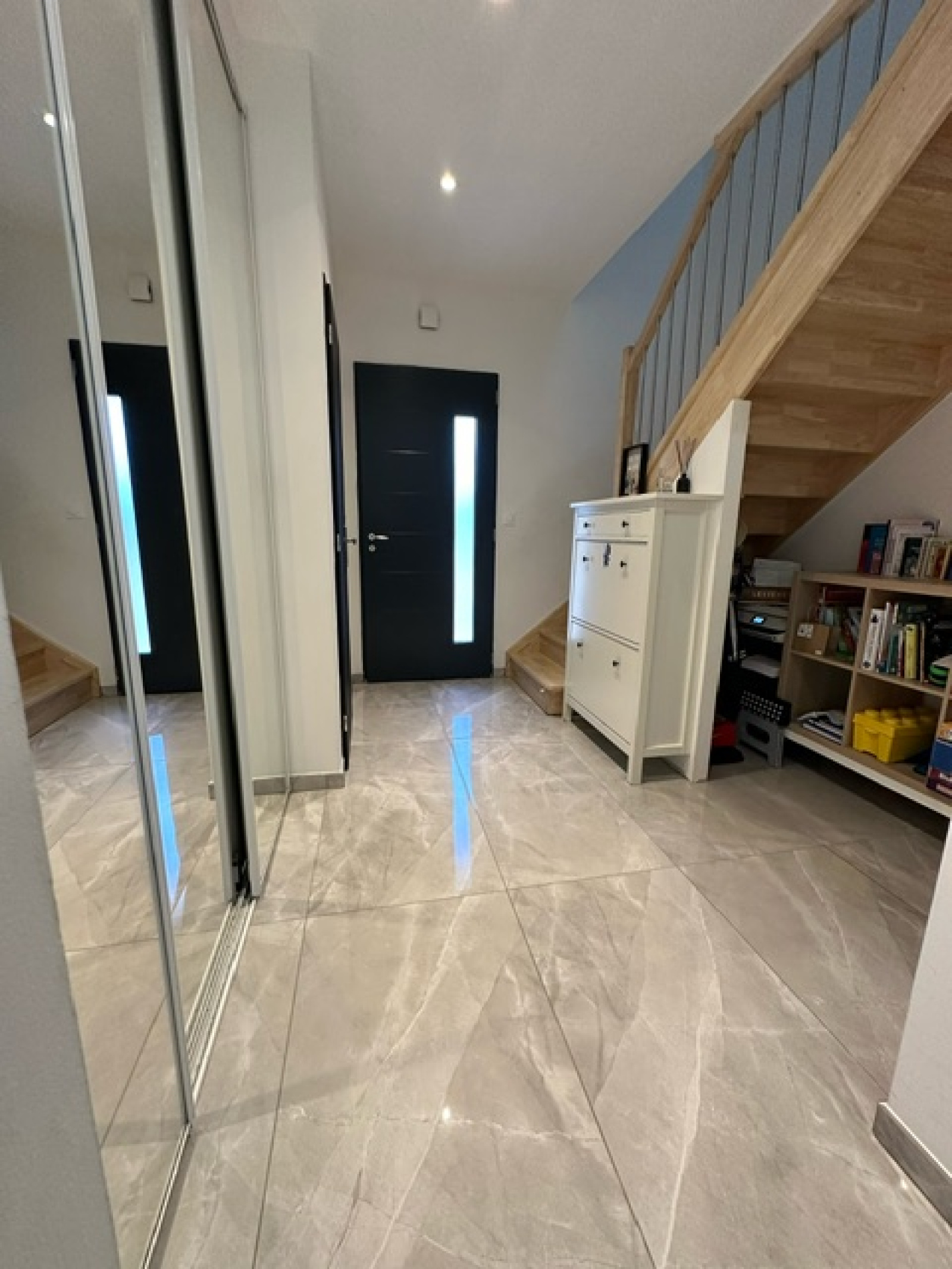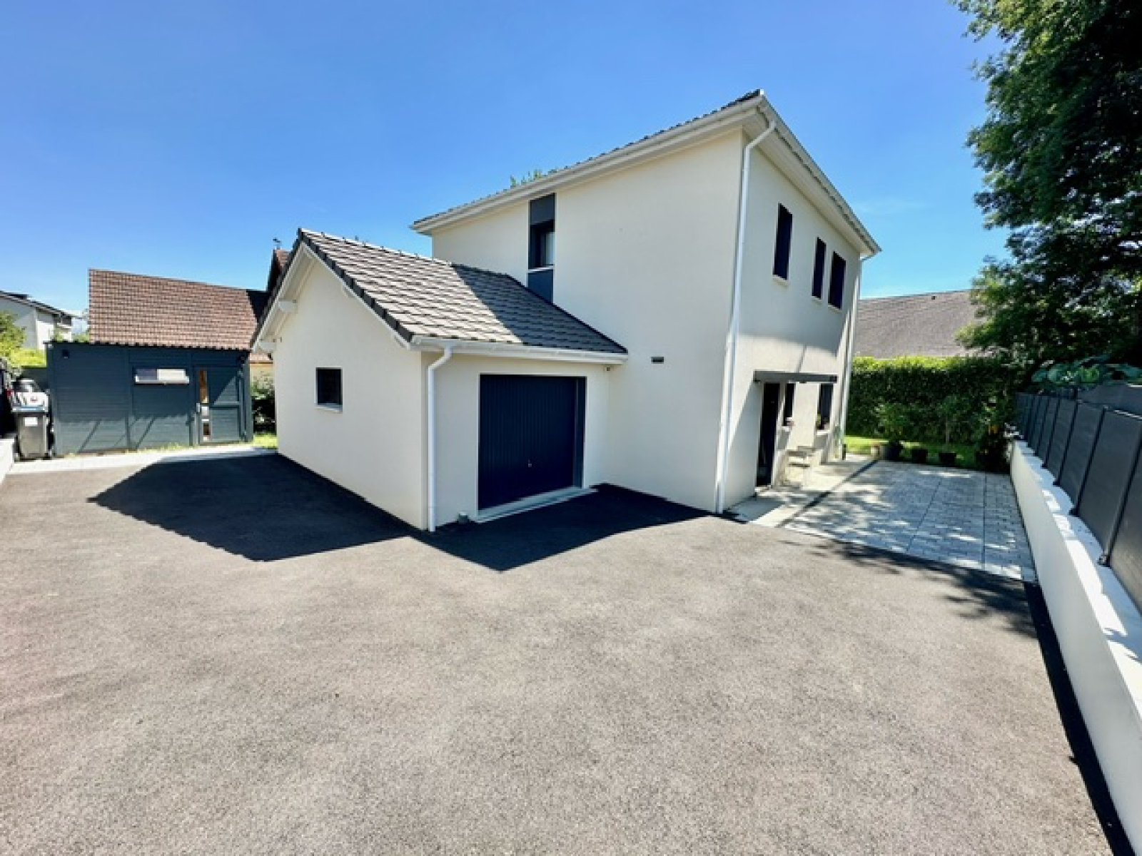 EN EXCLUSIVITE A PREVESSIN MOENS 01280 – secteur prisé et recherché, au fond d’une impasse, environnement résidentiel et très calme, nous sommes ravis de vous présenter cette magnifique maison individuelle récente construite en 2020, d’environ 120m² habitable + un bureau extérieur en annexe – idéal pour le télétravail, le tout implantée une parcelle plate et arborée de 455m². Elle est composée au rez-de-chaussée : une belle entrée avec une penderie et un espace de rangement sous escalier, un dégagement avec espace chaufferie et rangement, très belle cuisine entièrement équipée ouverte sur le lumineux espace de vie avec salle à manger – salon – séjour se prolongeant sur la terrasse et le jardin exposé sud et ouest, un cellier-buanderie attenant à la cuisine et permettant l’accès au garage avec un grenier, un wc séparé avec lave-main. A l’ETAGE : un dégagement desservant 3 grandes chambres avec placards et dont une suite parentale avec son dressing aménagé et sa propre salle de douche privative avec fenêtre, une autre salle de bain avec baignoire – wc et fenêtre. Plusieurs places de parkings extérieures. Chauffage au sol pompe à chaleur. A VISITER SANS TARDER !!