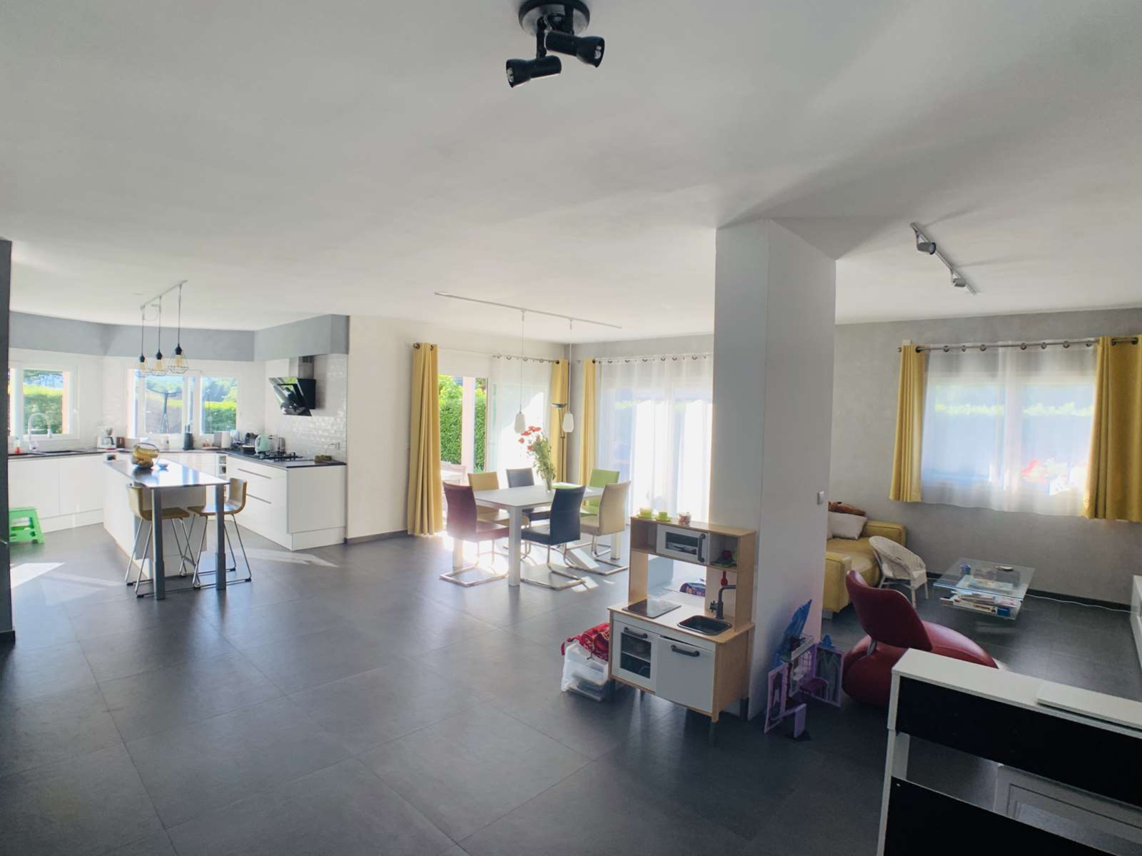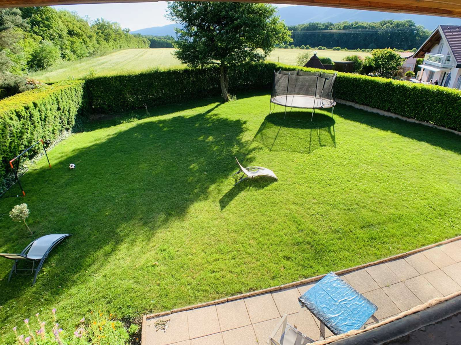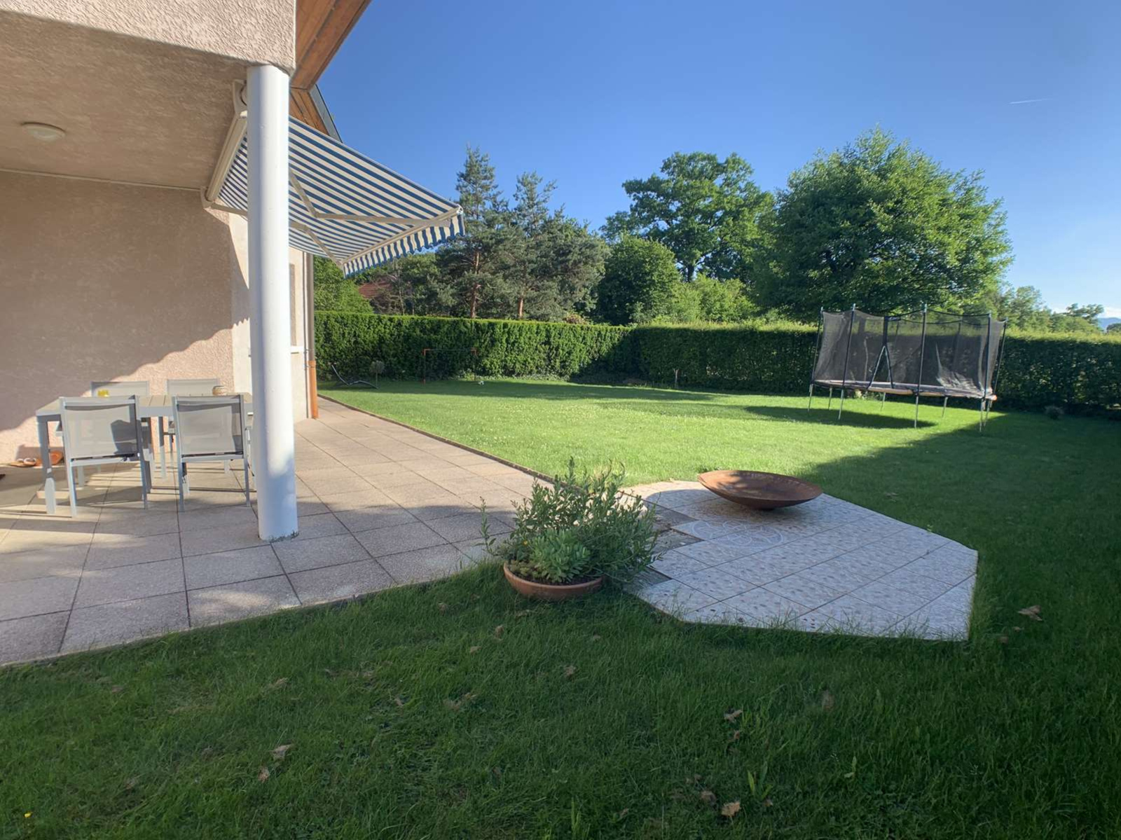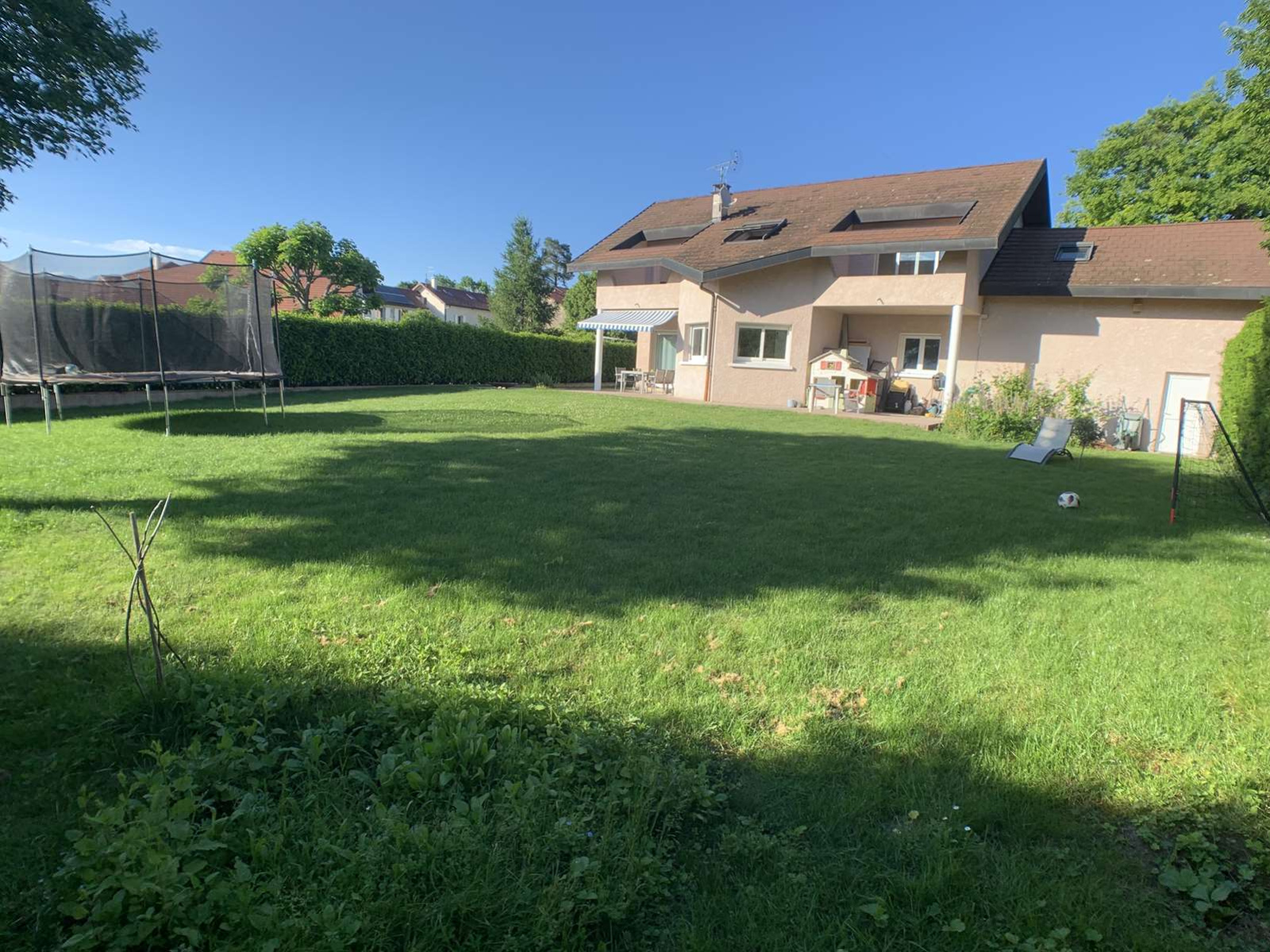 EXCLUSIVITE, uniquement chez MATESA IMMO, située à Prévessin Moens 01280 secteur Vesegnin, très belle maison mitoyenne uniquement par le garage double de 193m², lumineuse, implantée sur un magnifique terrain plat de 904m² clos et arboré, sans vis à vis, au calme et très bien exposé sud ouest avec vue Jura . Comprenant au RDC : une entrée, un spacieux et lunimeux espace de vie de 55m² avec une cuisine de grande qualitée entièrement équipée et ouverte sur le salon séjour salle à manger, un dégagement, un espace bureau, une buanderie, un wc visiteur avec lave-main et un garage double. A l'ETAGE : espace télévision avec terrasse, trois très grandes chambres dont une suite parentale avec salle de bain/douche et wc, une autre salle de douche, et un wc séparé, un balcon et une terrasse. En Annexe : un studio avec une chambre et salle de douche avec WC. Ce studio peut être connecté à la maison avec très peu de travaux et à faible coût. Chauffage gaz au sol sur les 2 étages. propriété cloturée avec un portail, maison rénovée recémment en très bon état. Rare à la vente. MATESA IMMO, agence immobilière pays de gex, vente maison villa Prévessin Moens 01280