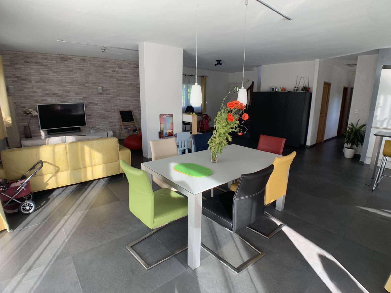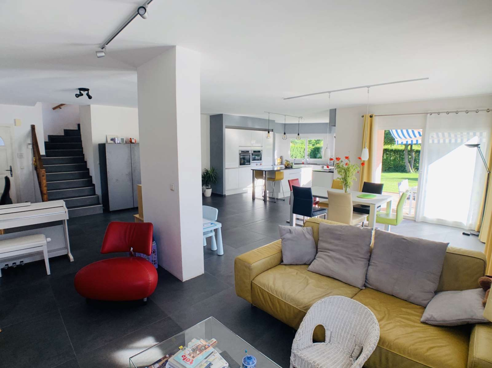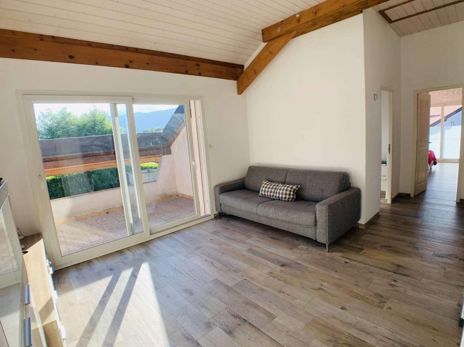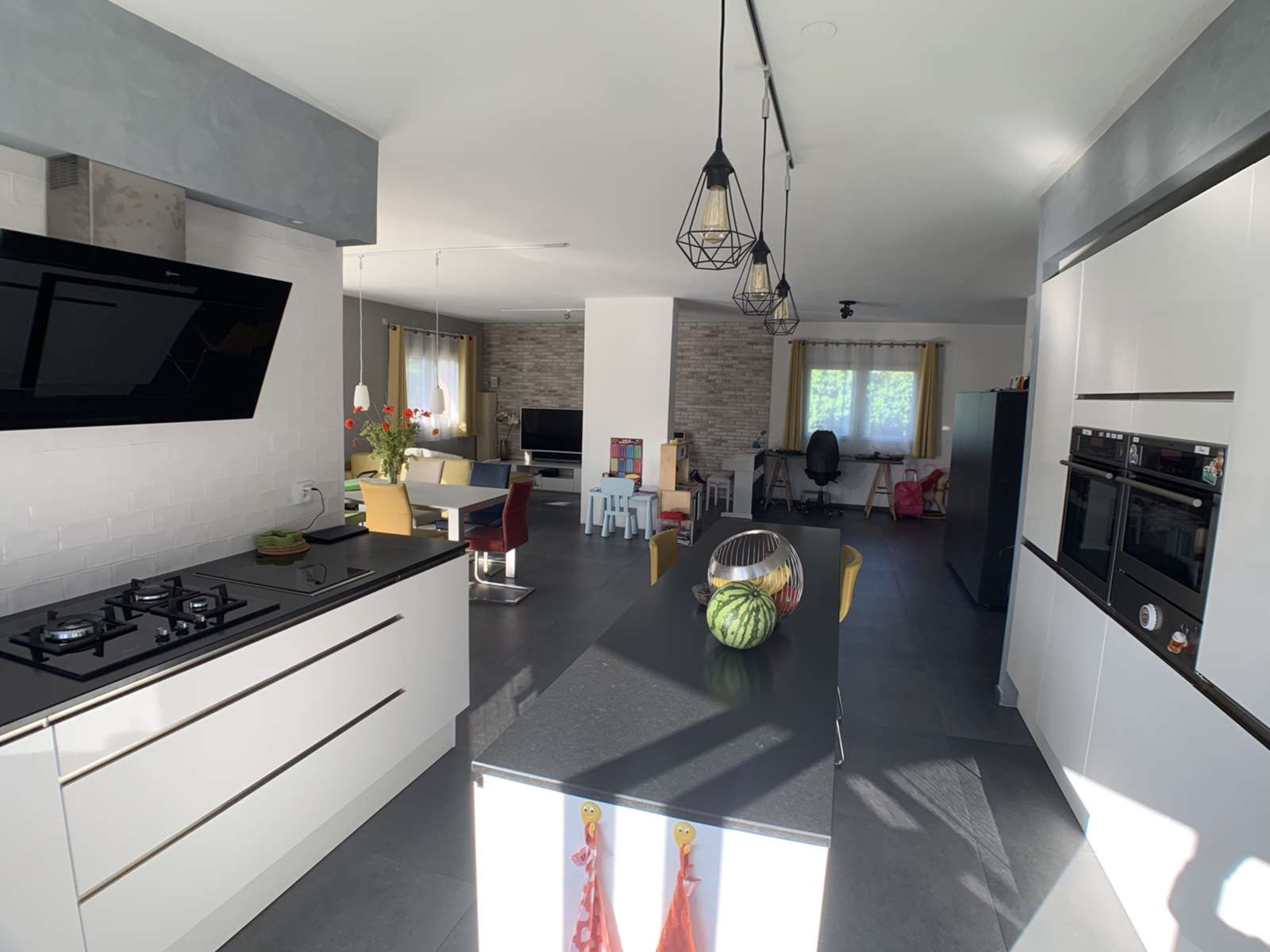 EXCLUSIVITE, uniquement chez MATESA IMMO, située à Prévessin Moens 01280 secteur Vesegnin, très belle maison mitoyenne uniquement par le garage double de 193m², lumineuse, implantée sur un magnifique terrain plat de 904m² clos et arboré, sans vis à vis, au calme et très bien exposé sud ouest avec vue Jura . Comprenant au RDC : une entrée, un spacieux et lunimeux espace de vie de 55m² avec une cuisine de grande qualitée entièrement équipée et ouverte sur le salon séjour salle à manger, un dégagement, un espace bureau, une buanderie, un wc visiteur avec lave-main et un garage double. A l'ETAGE : espace télévision avec terrasse, trois très grandes chambres dont une suite parentale avec salle de bain/douche et wc, une autre salle de douche, et un wc séparé, un balcon et une terrasse. En Annexe : un studio avec une chambre et salle de douche avec WC. Ce studio peut être connecté à la maison avec très peu de travaux et à faible coût. Chauffage gaz au sol sur les 2 étages. propriété cloturée avec un portail, maison rénovée recémment en très bon état. Rare à la vente. MATESA IMMO, agence immobilière pays de gex, vente maison villa Prévessin Moens 01280